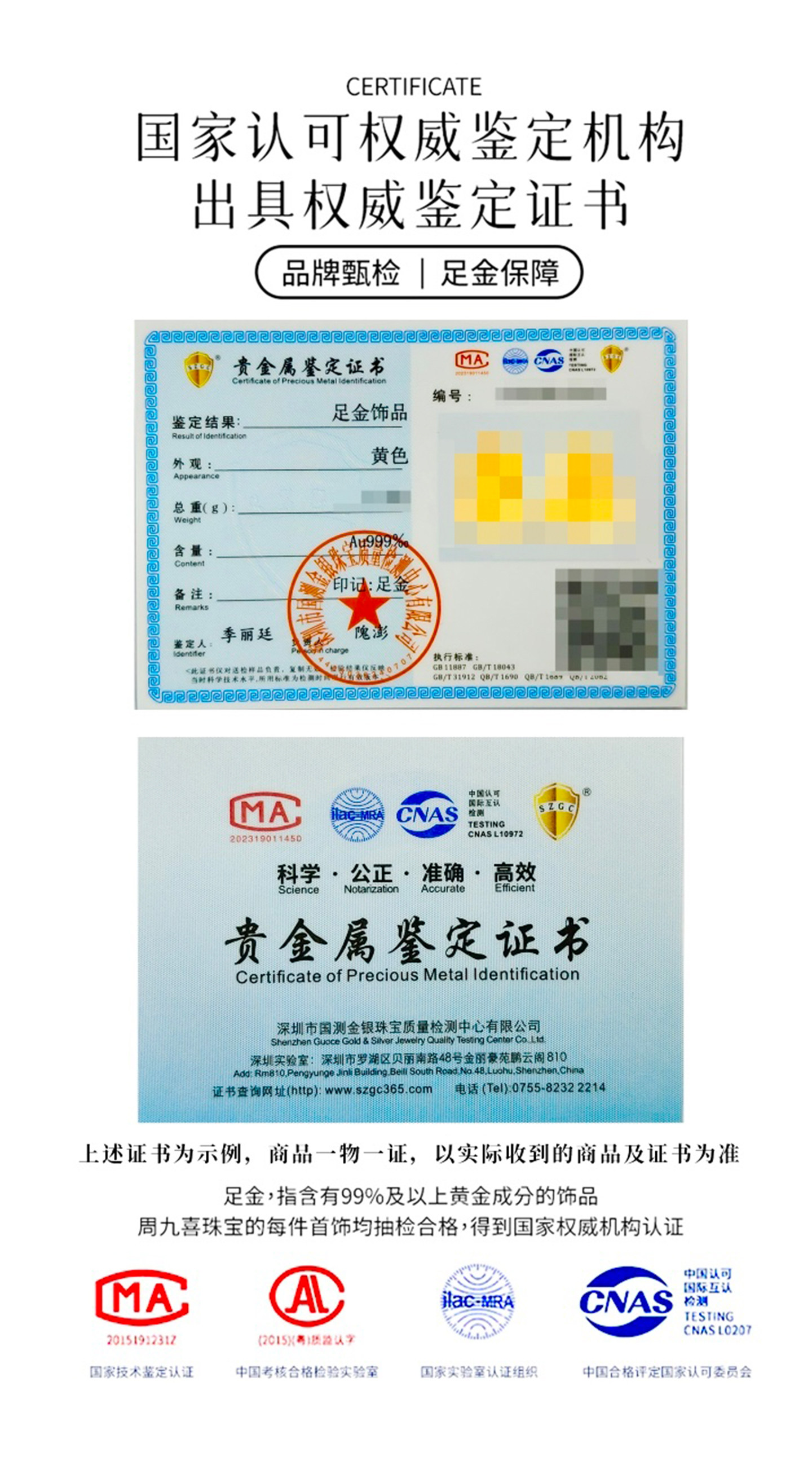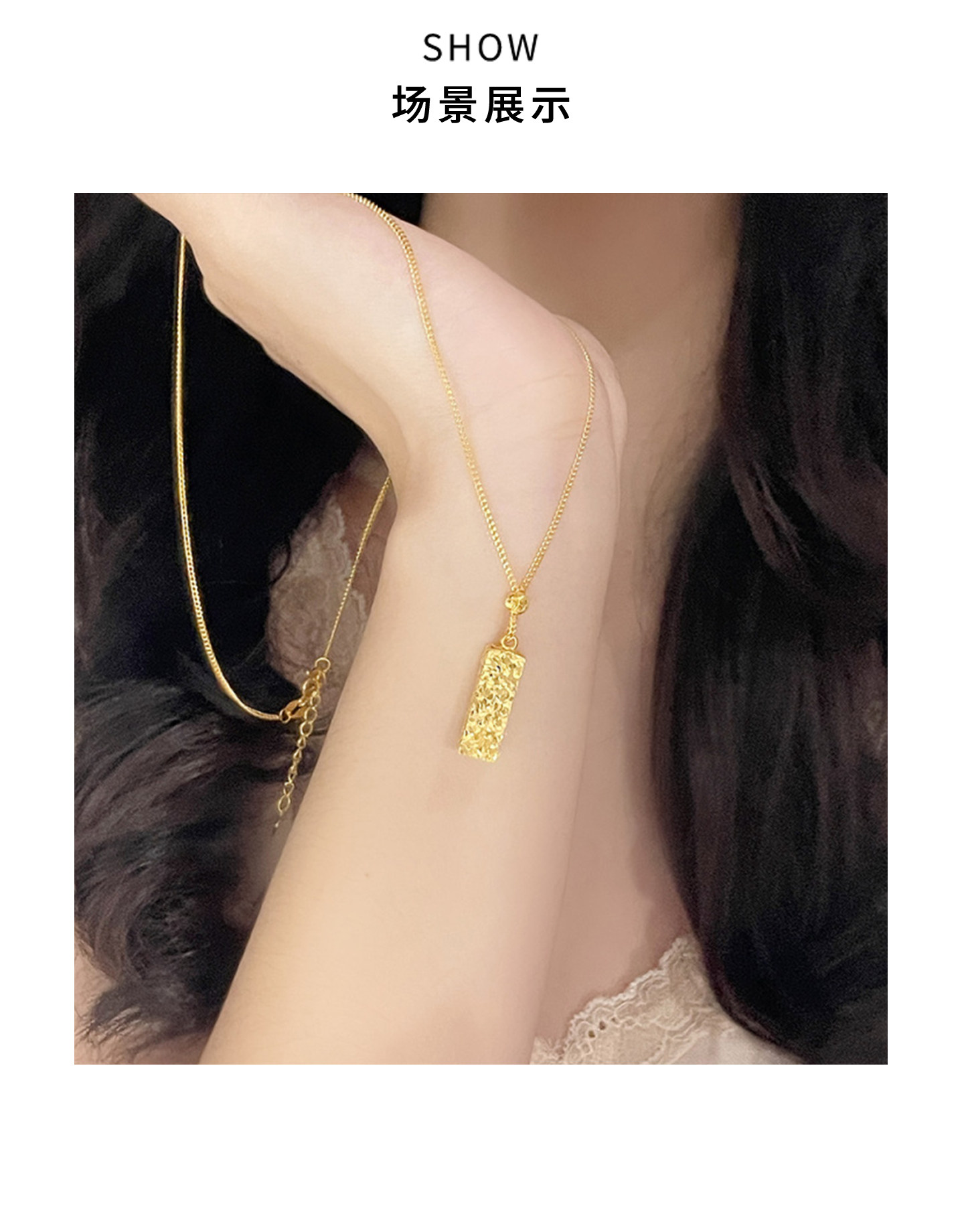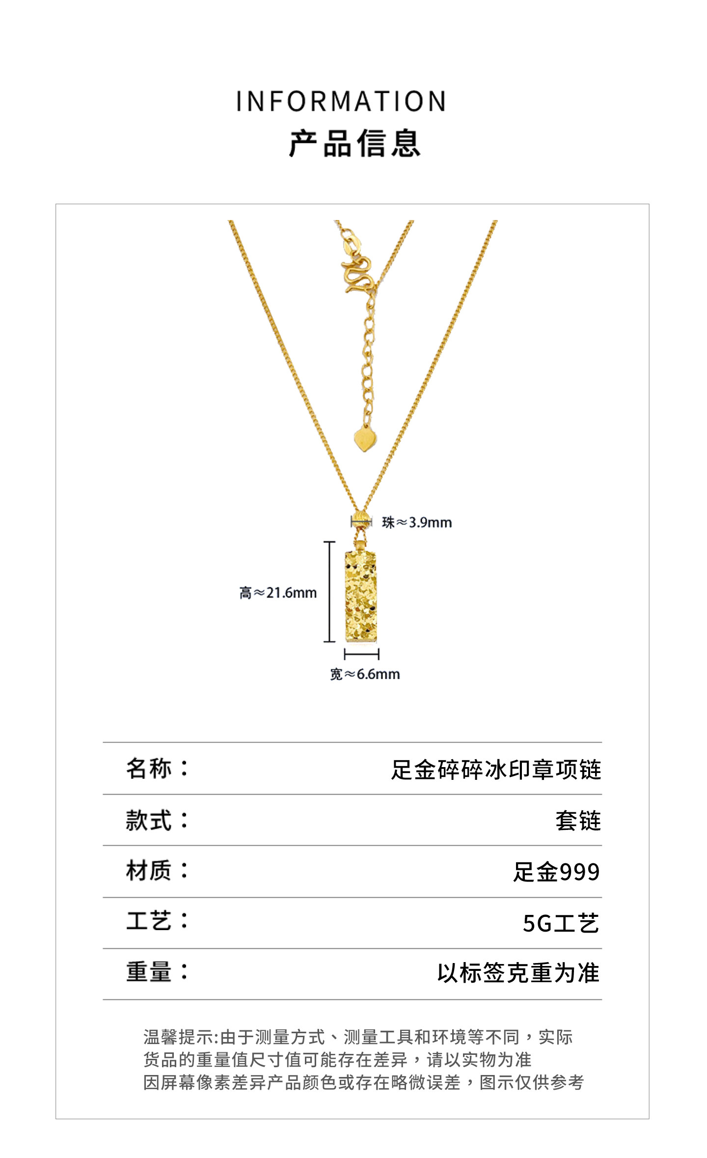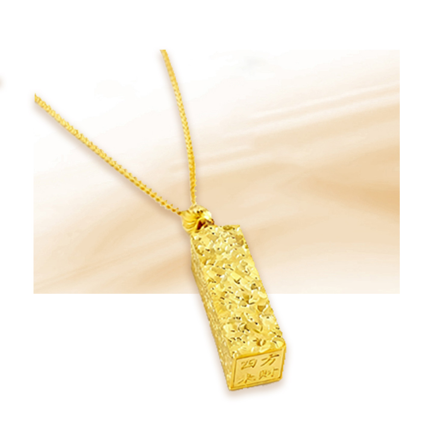 Zhou Juxi 999 Pure Gold Crushed Ice Seal Chain Set, Square Shape, Brings Wealth, Gold Pendant, Holiday Gift for Girlfriend