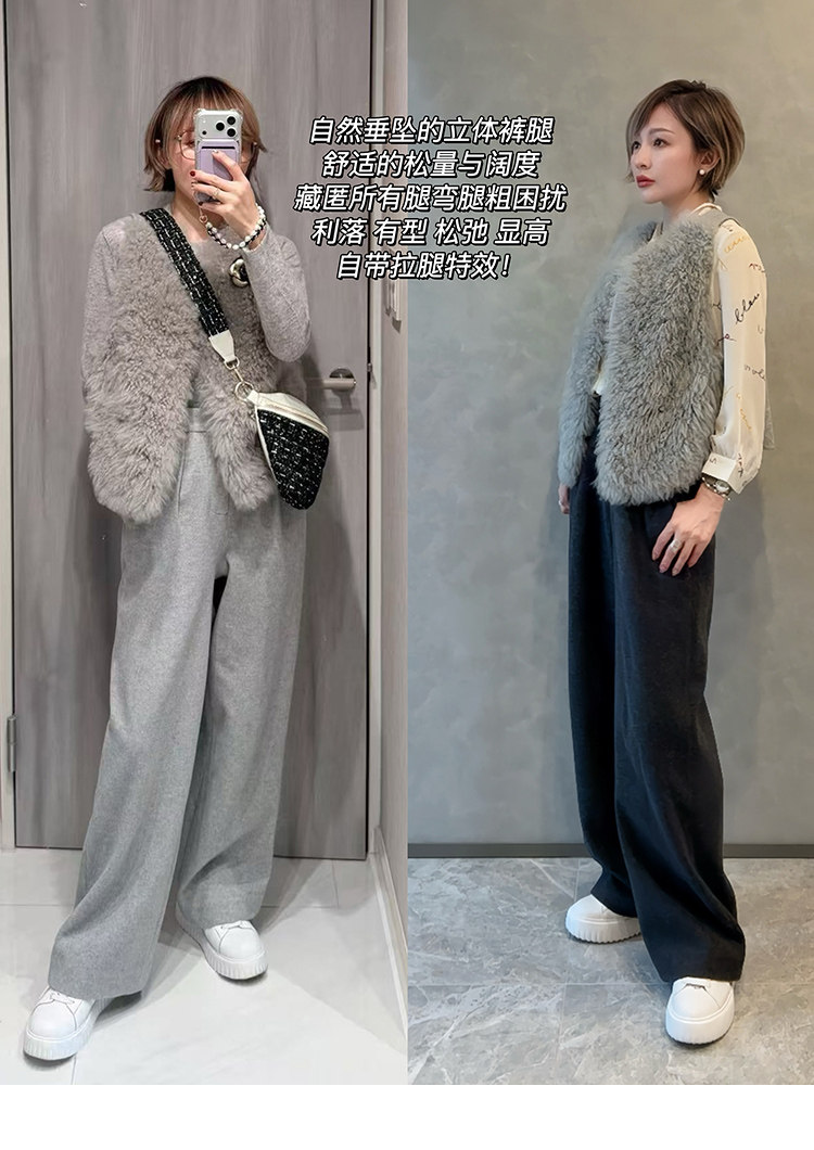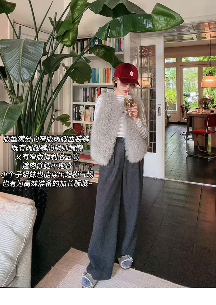 Autumn and Winter Slim-Fit Wide-Leg Trousers, Stylish and Classy Tr Wool-Like High-Waisted Wide-Leg Pants