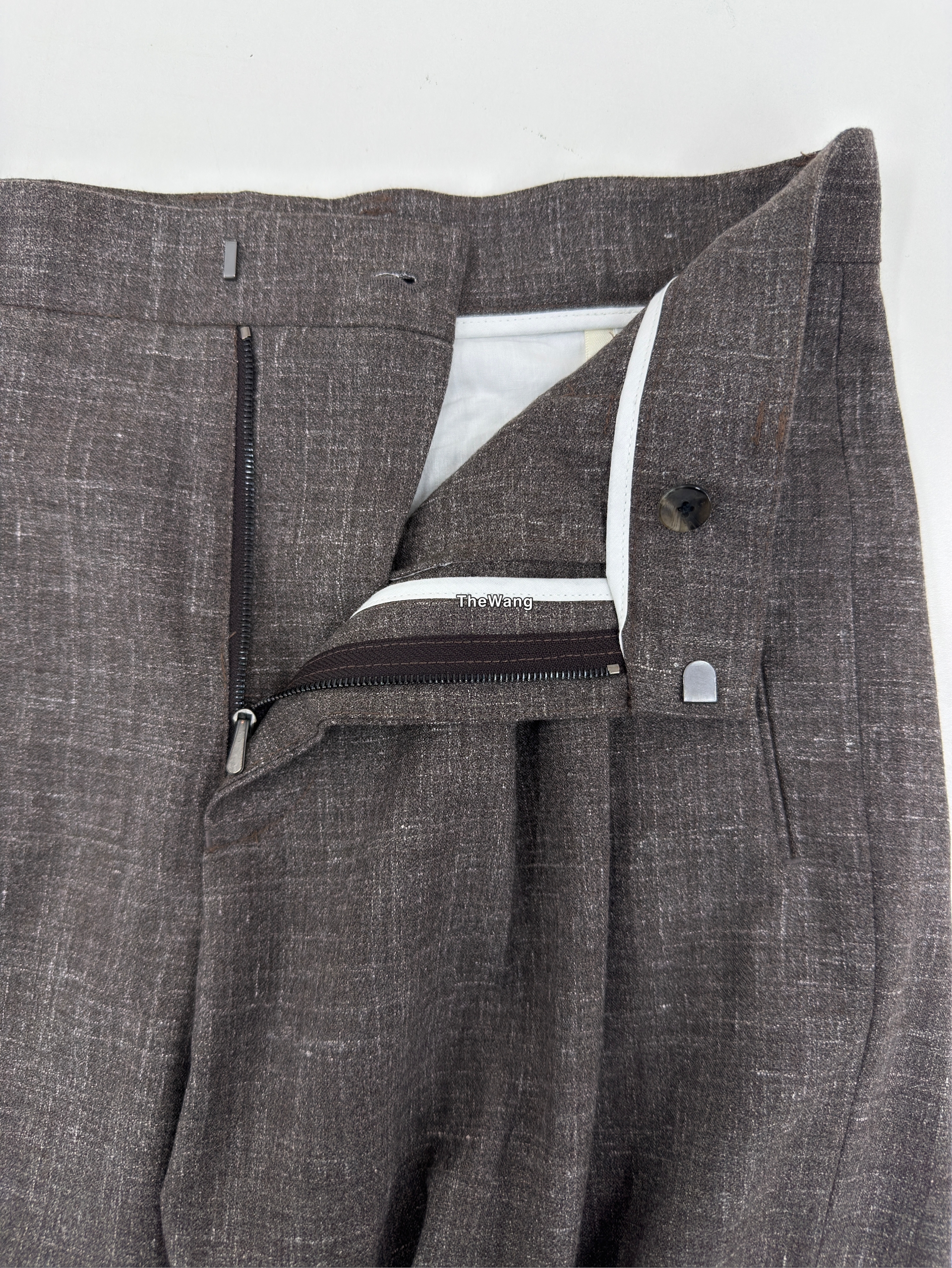 Row25Silas French Rain Dew Linen Silk Virgin Wool Blend Dress Pants Trousers