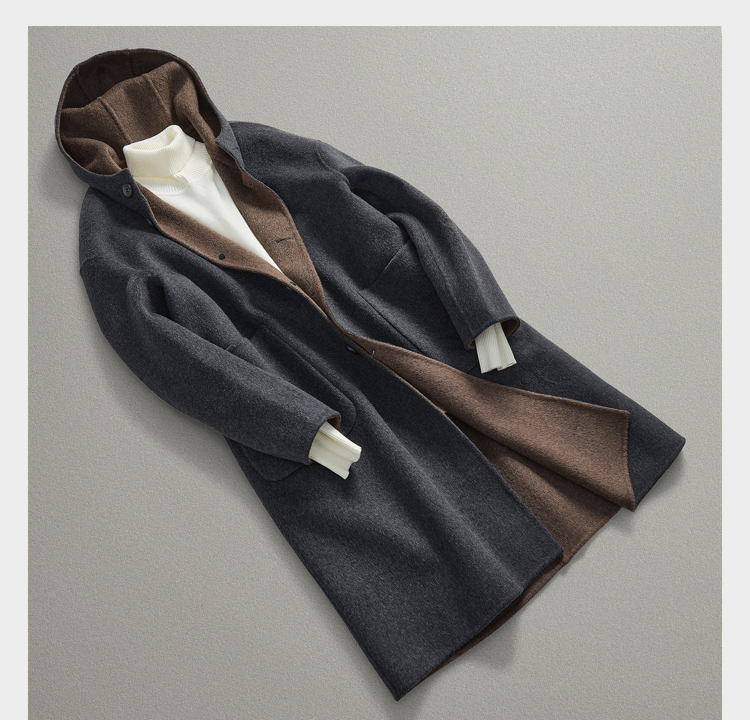 【Notes】Autumn and Winter Korean-Style Minimalist Silhouette Double-Sided Wool Blend Long Coat for Men