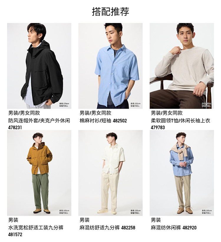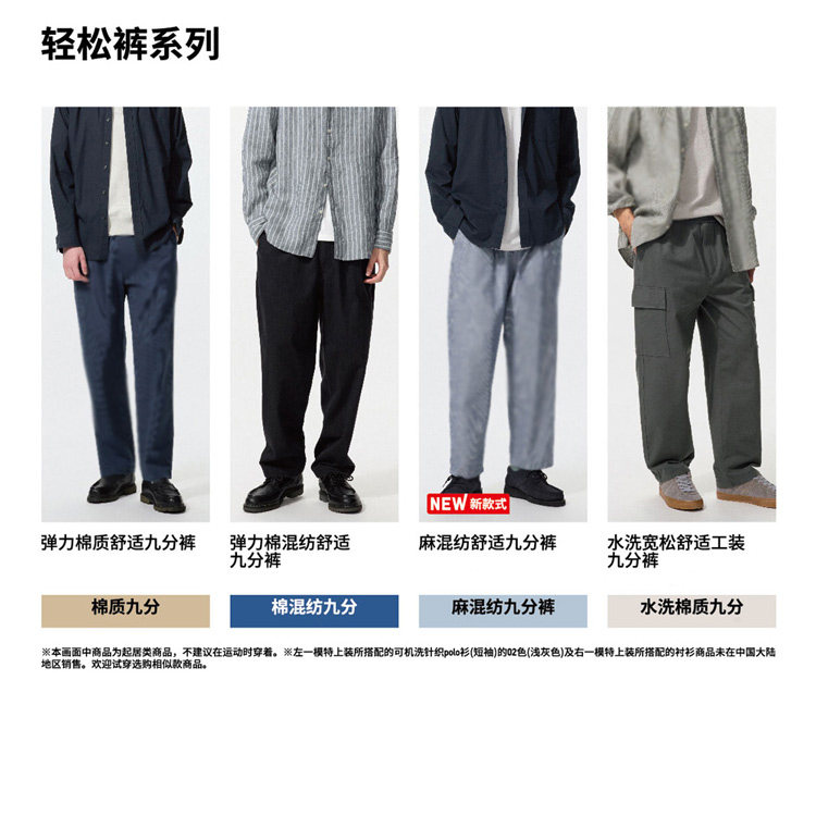 Uniqlo Men's Washed Loose Comfortable Workwear Cropped Pants Casual Pants Loungewear Pants 26 Spring/Summer New Model 481572