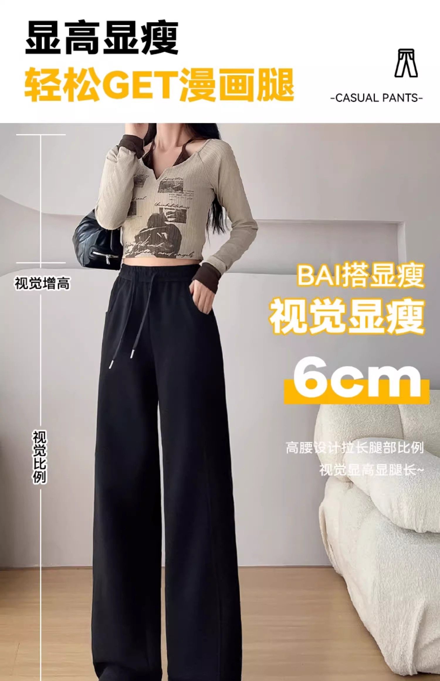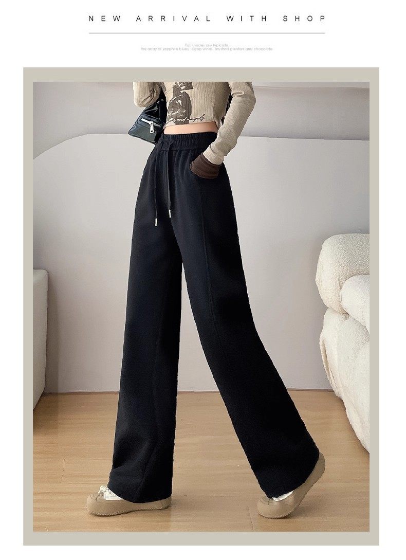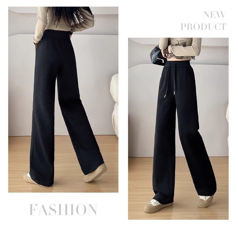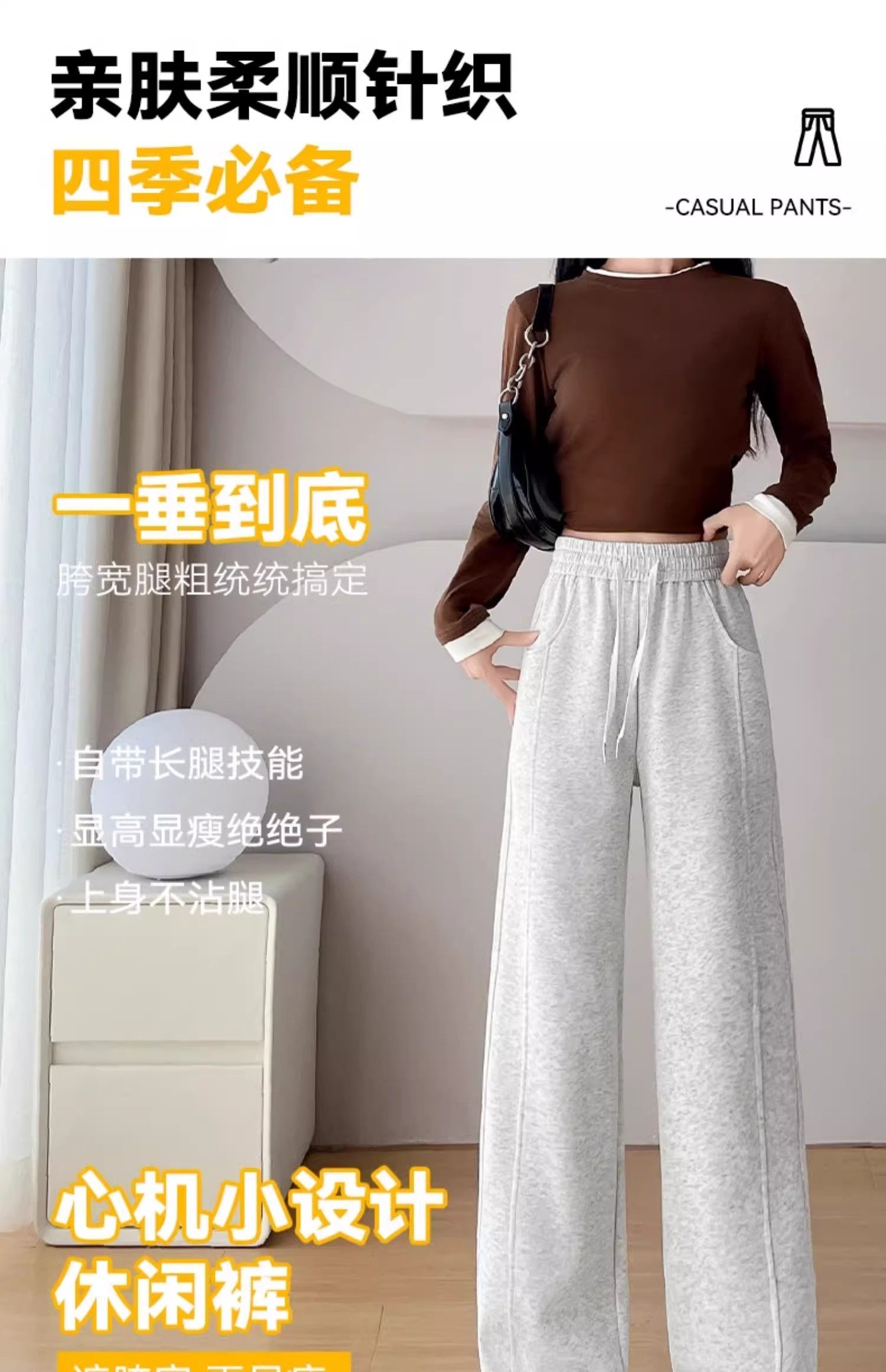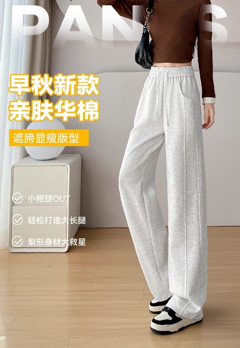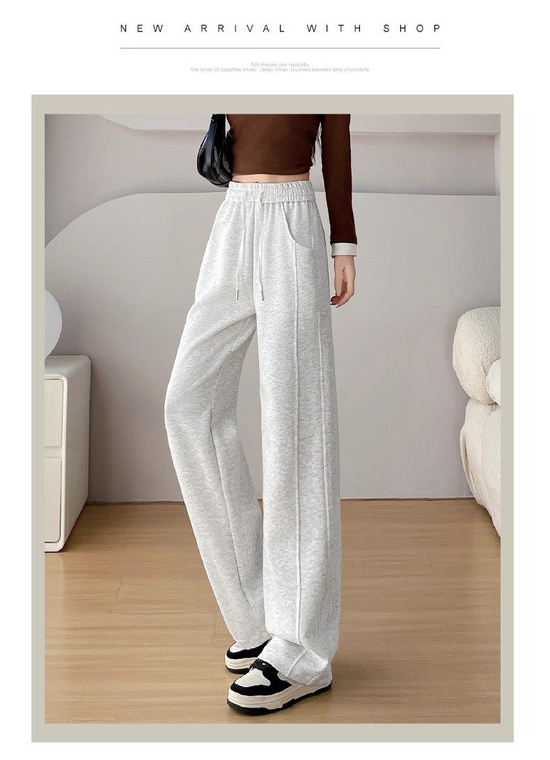 Jiaoyinduo Gray Sweatpants for Women, Autumn and Winter Straight-Leg Casual Sweatpants, New Autumn and Winter American-Style Banana Wide-Leg Pants
