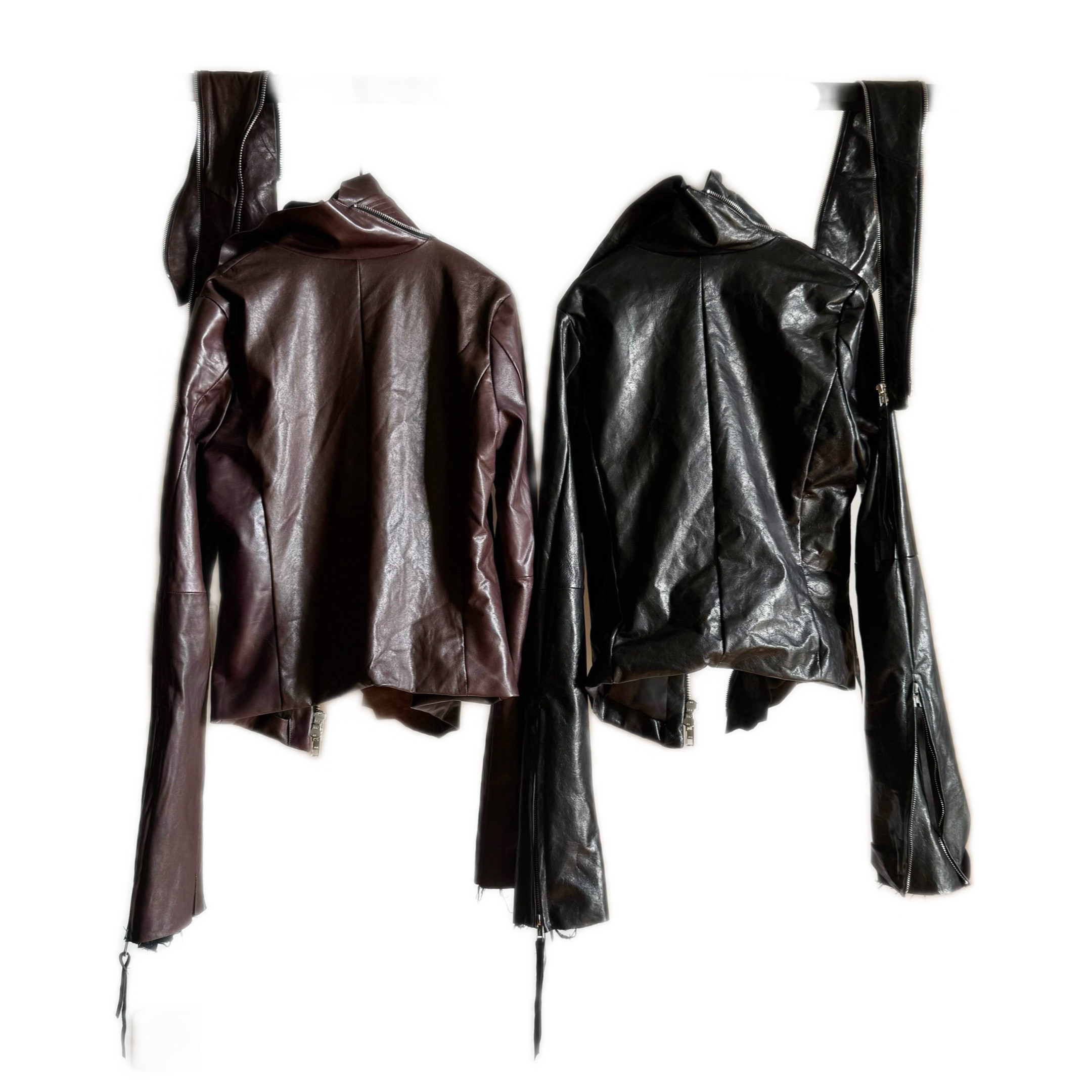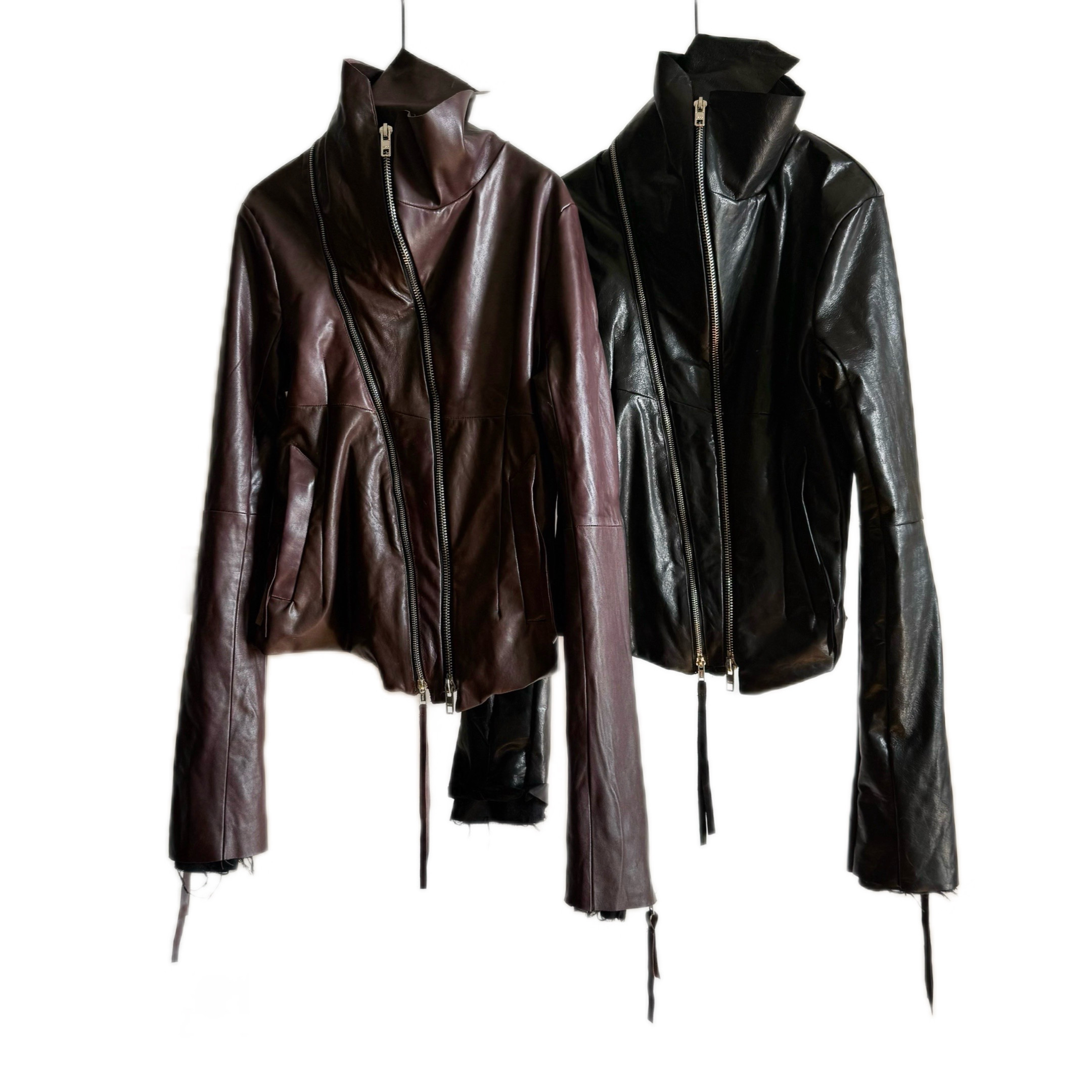 Autonomous Ekam Dark Ro Style Autumn and Winter High-Neck Leather Jacket Slim Fit Diagonal Zipper Biker Style Short Jacket