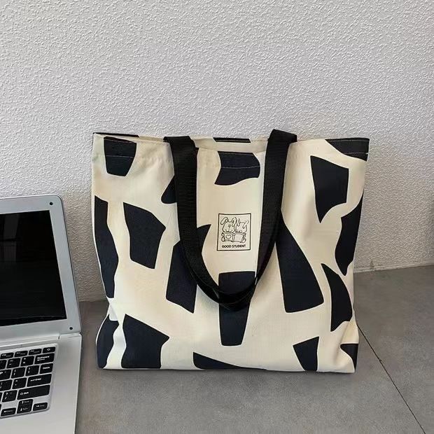 Canvas Bag for Female College Students to Carry Books, Ins-Style Korean Design with Zipper, Niche Design, Single Shoulder Tote Canvas Bag
