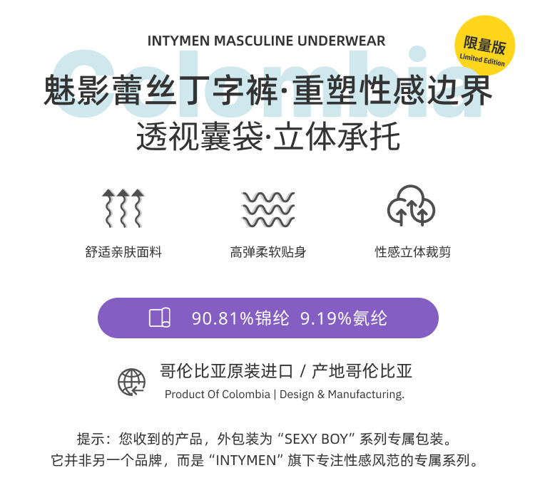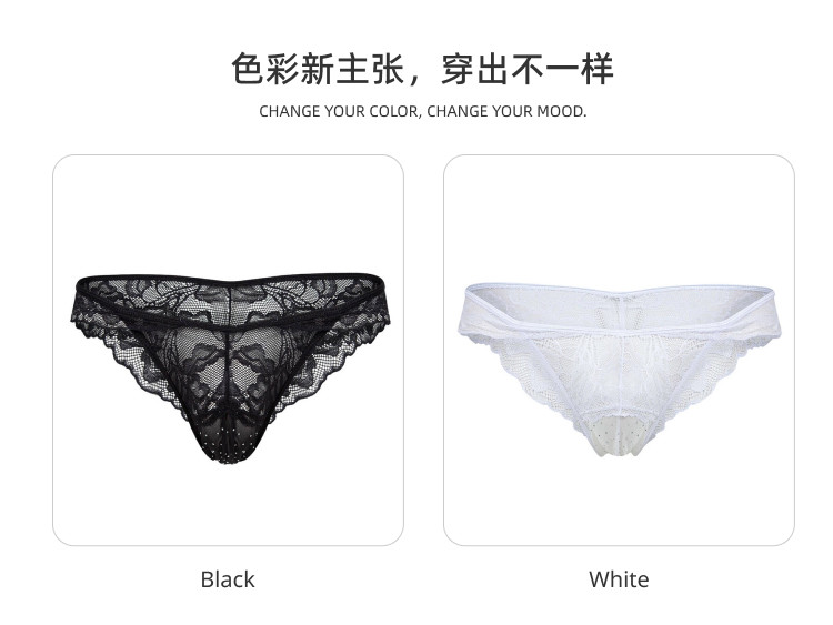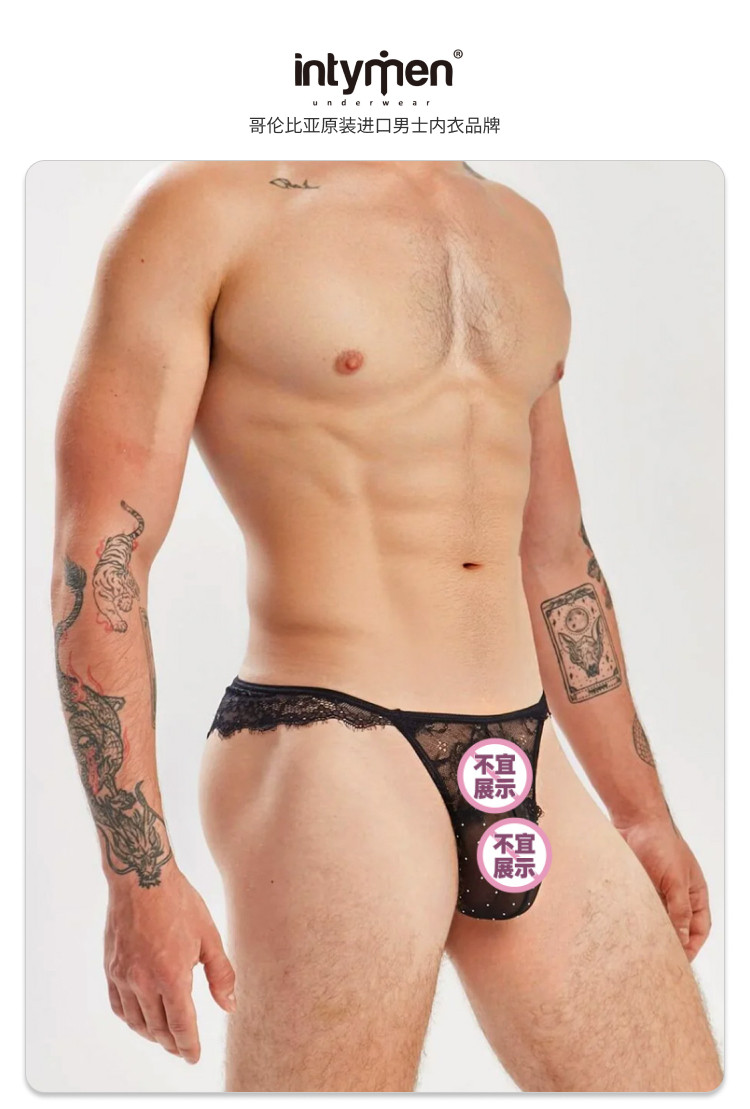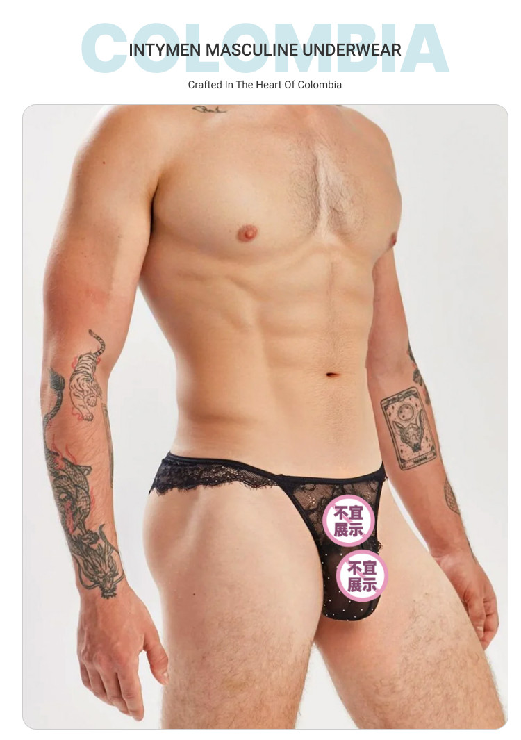 Intymen Sexy Mesh Lace See-Through Men's Thong High Elasticity Breathable U-Convex Breathable Pouch Slk006
