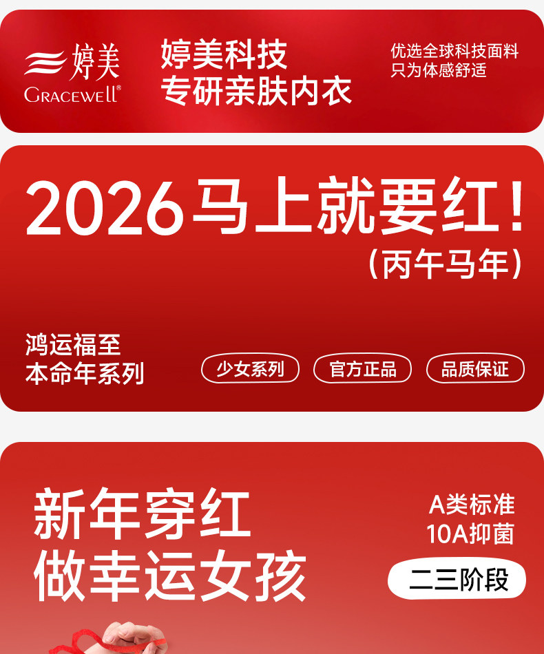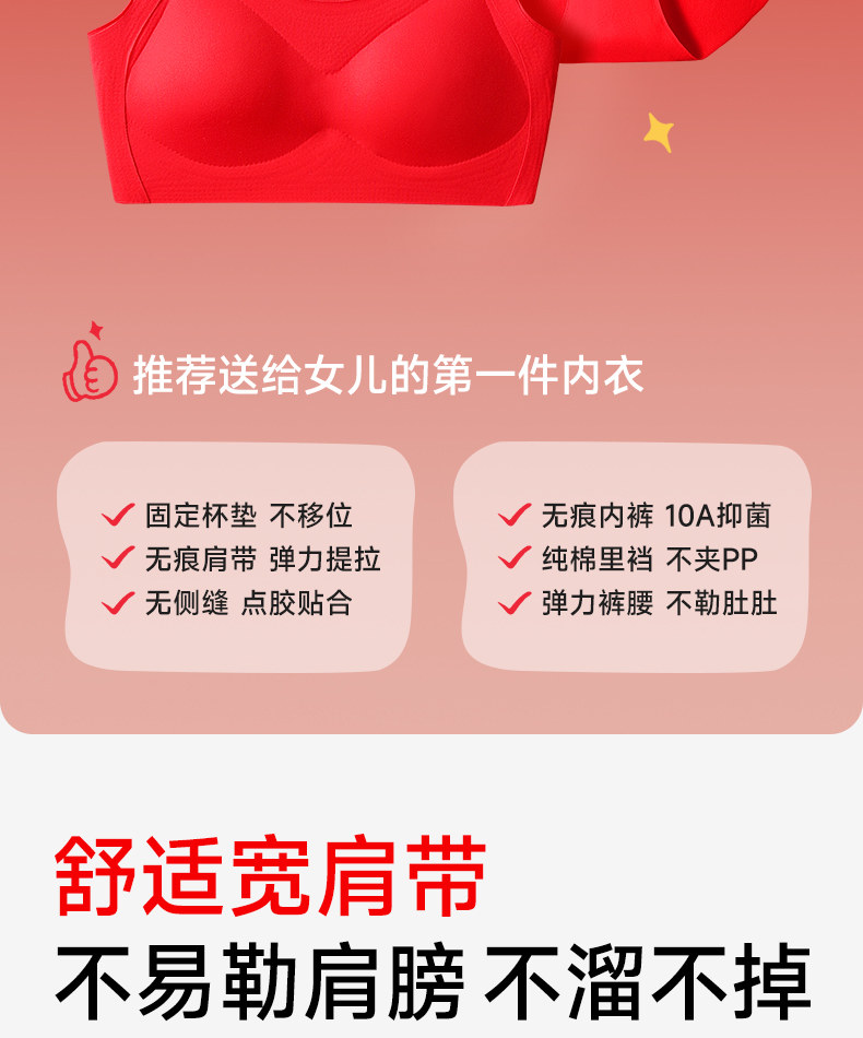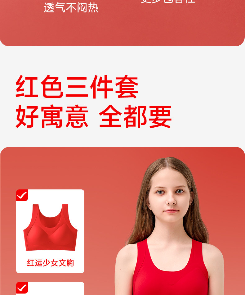 Tingmei Girls' Red Zodiac Year Underwear Set Children's Developmental Period Bra Vest 2026 Year of the Horse Clothing