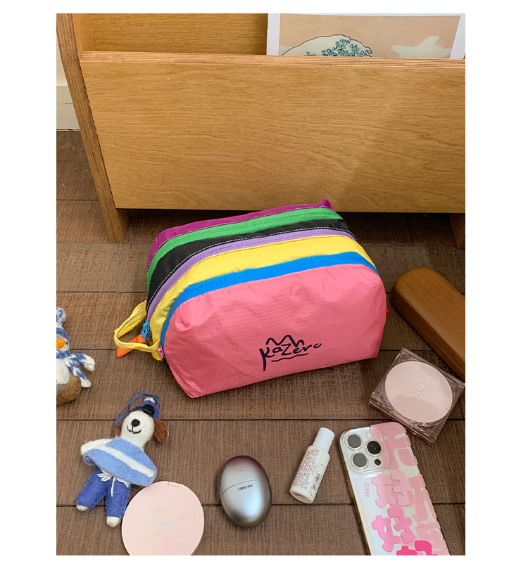 Dopamine Color Alpaca Toiletry Bag Waterproof Portable Color-Blocking Multifunctional Clutch Travel Makeup Storage Bag for Women