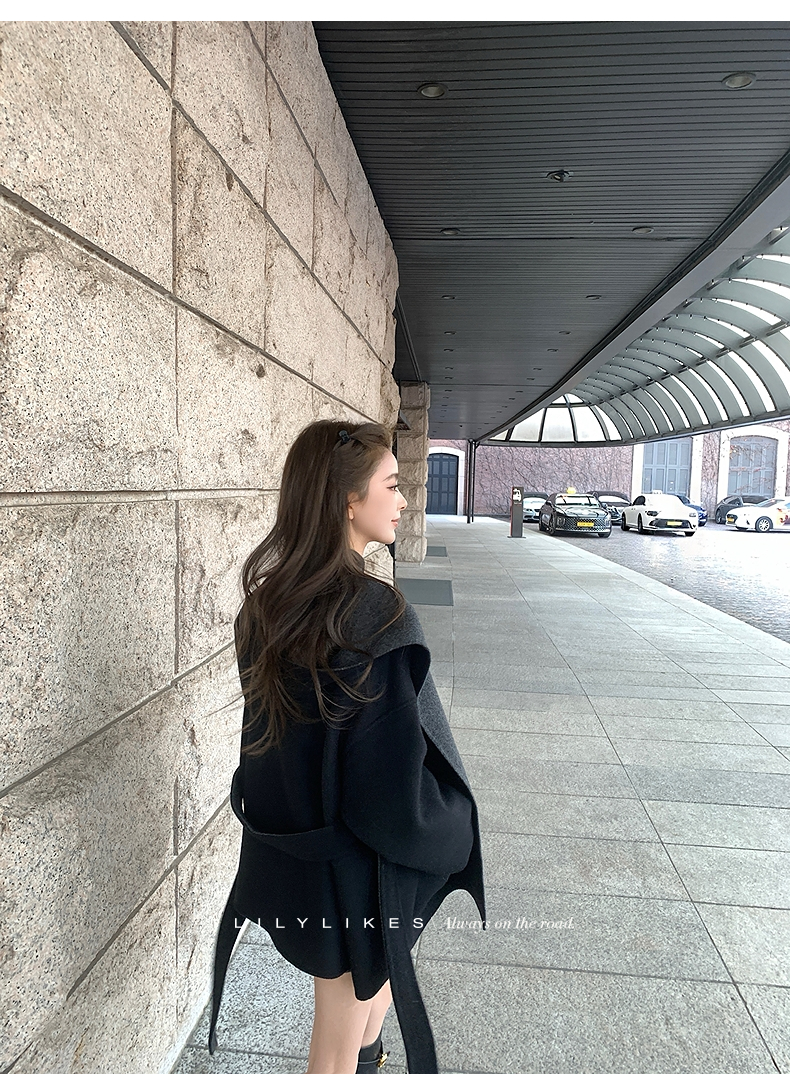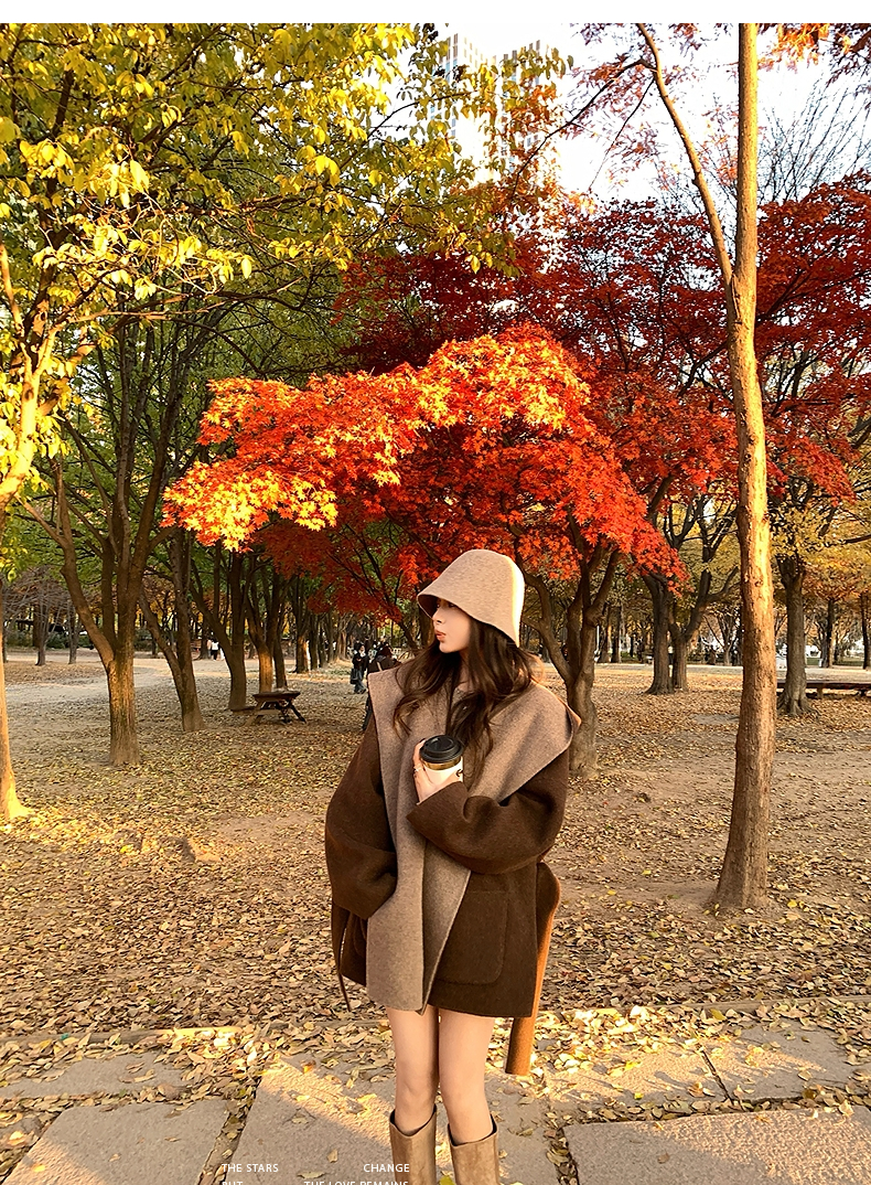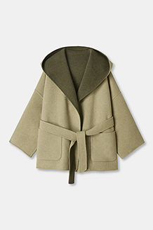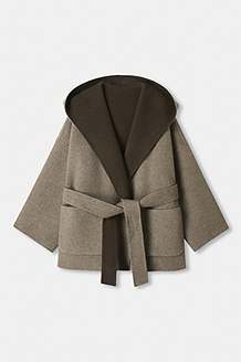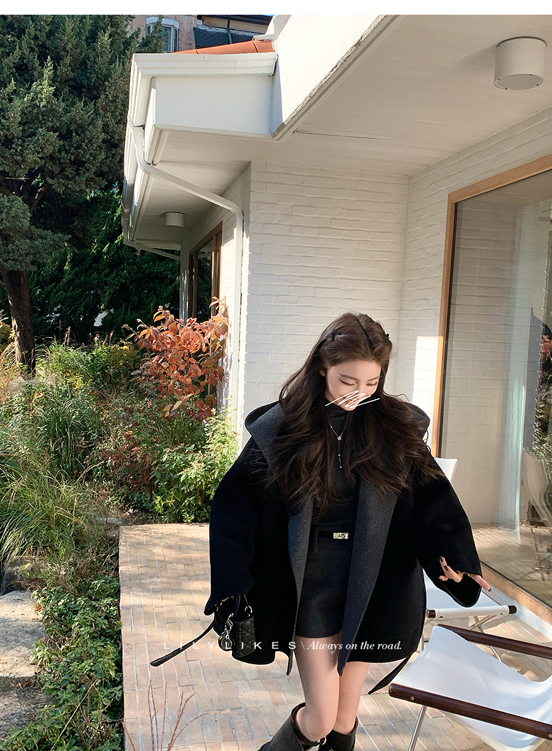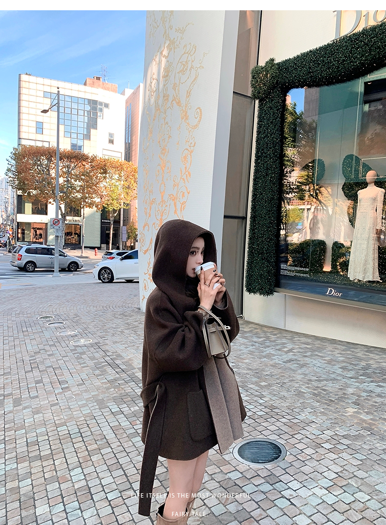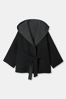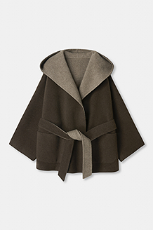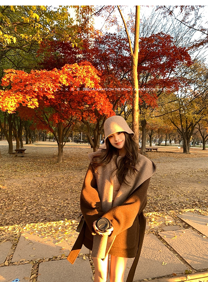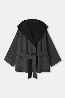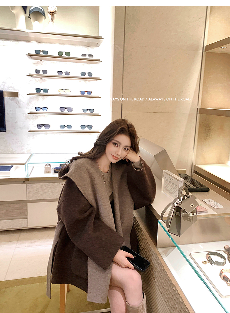 L*V Noble Lady's Bathrobe Coat Cashmere Silk Wool/Wool Cashmere Reversible Color-Blocked Hooded Bathrobe Coat