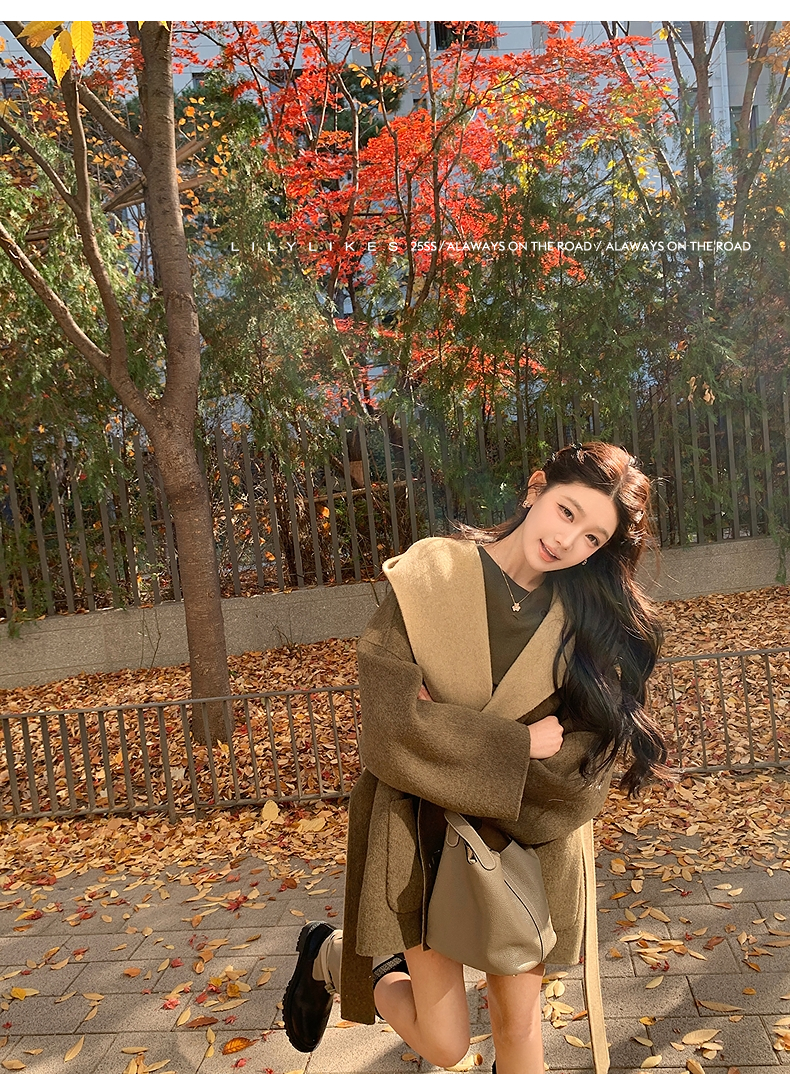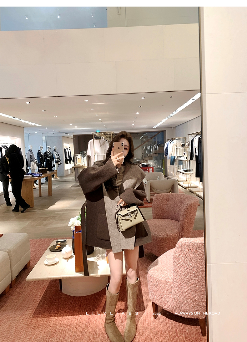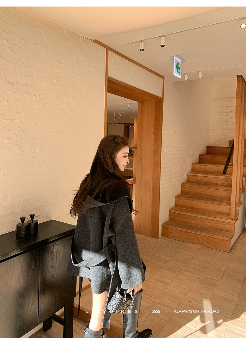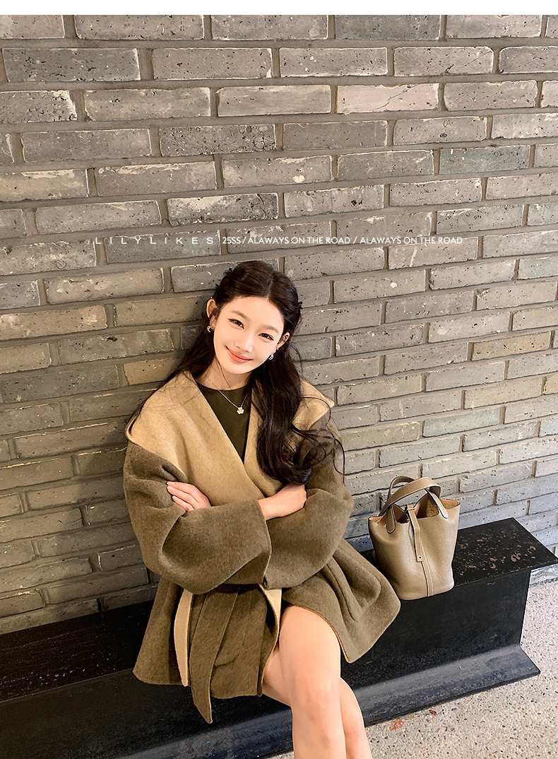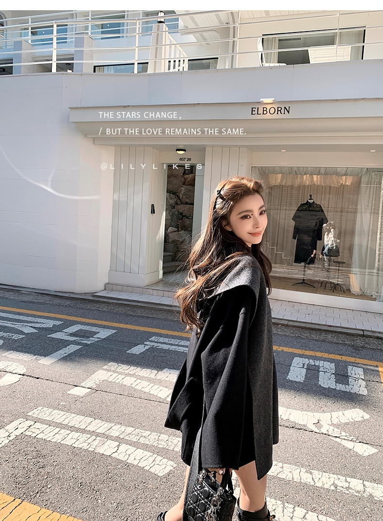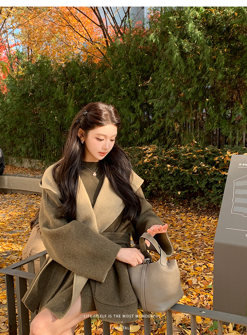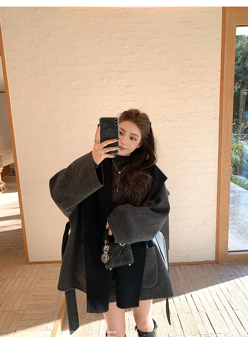L*V Noble Lady's Bathrobe Coat Cashmere Silk Wool/Wool Cashmere Reversible Color-Blocked Hooded Bathrobe Coat