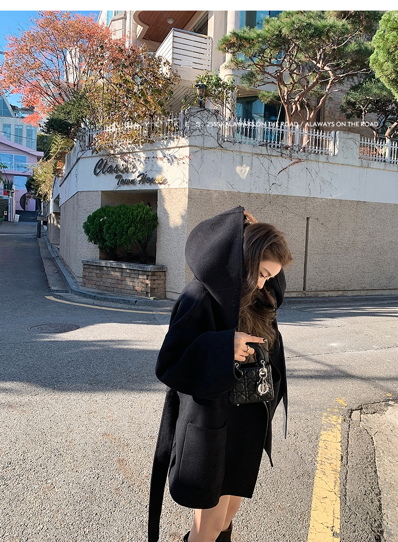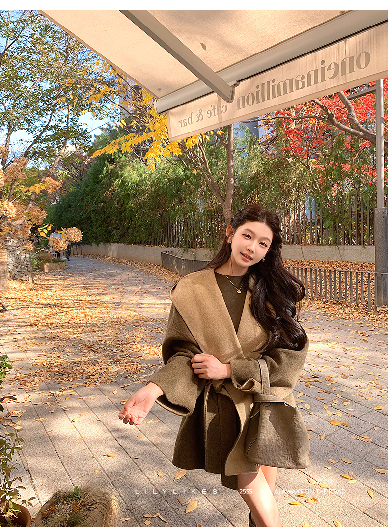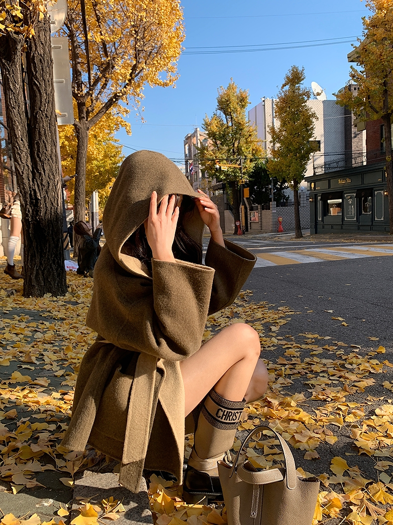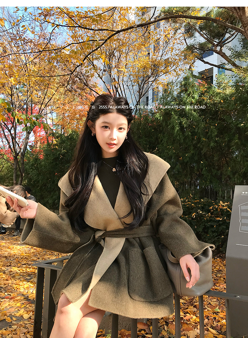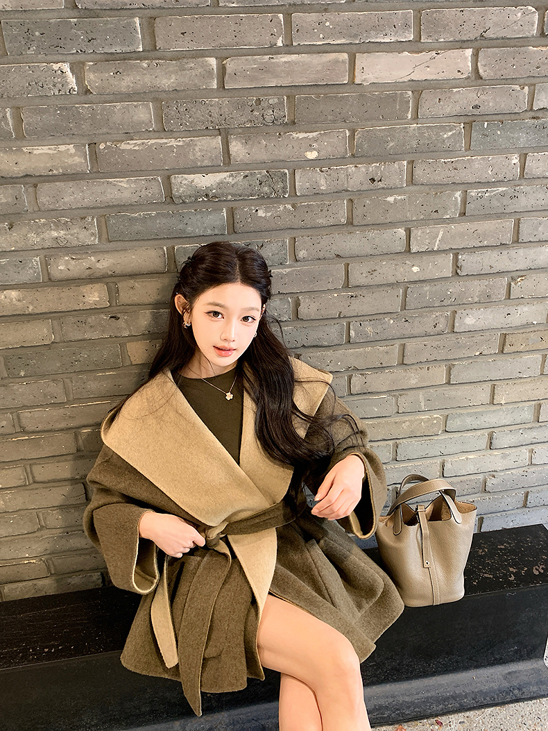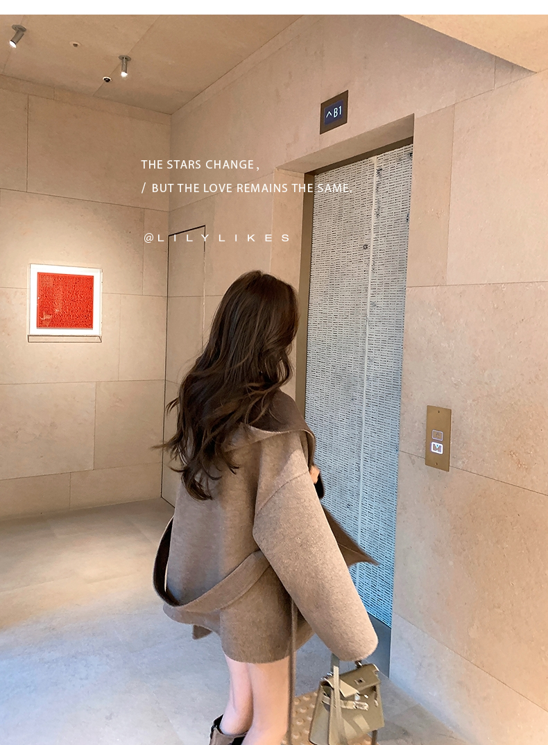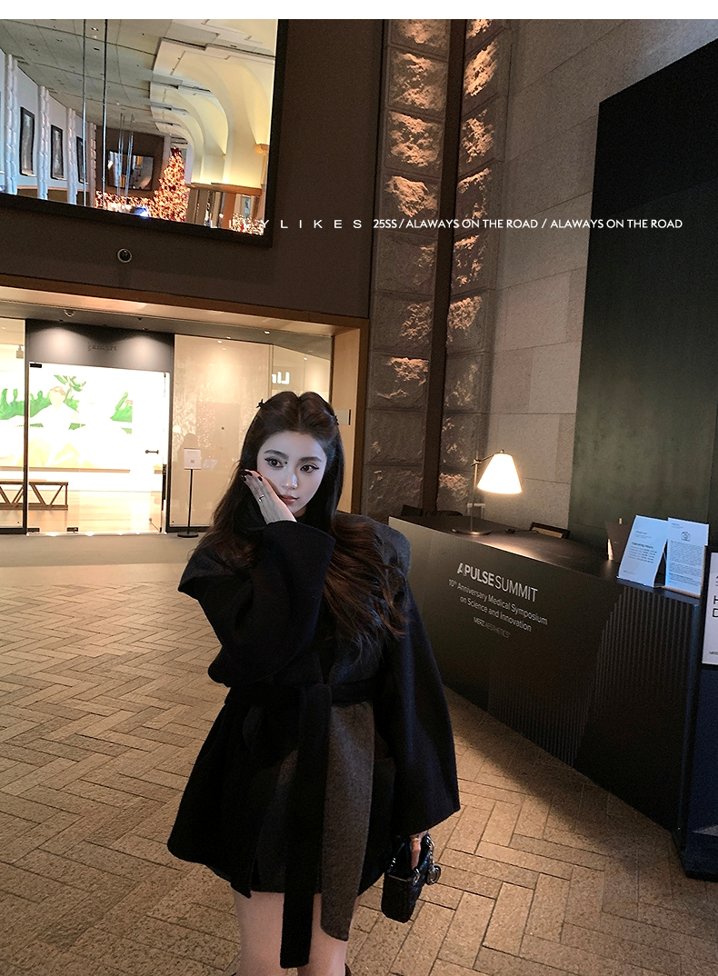 L*V Noble Lady's Bathrobe Coat Cashmere Silk Wool/Wool Cashmere Reversible Color-Blocked Hooded Bathrobe Coat
