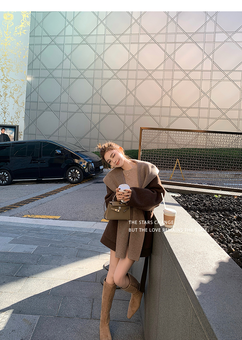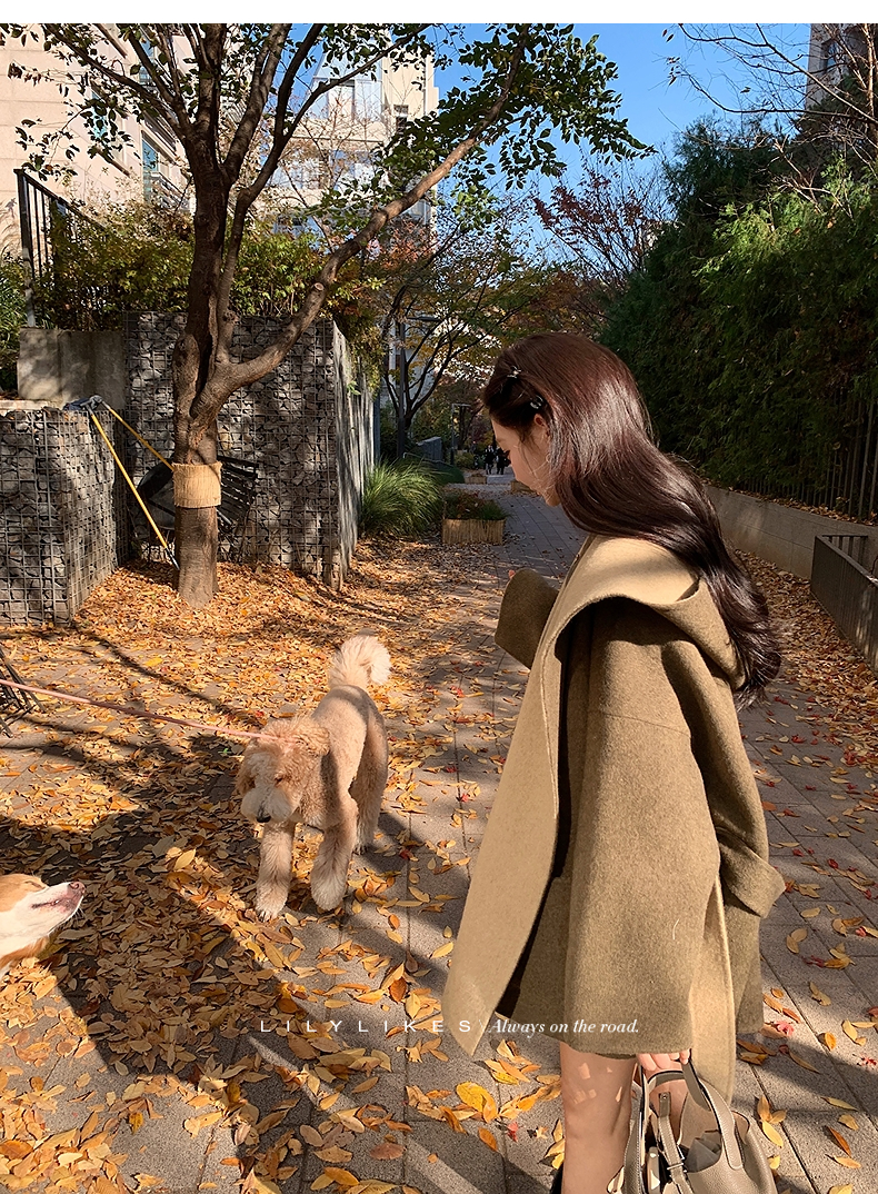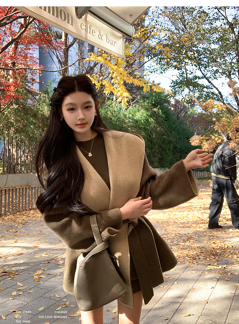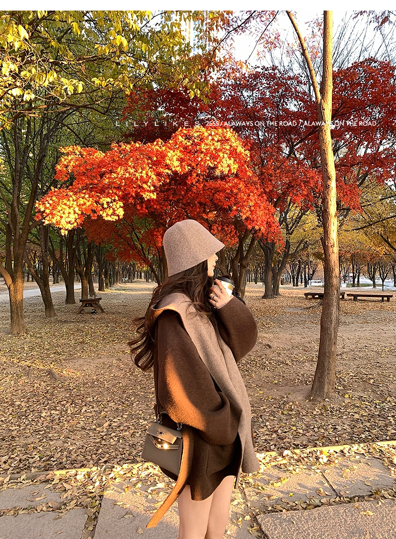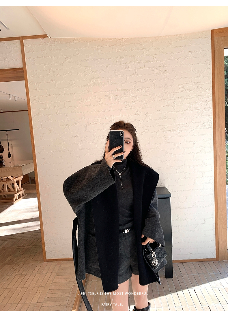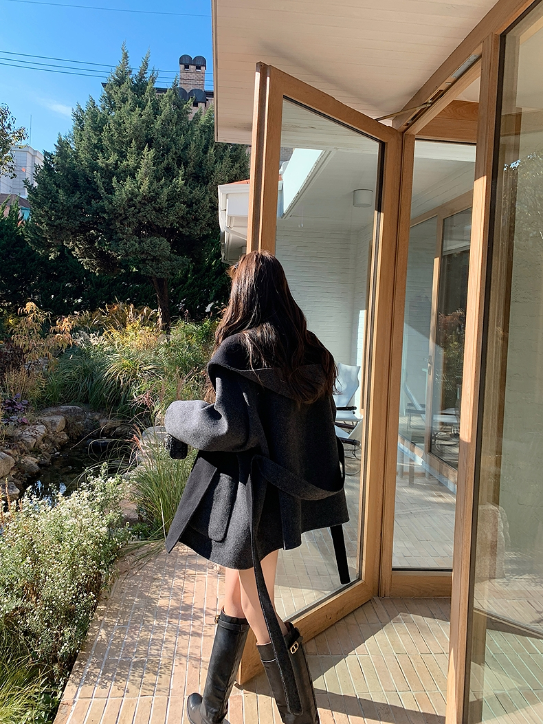 L*V Noble Lady's Bathrobe Coat Cashmere Silk Wool/Wool Cashmere Reversible Color-Blocked Hooded Bathrobe Coat