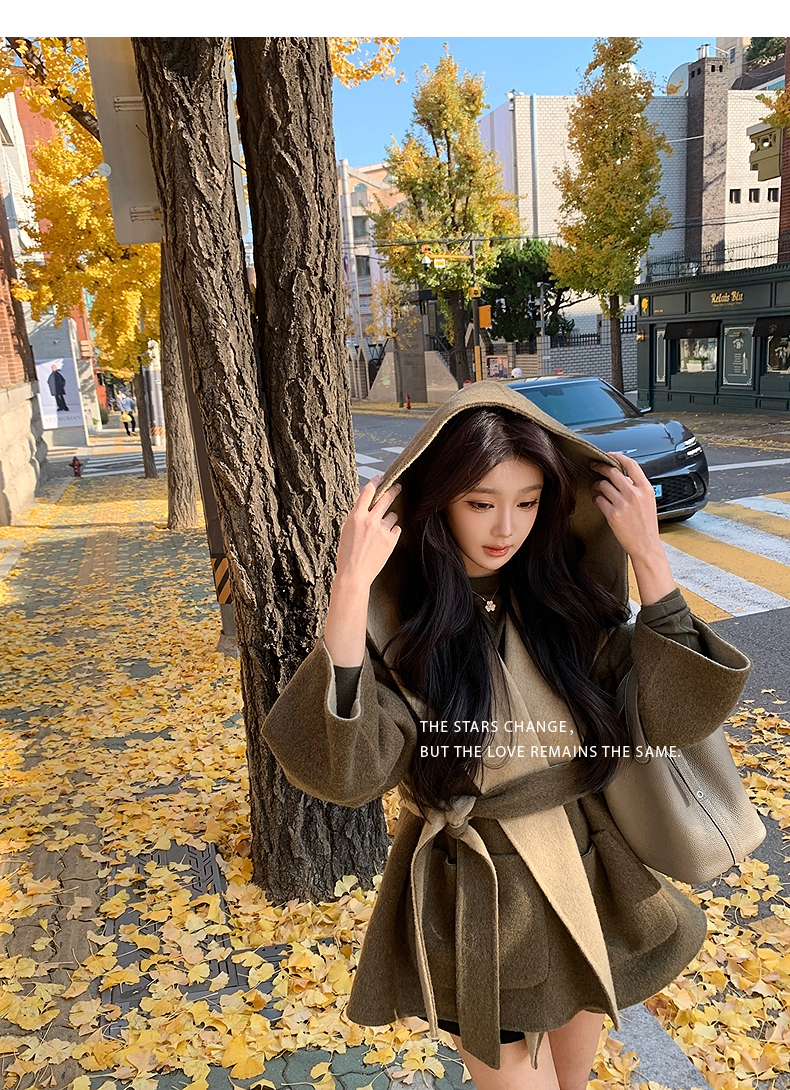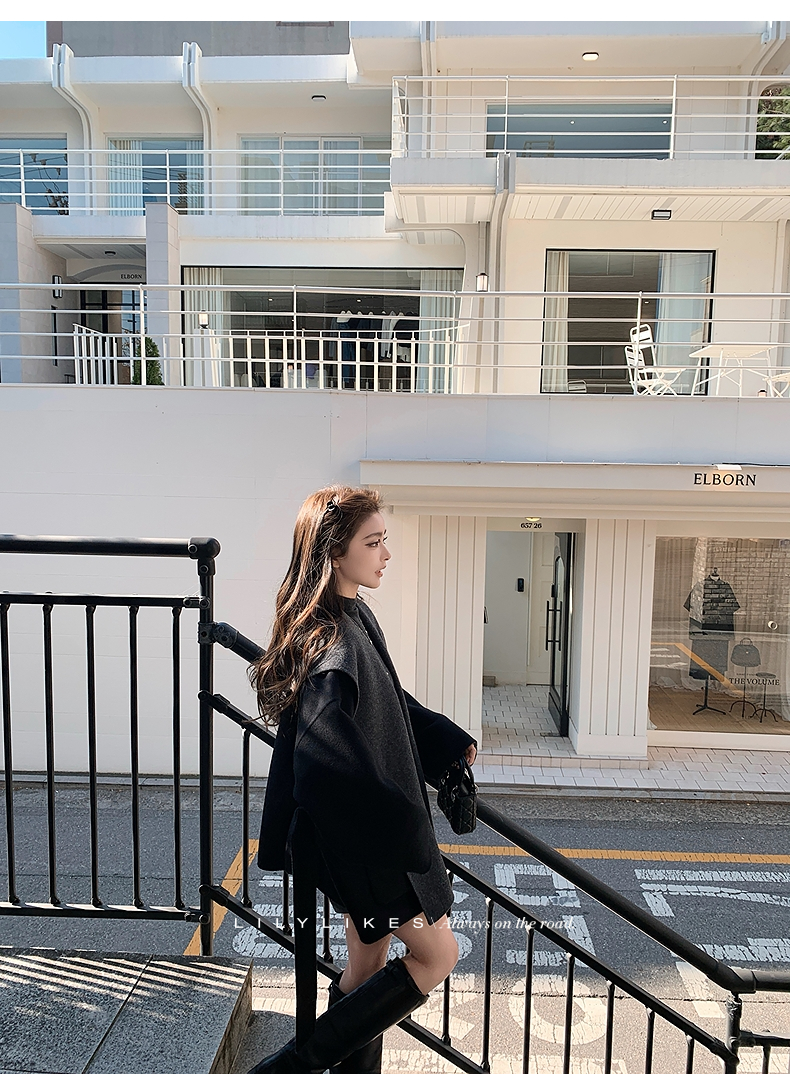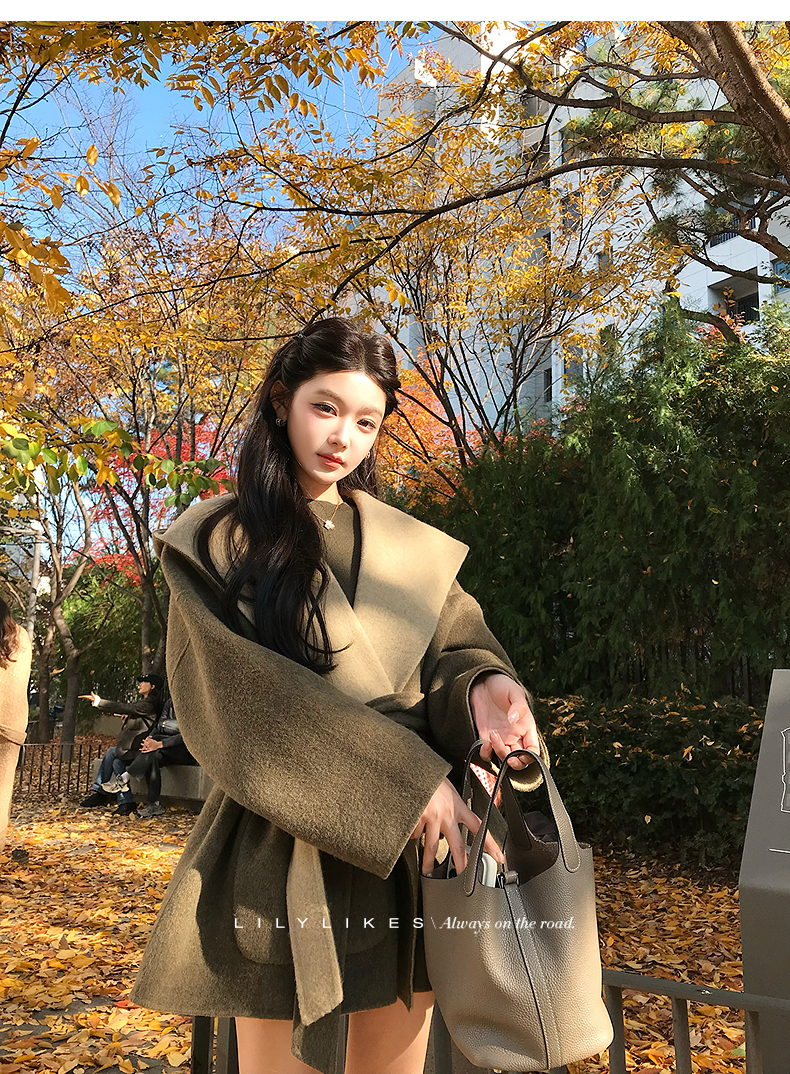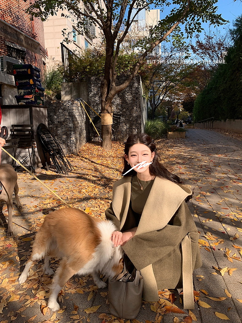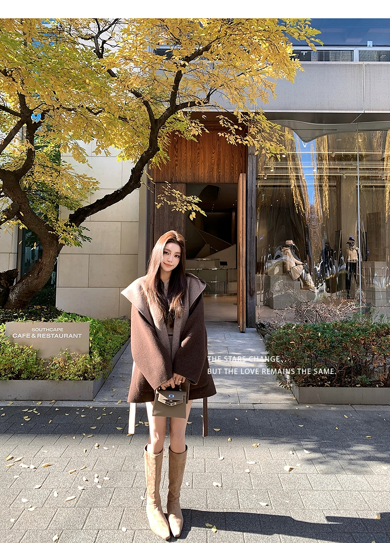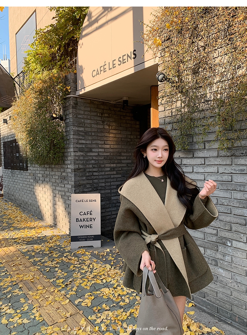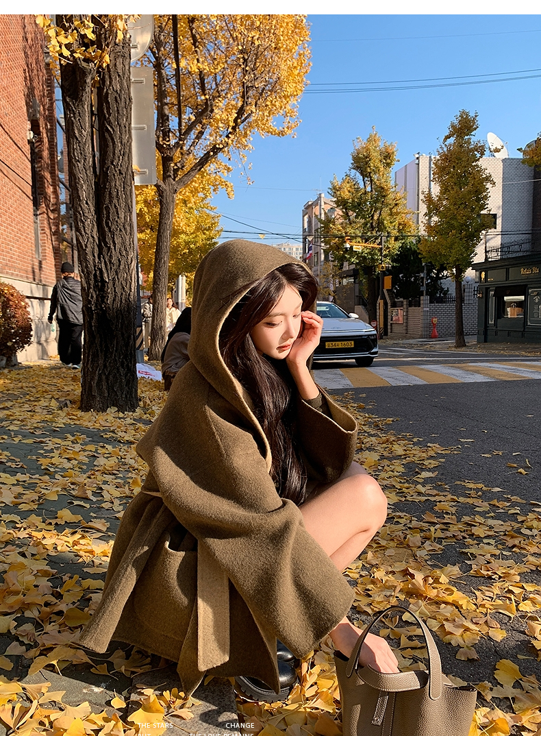 L*V Noble Lady's Bathrobe Coat Cashmere Silk Wool/Wool Cashmere Reversible Color-Blocked Hooded Bathrobe Coat