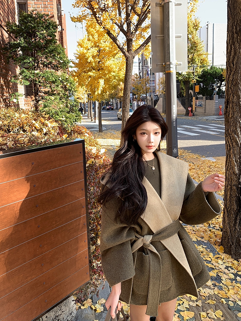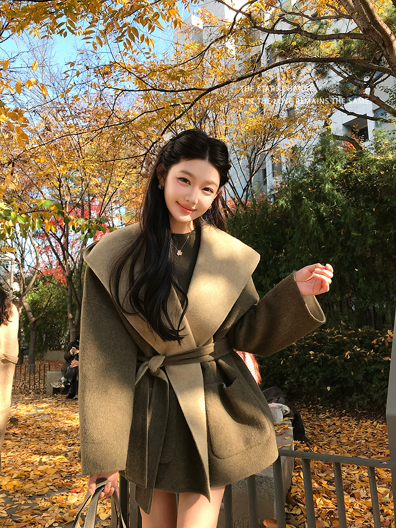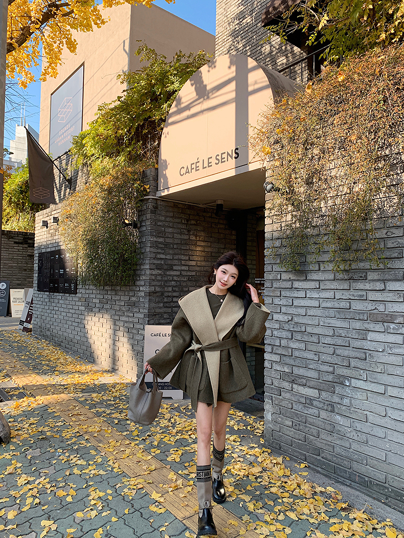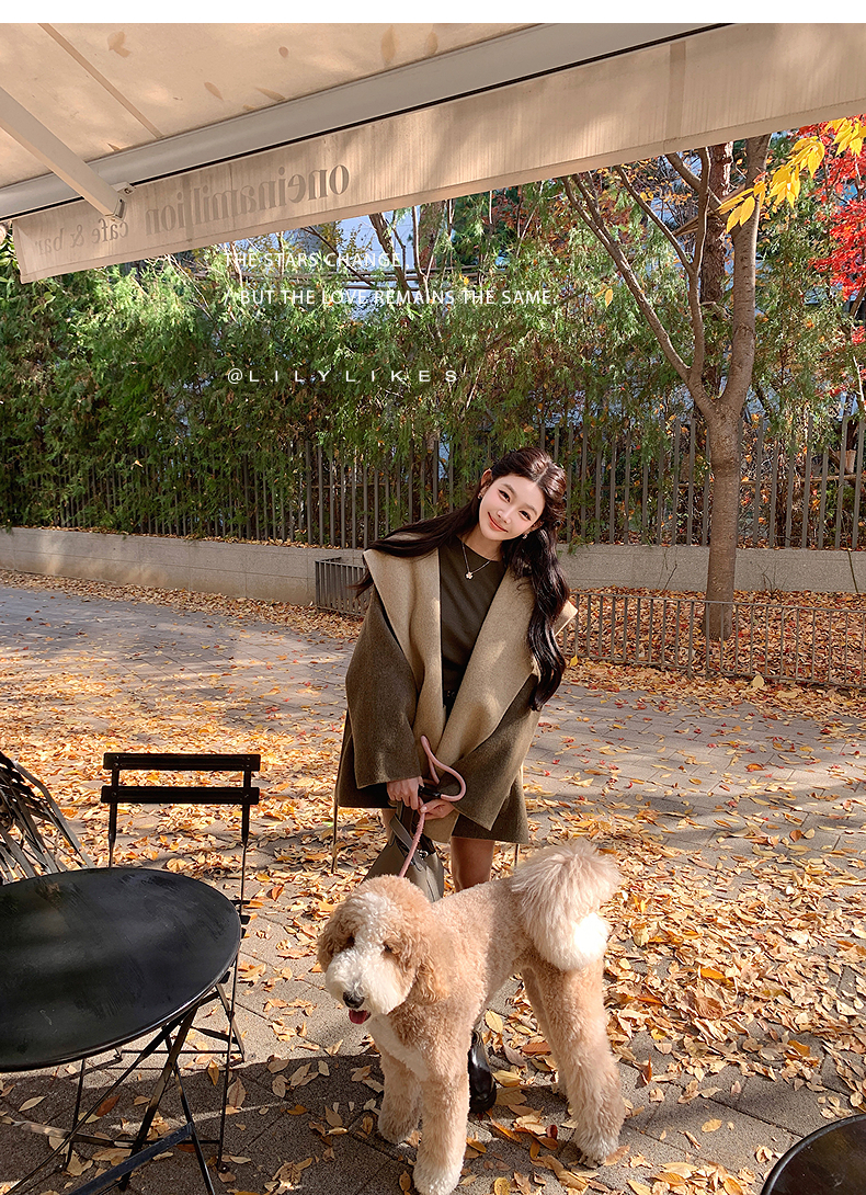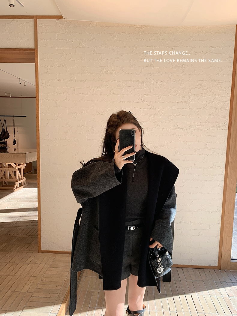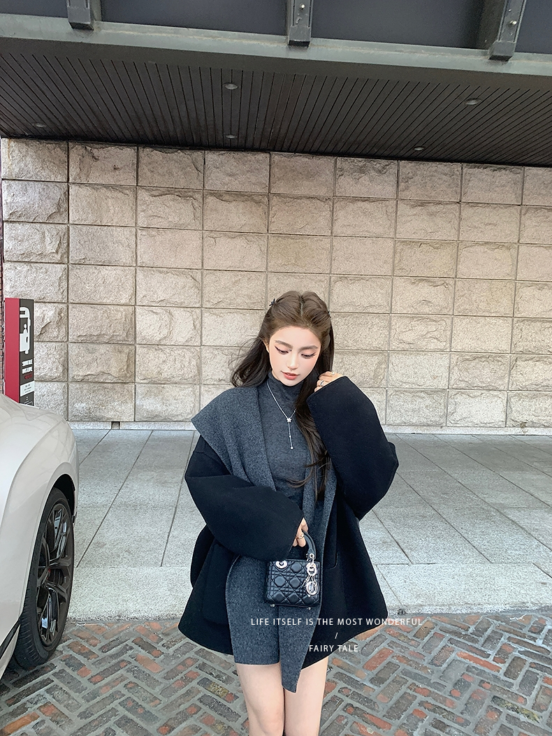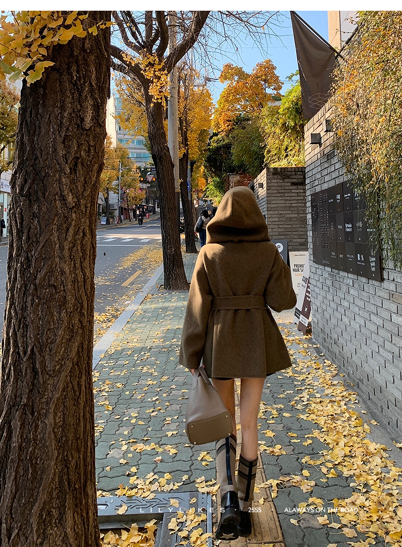 L*V Noble Lady's Bathrobe Coat Cashmere Silk Wool/Wool Cashmere Reversible Color-Blocked Hooded Bathrobe Coat