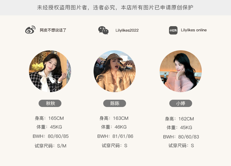 试穿者 身高/体重 三围 试穿尺码 试穿感受
