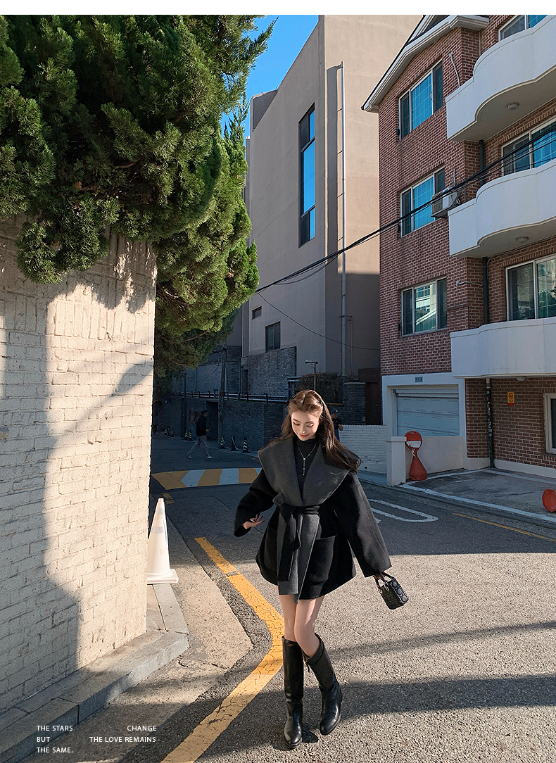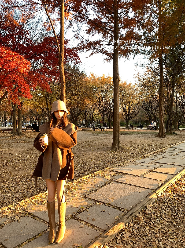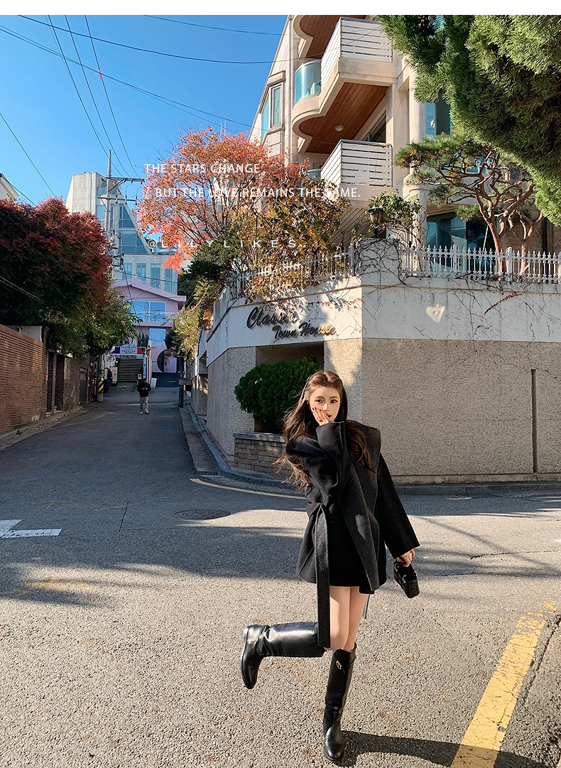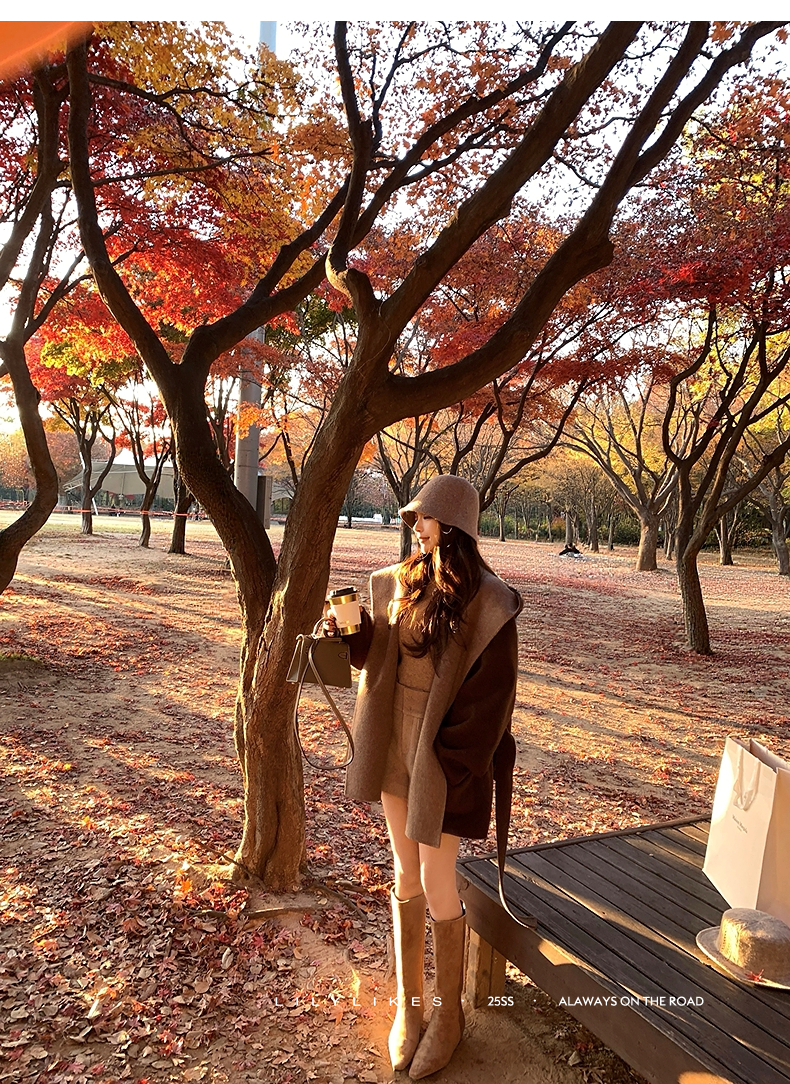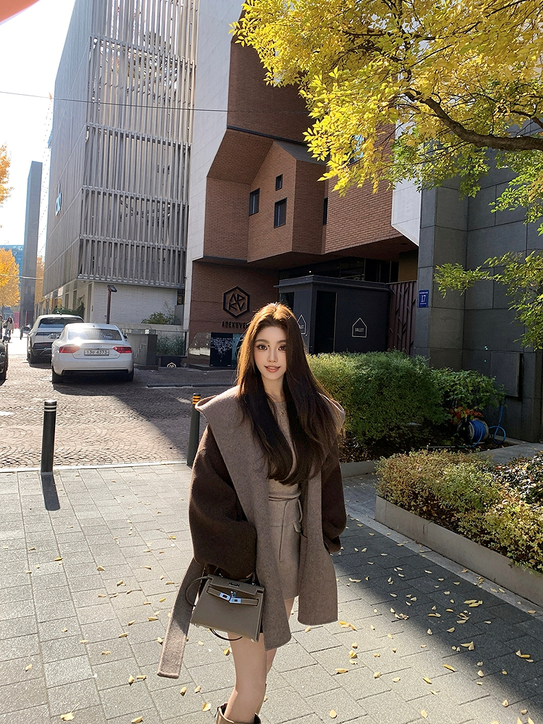 不同于传统厚重大衣,这种混纺面料轻盈不压身