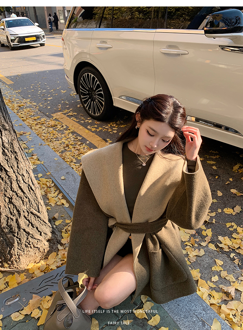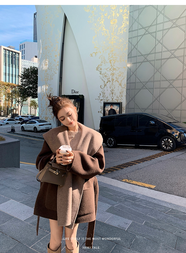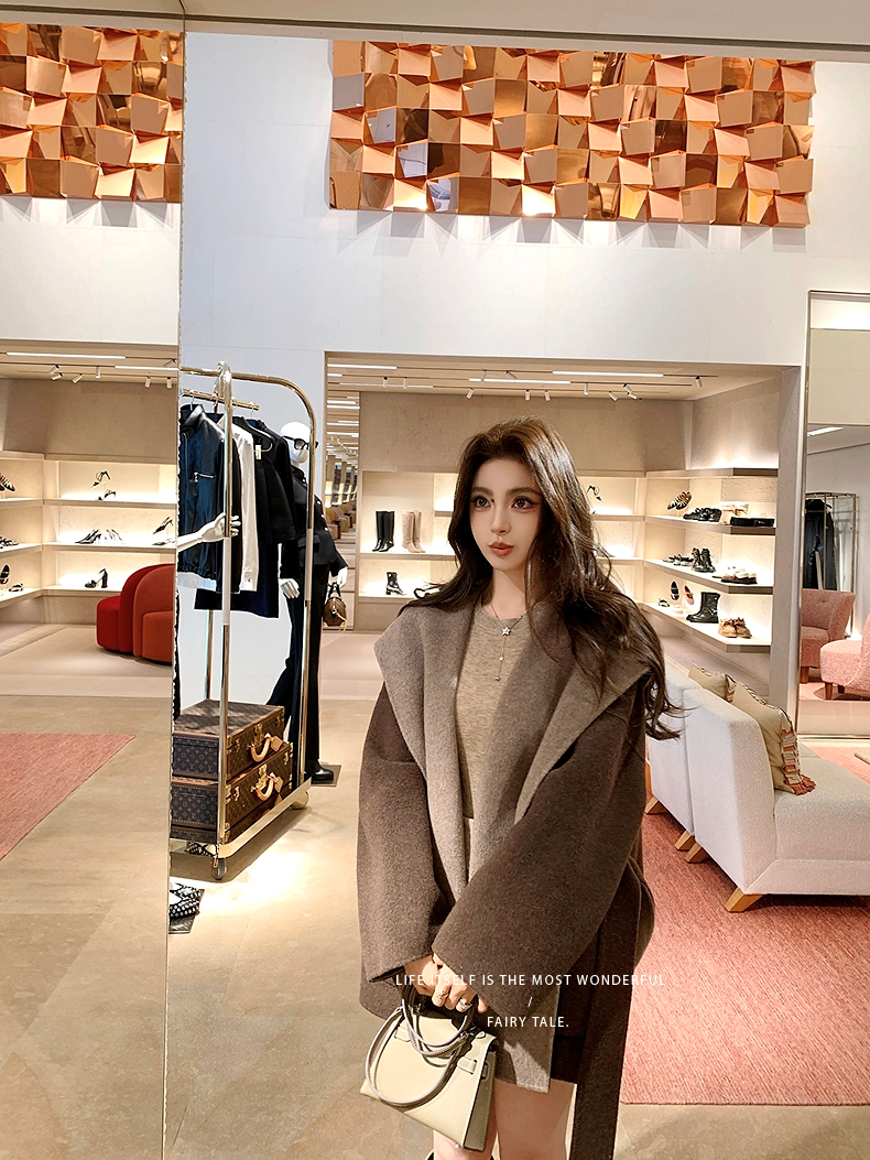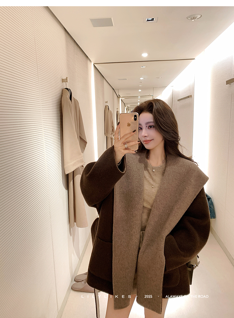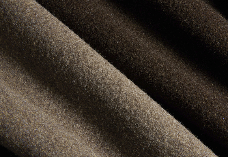 松绒褐面料采用羊绒真丝羊毛双面呢