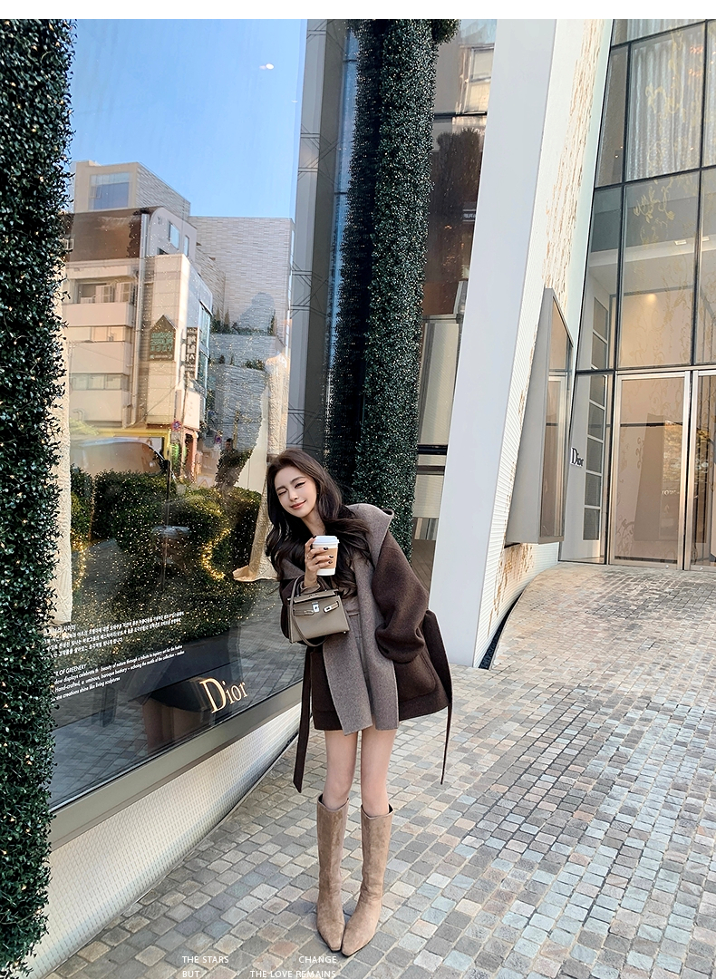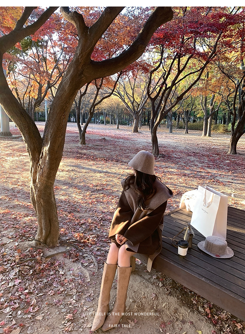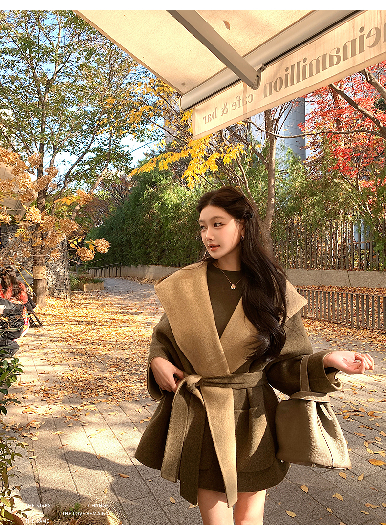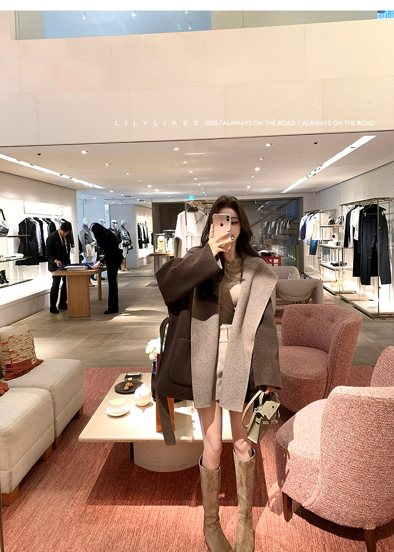 松绒褐面料采用羊绒真丝羊毛双面呢