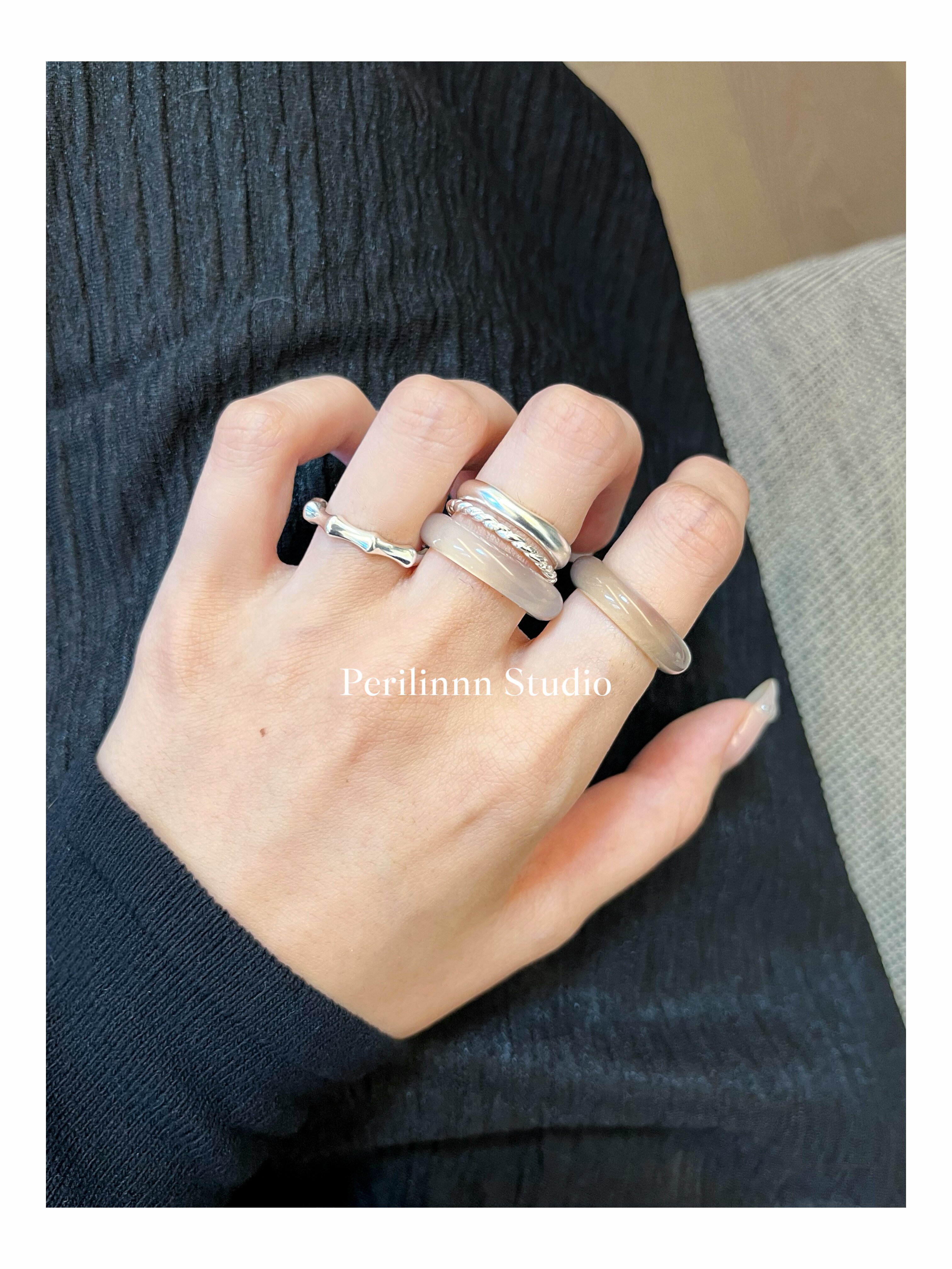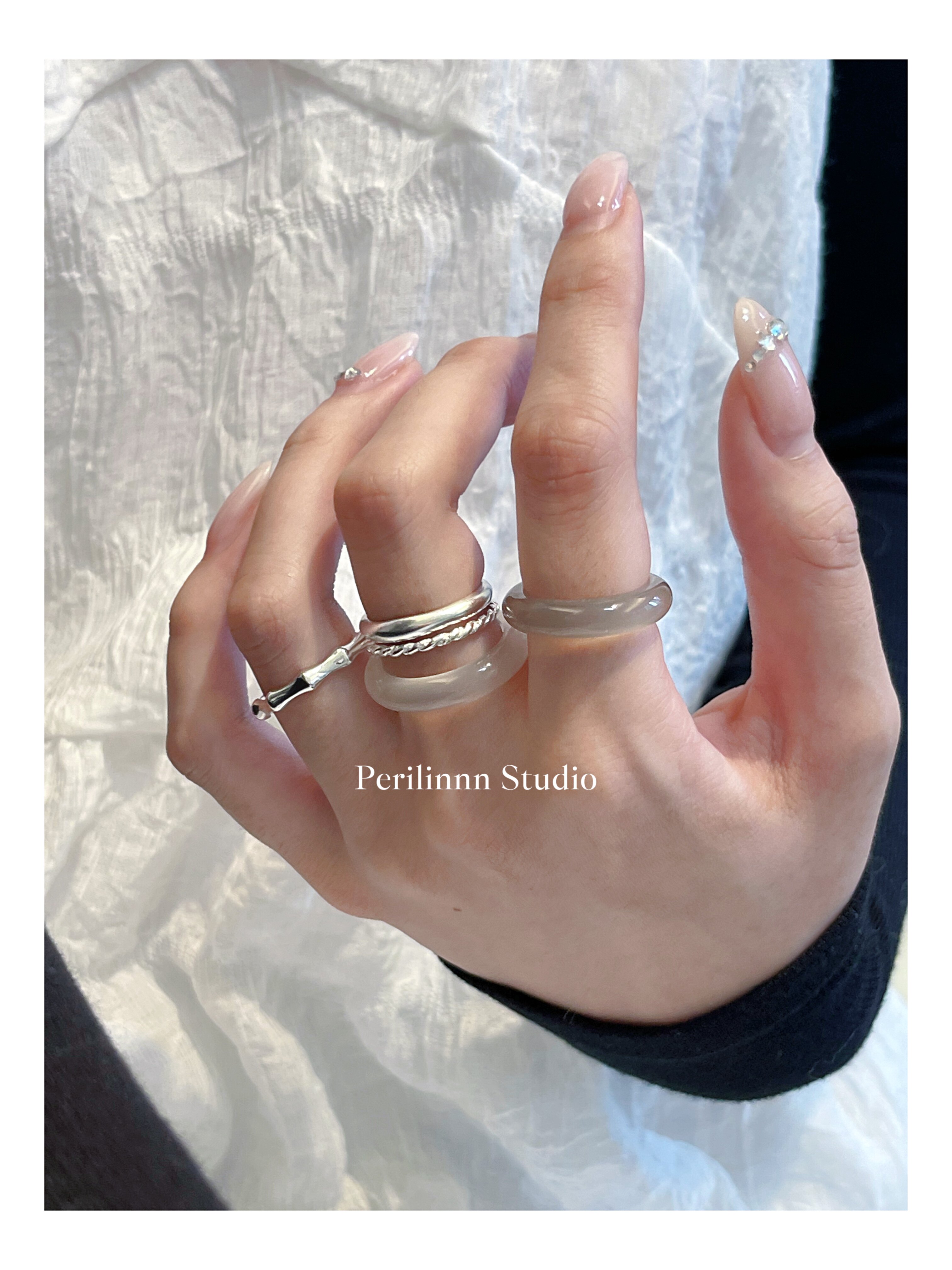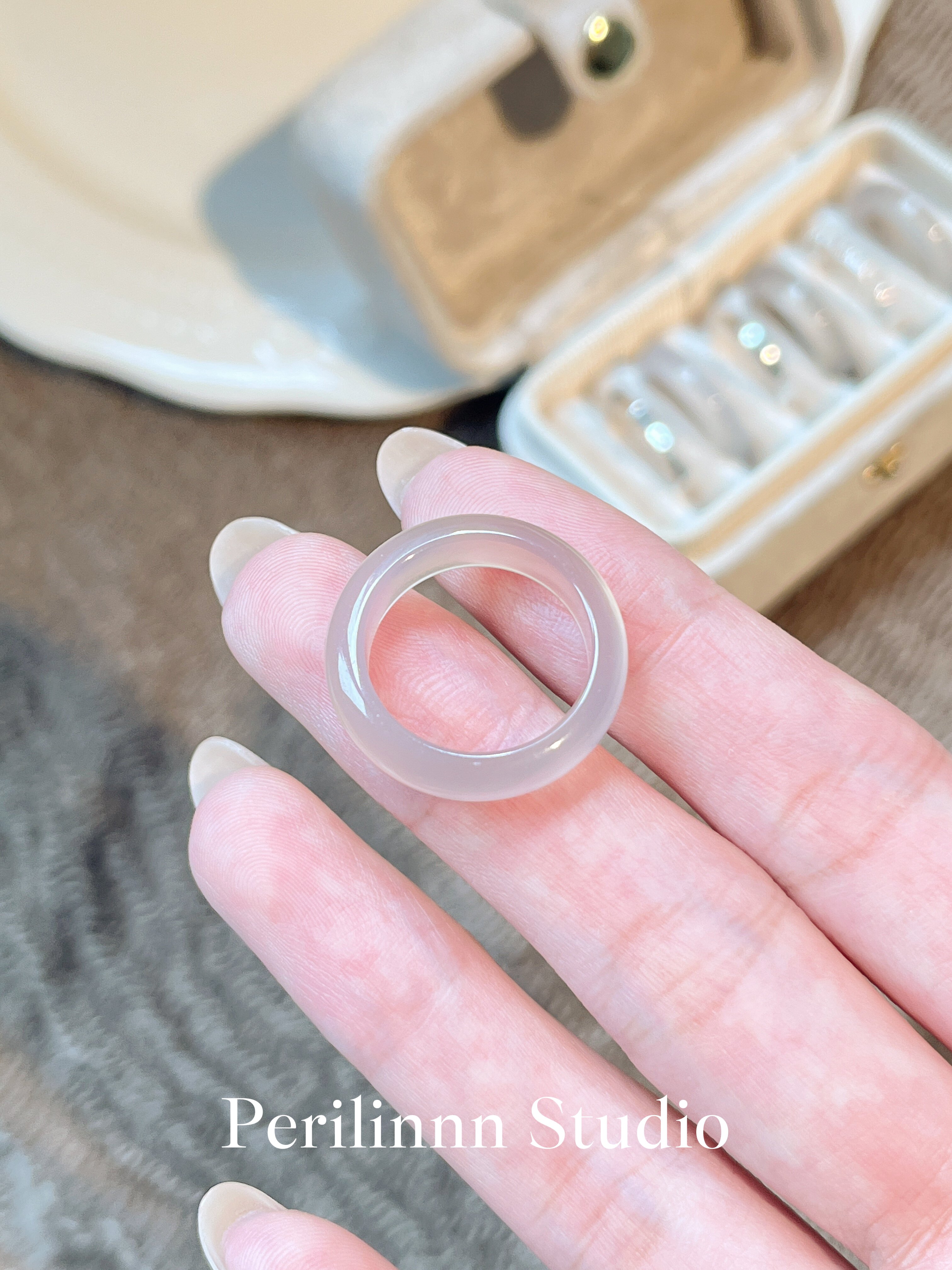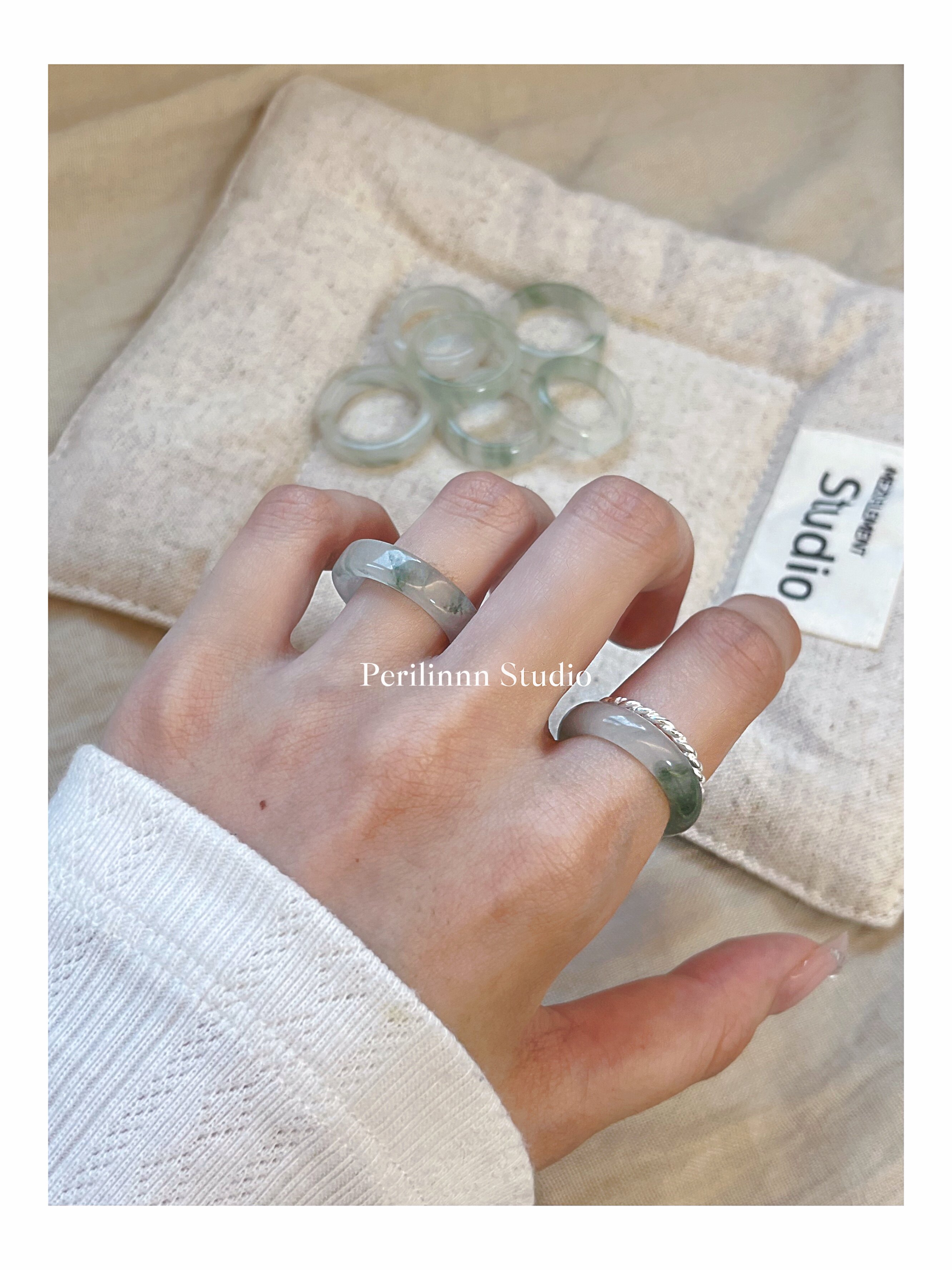 Perilinnn Agate Ring Collection Natural Stone Ice Type Ring Jade Couple Stackable Gift New Chinese Style