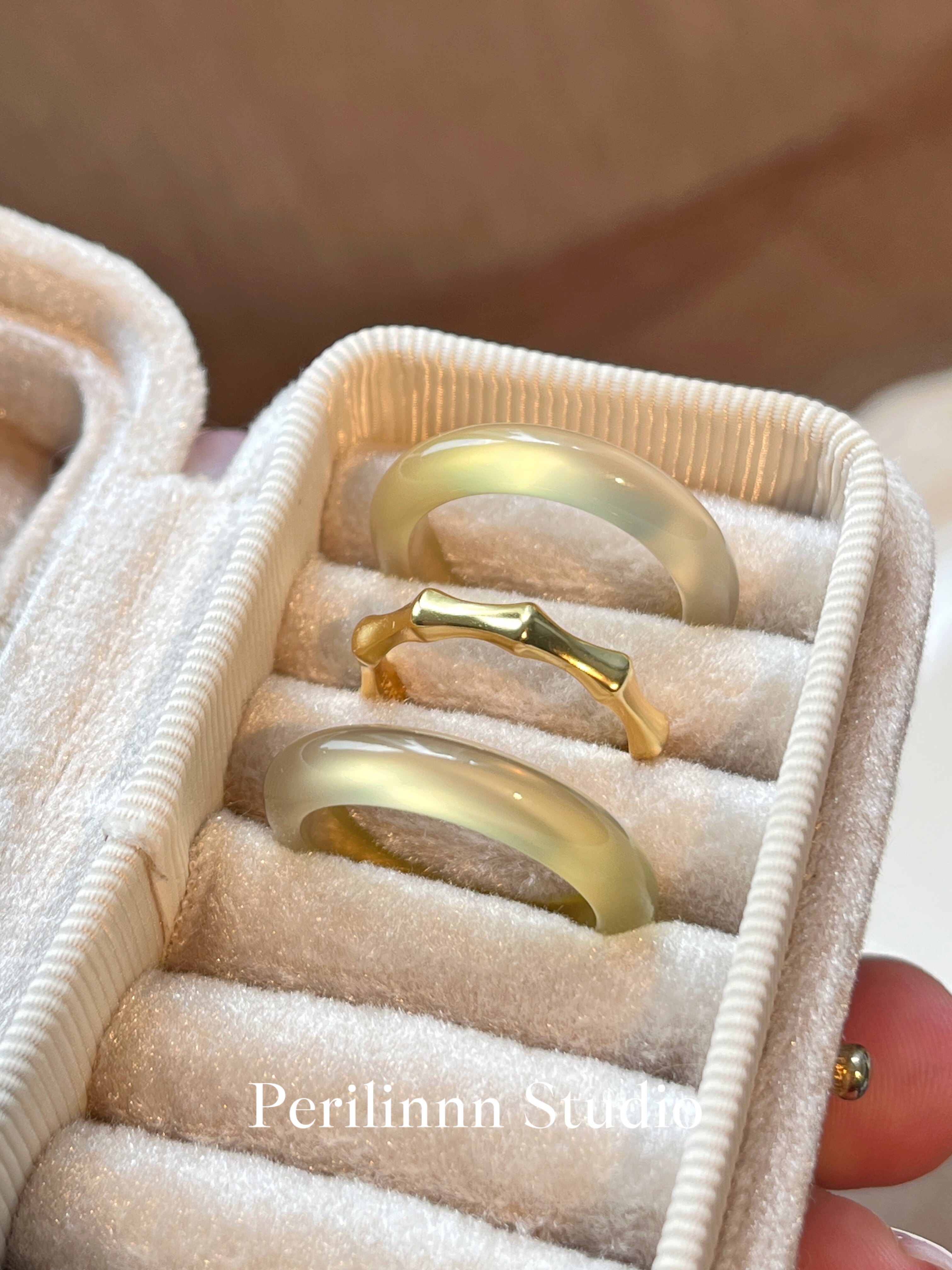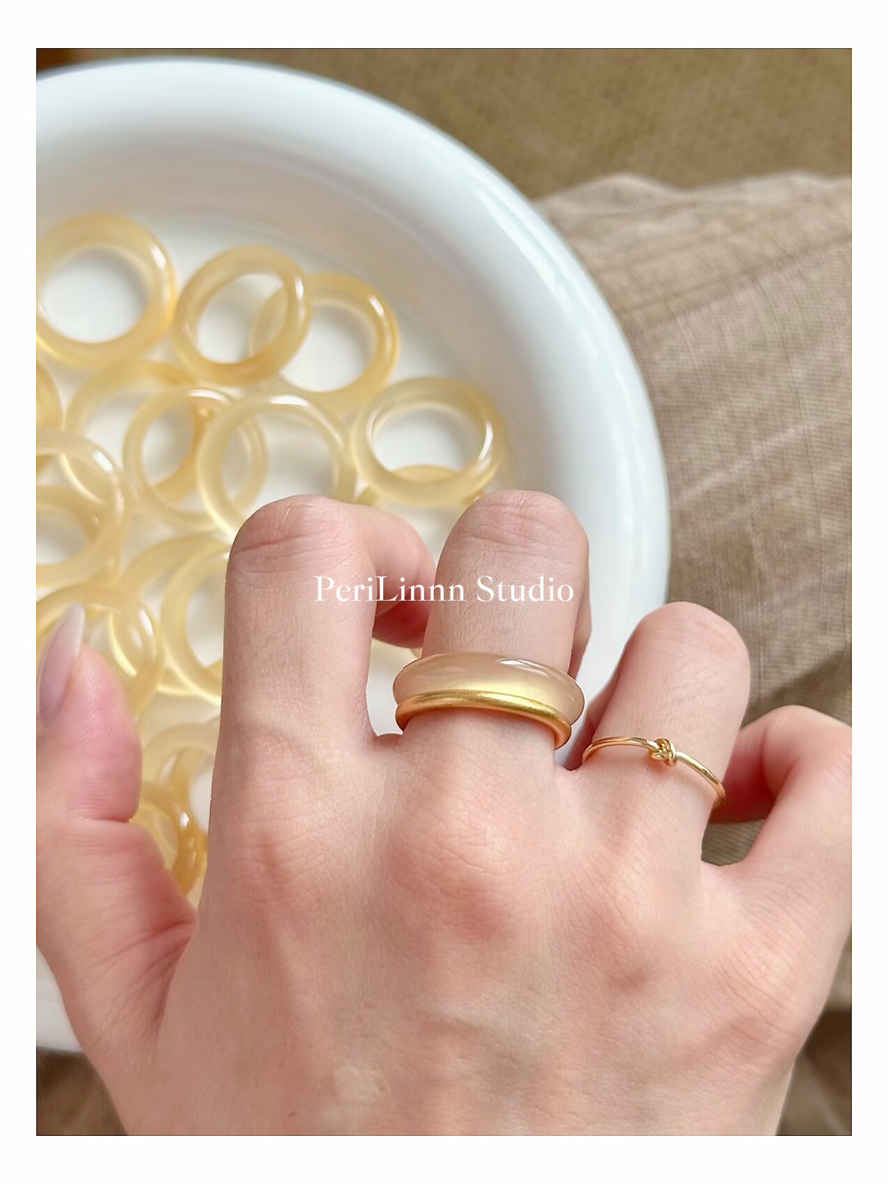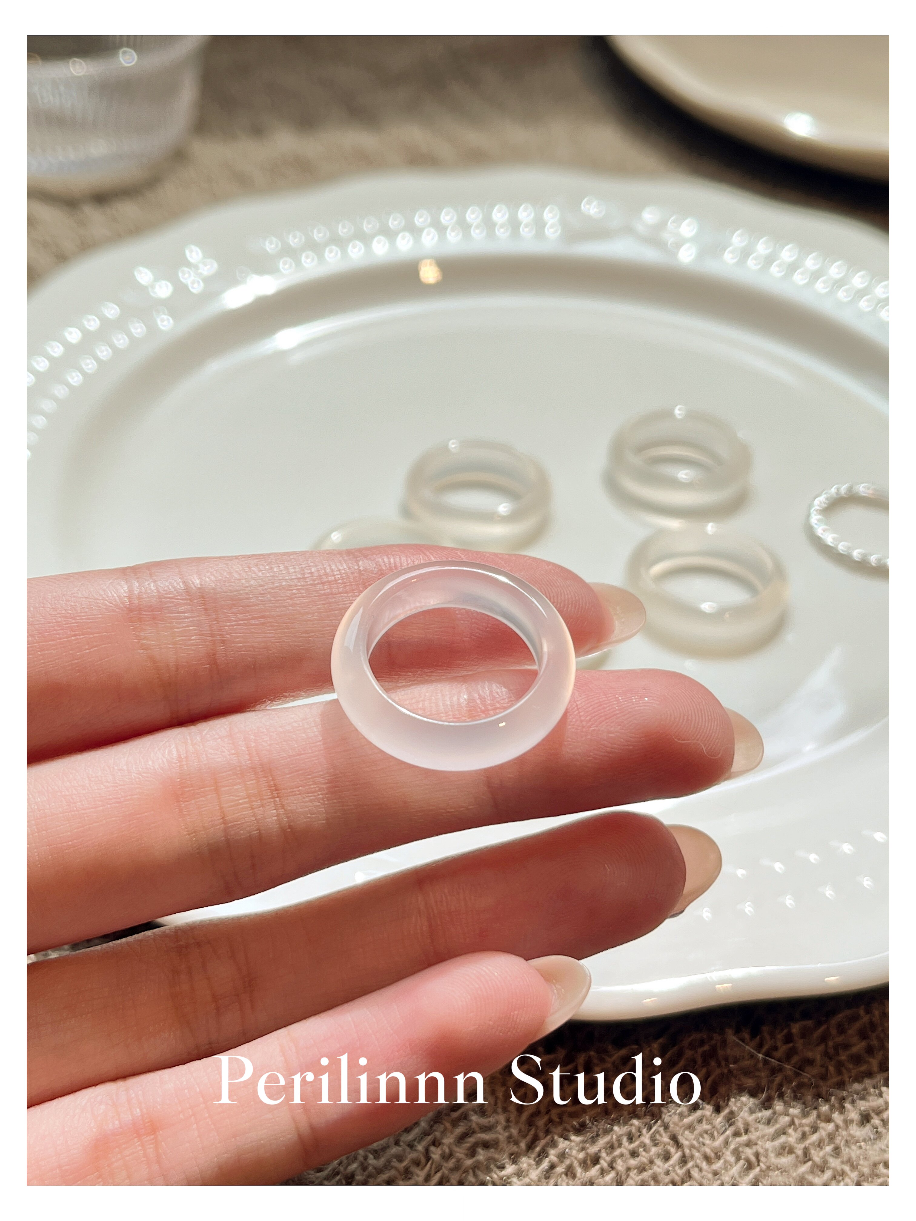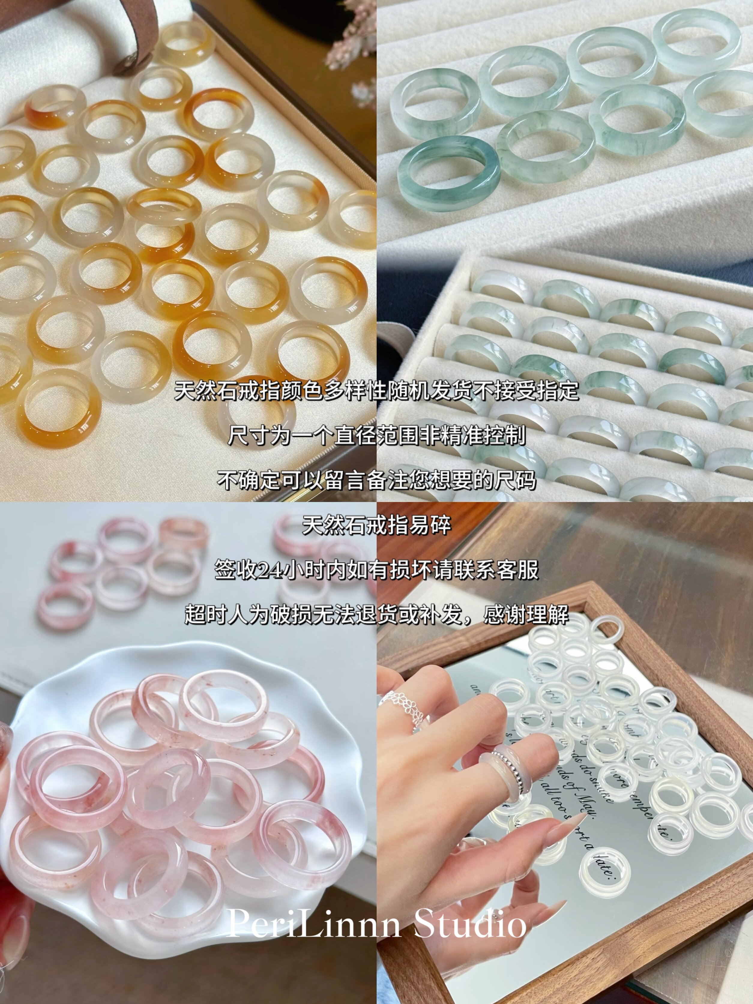 Perilinnn Agate Ring Collection Natural Stone Ice Type Ring Jade Couple Stackable Gift New Chinese Style