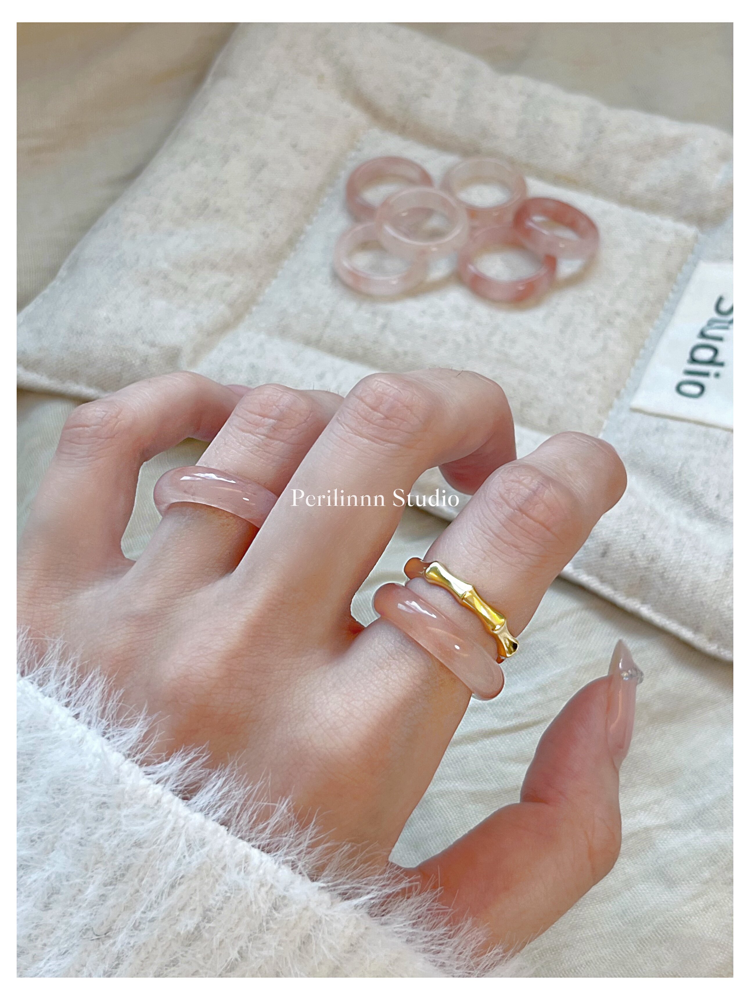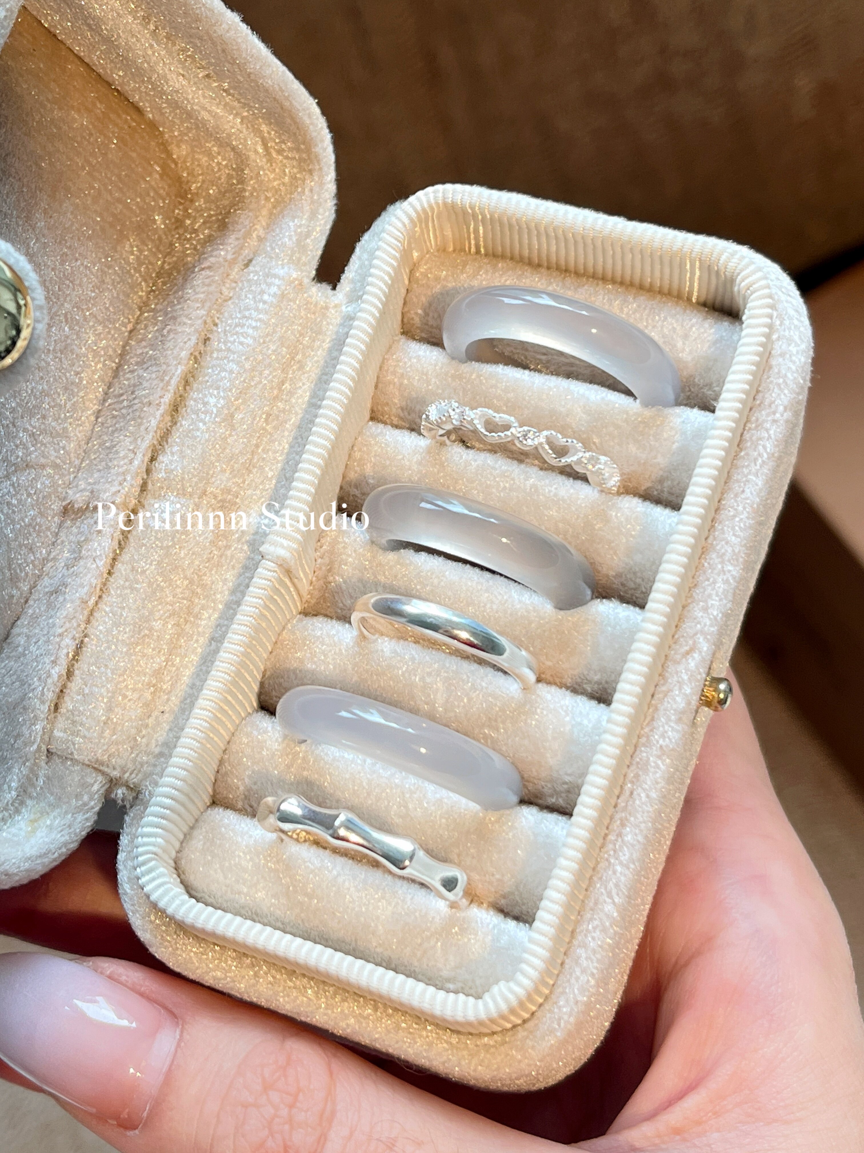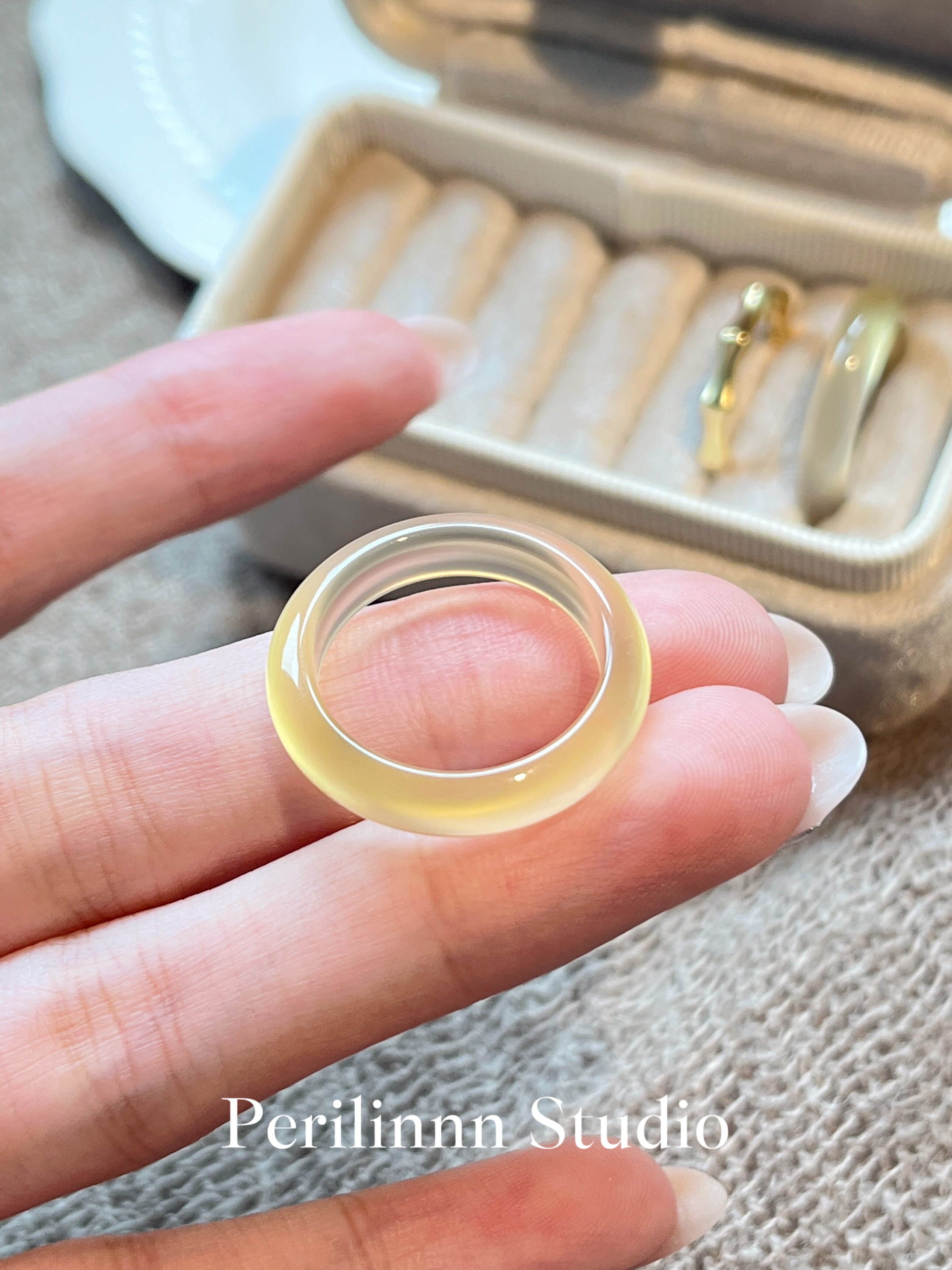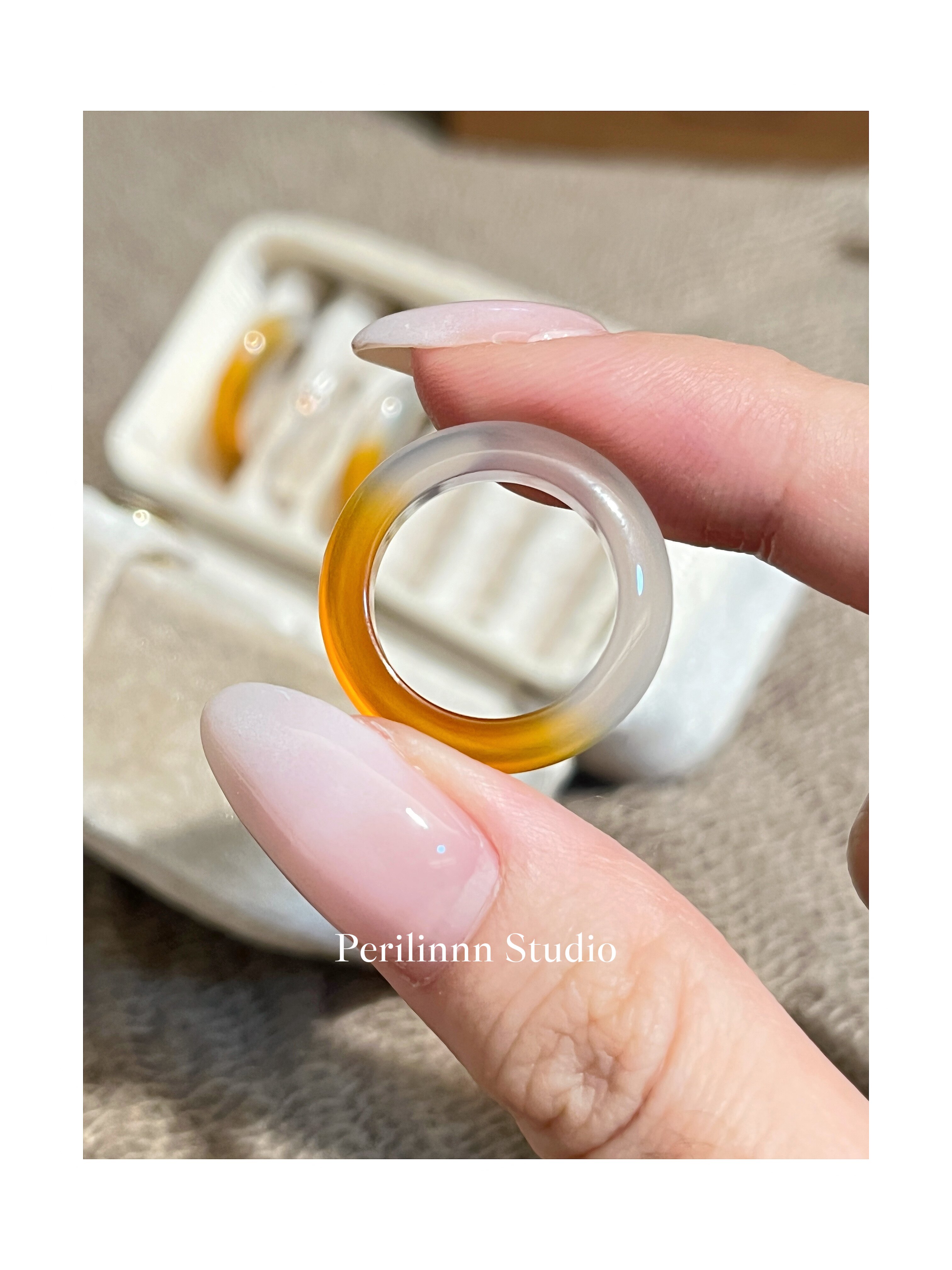 Perilinnn Agate Ring Collection Natural Stone Ice Type Ring Jade Couple Stackable Gift New Chinese Style