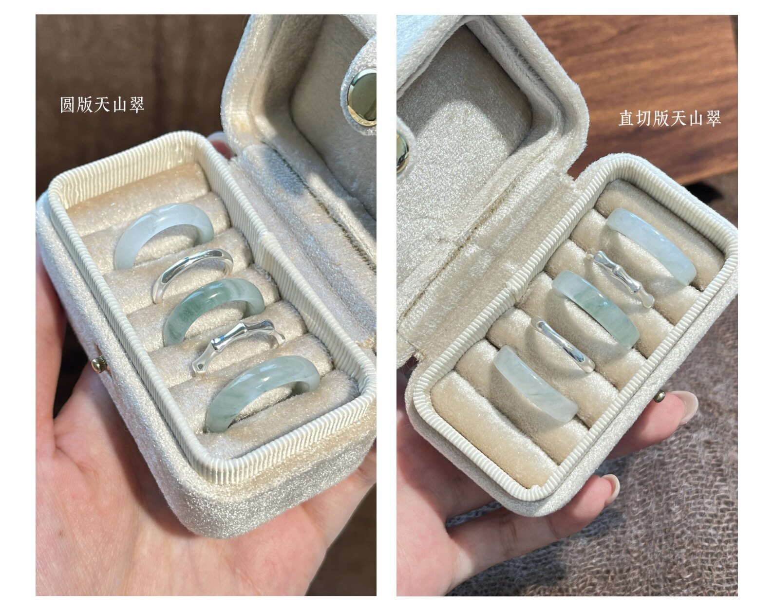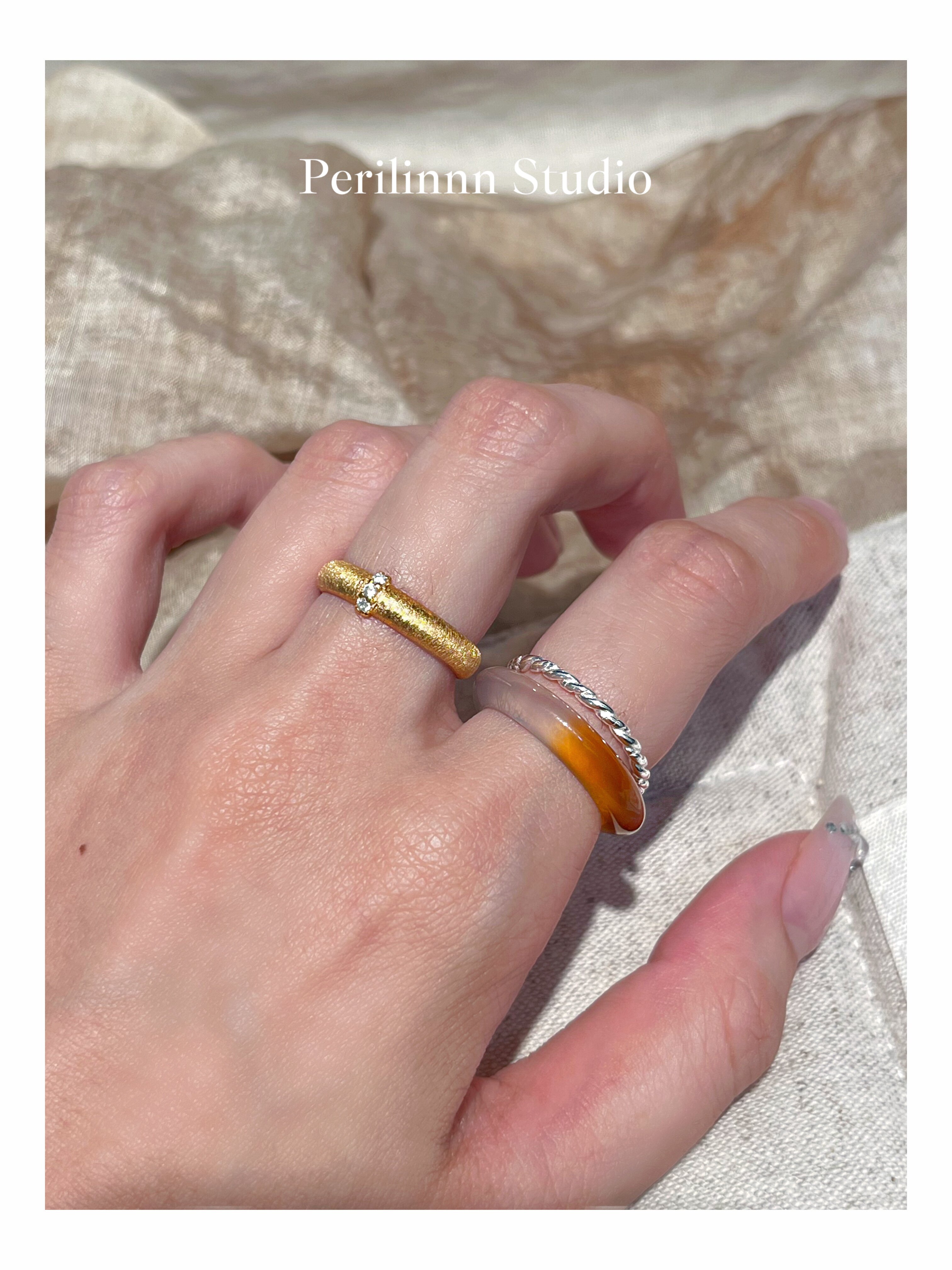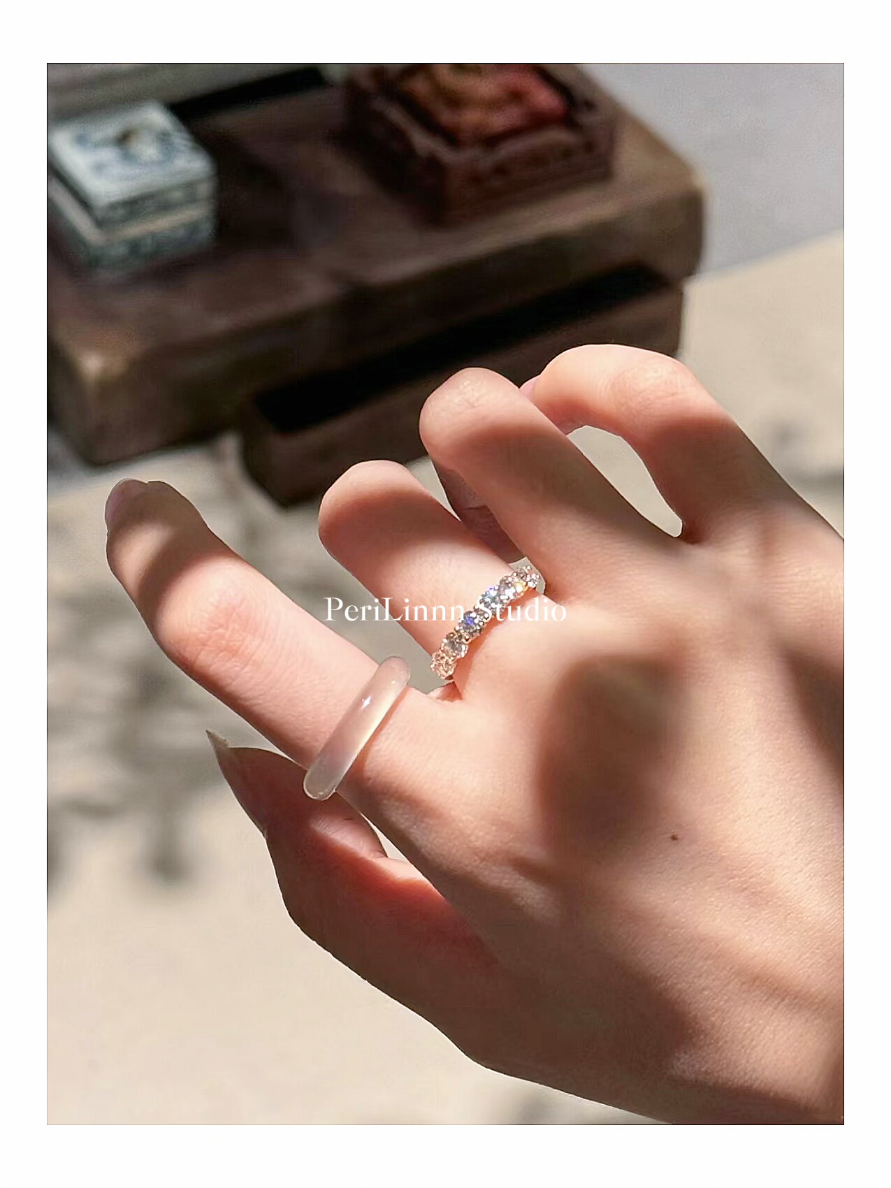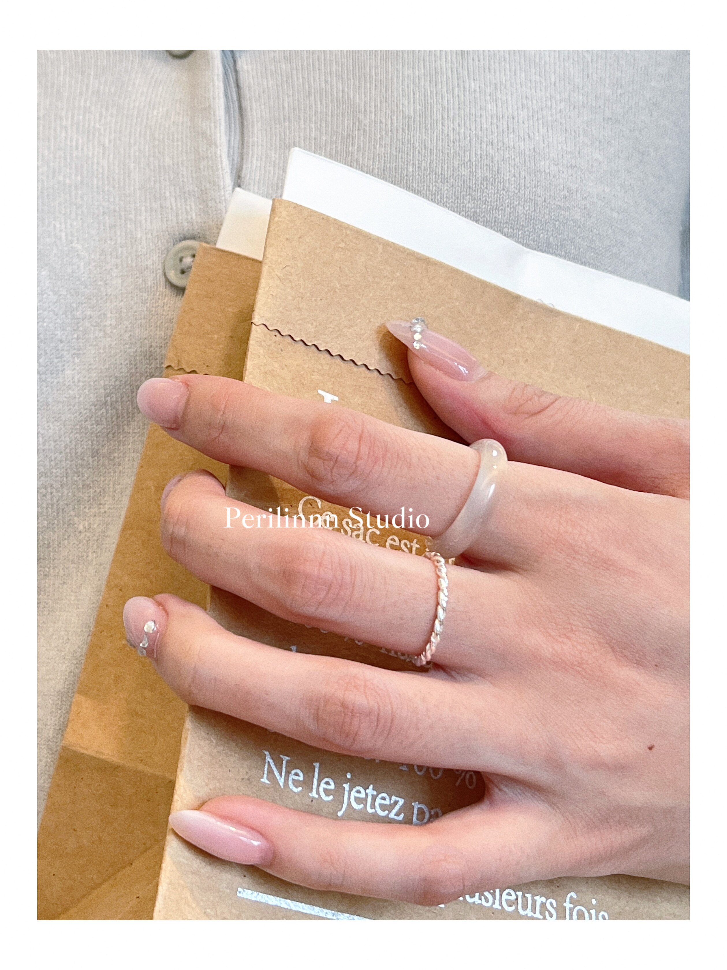 Perilinnn Agate Ring Collection Natural Stone Ice Type Ring Jade Couple Stackable Gift New Chinese Style