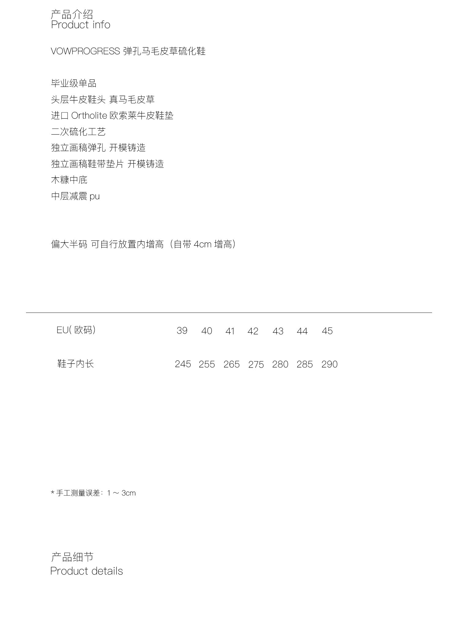 Vowprogress Bullet Hole Horsehair Vulcanized Sneakers 1970S Street Remake Ortholite Insole