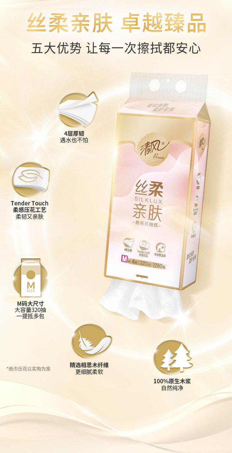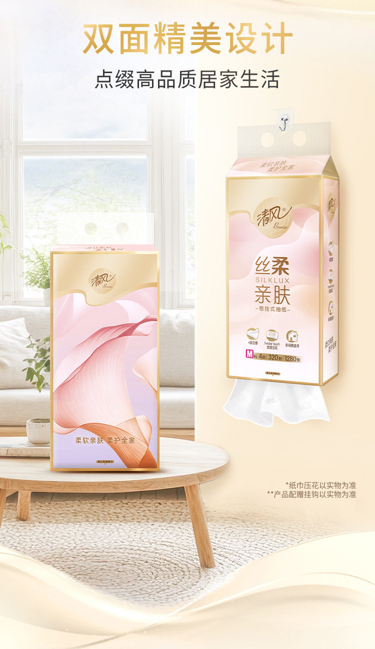 Qingfeng Hanging Tissue Dispenser, Wall-Mounted Toilet Paper Holder, Bg32Msjd Large Pack, 4-Ply, 320 Sheets/Pack