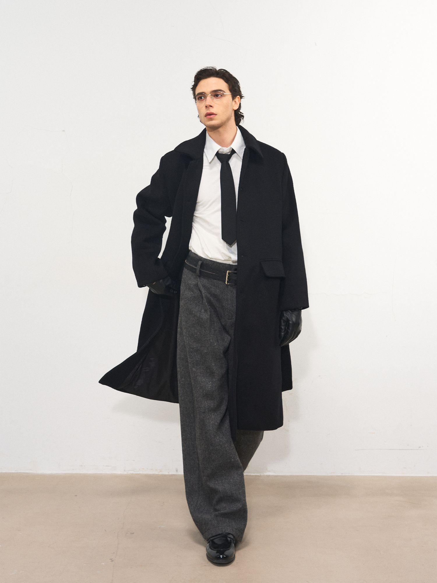 Manuscript Hunting-Style Wool Coat 50% Australian Wool Winter Long Thick Padded Shoulder Lapel Regular Shoulder Coat