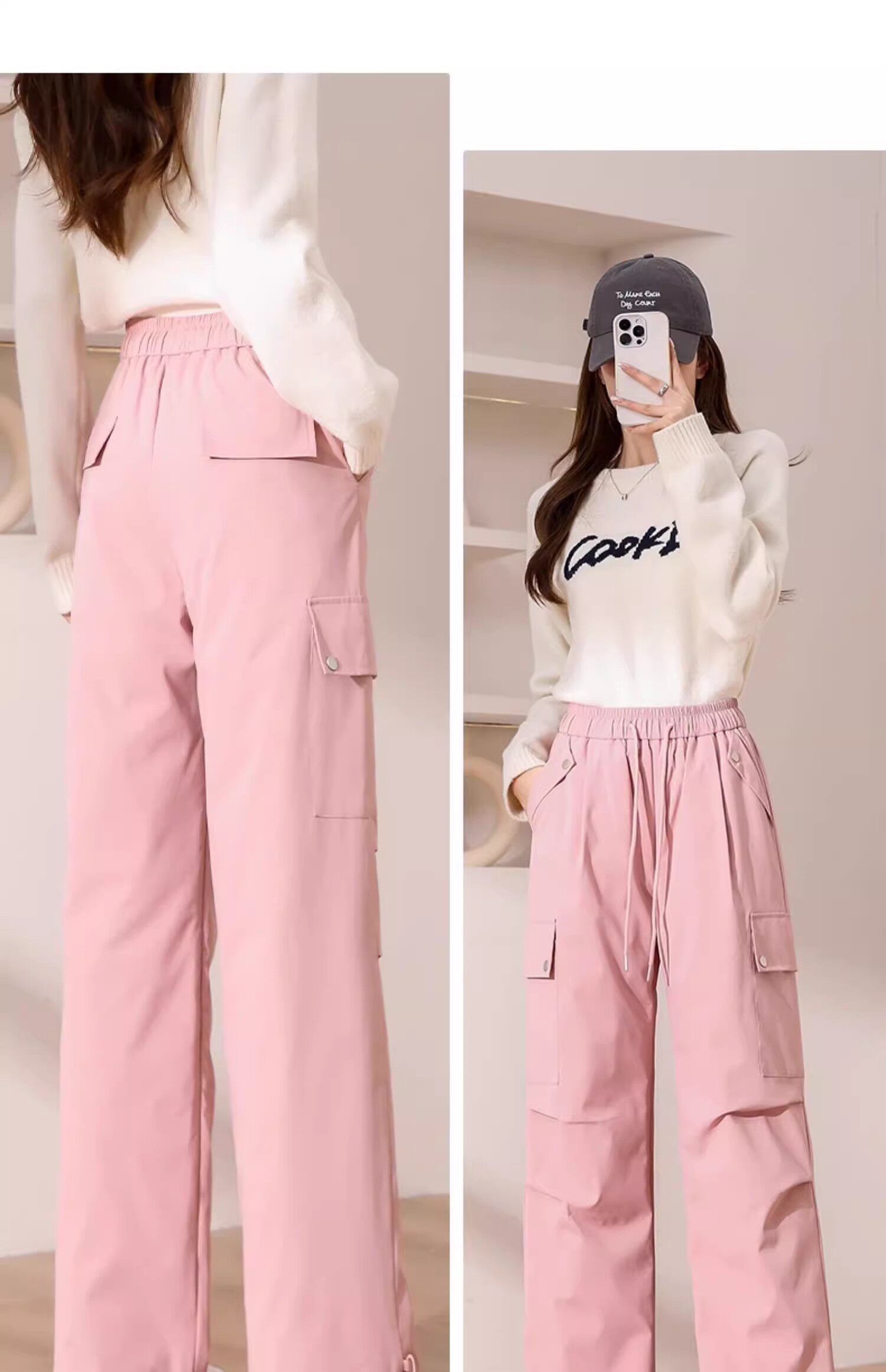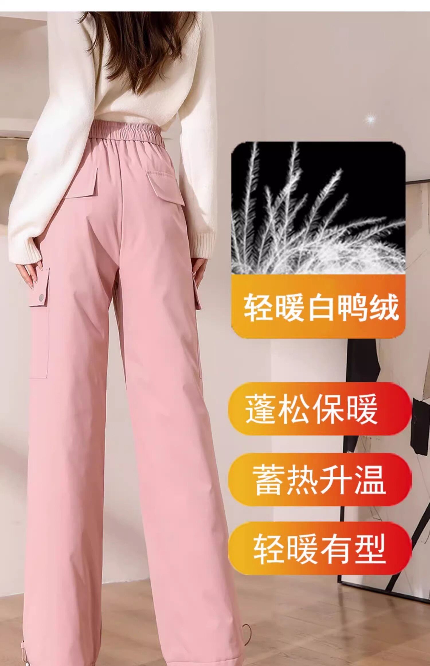German Workwear down Pants for Women, New Winter Outerwear, Suitable for Extreme Cold Temperatures Below -40 Degrees in Northeast China, Thickened and Fleece-Lined, Straight-Leg Cotton Pants