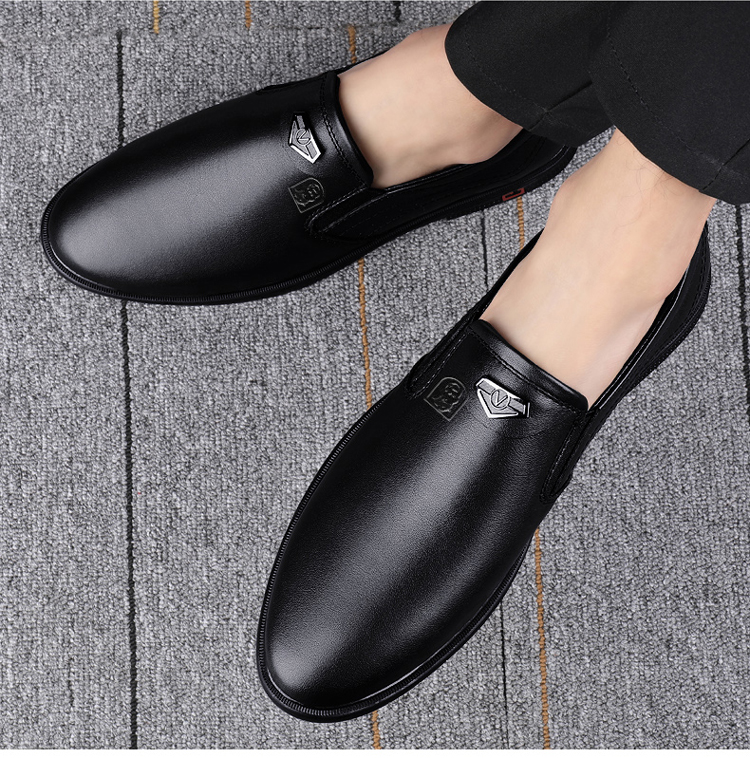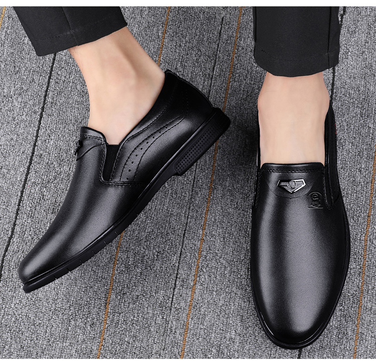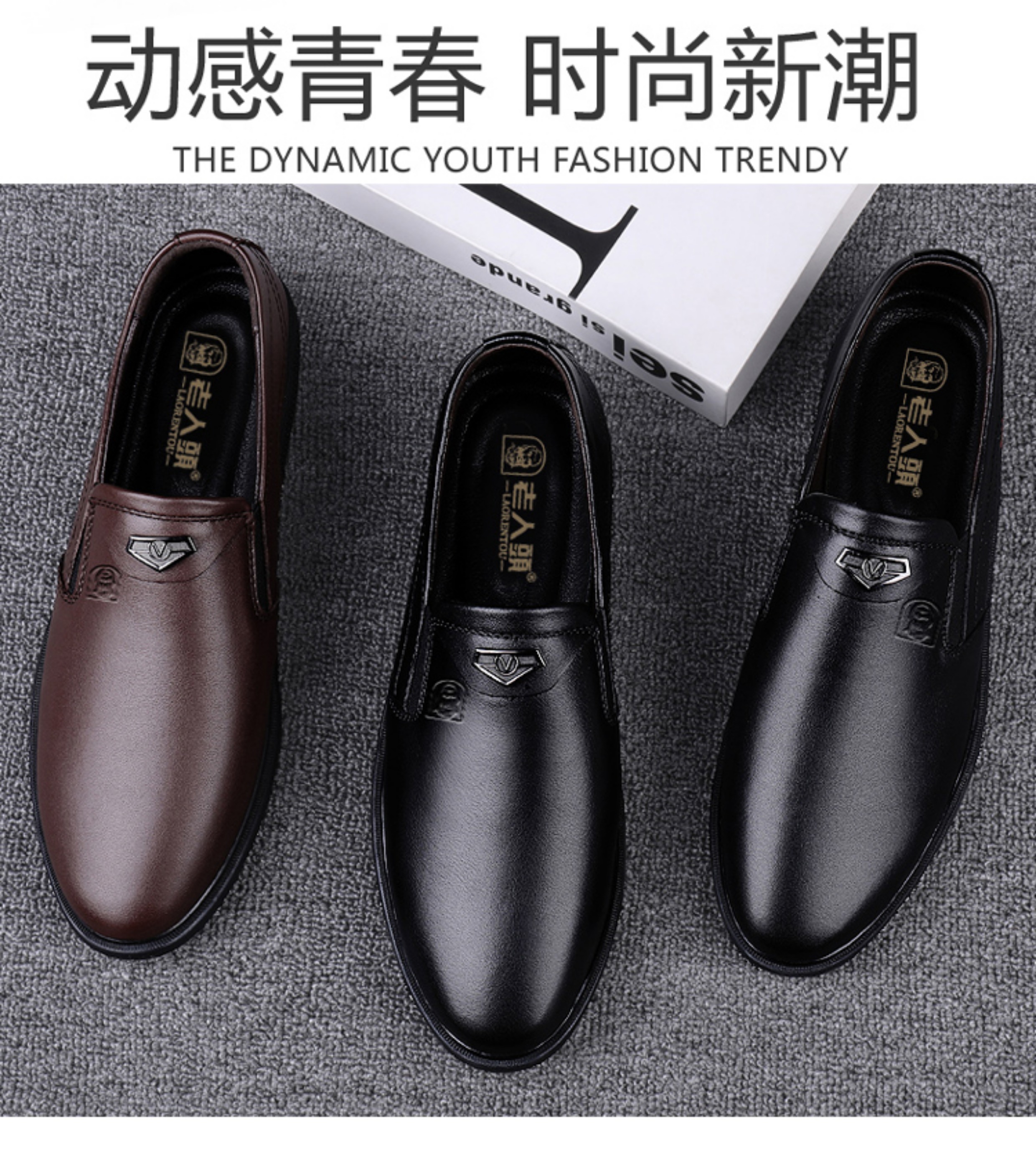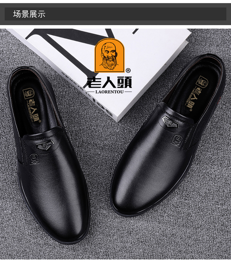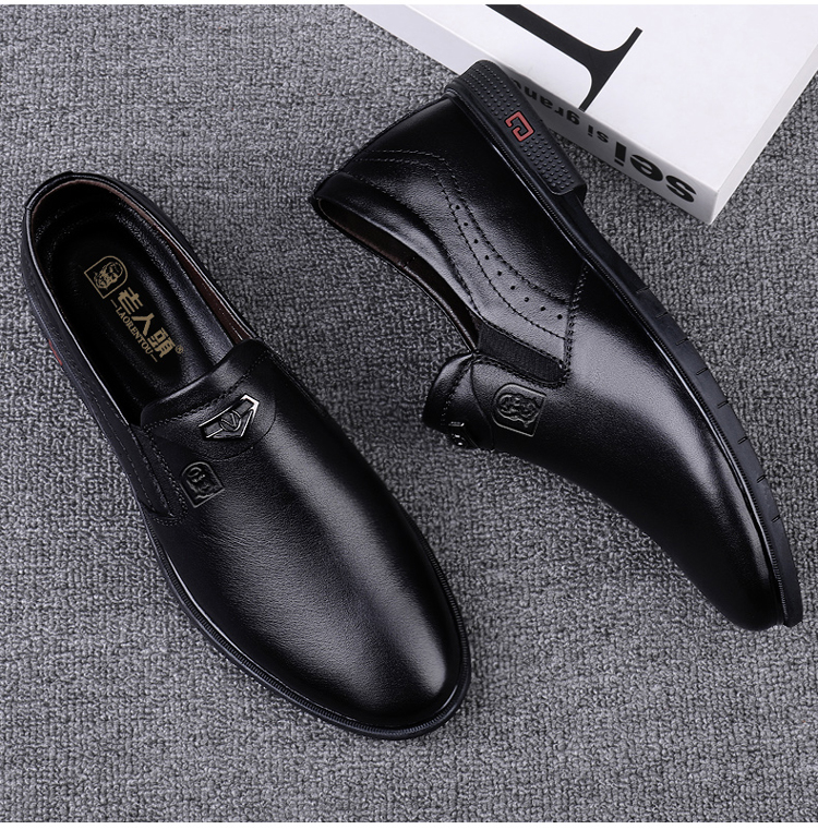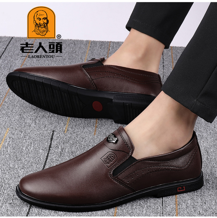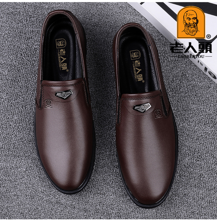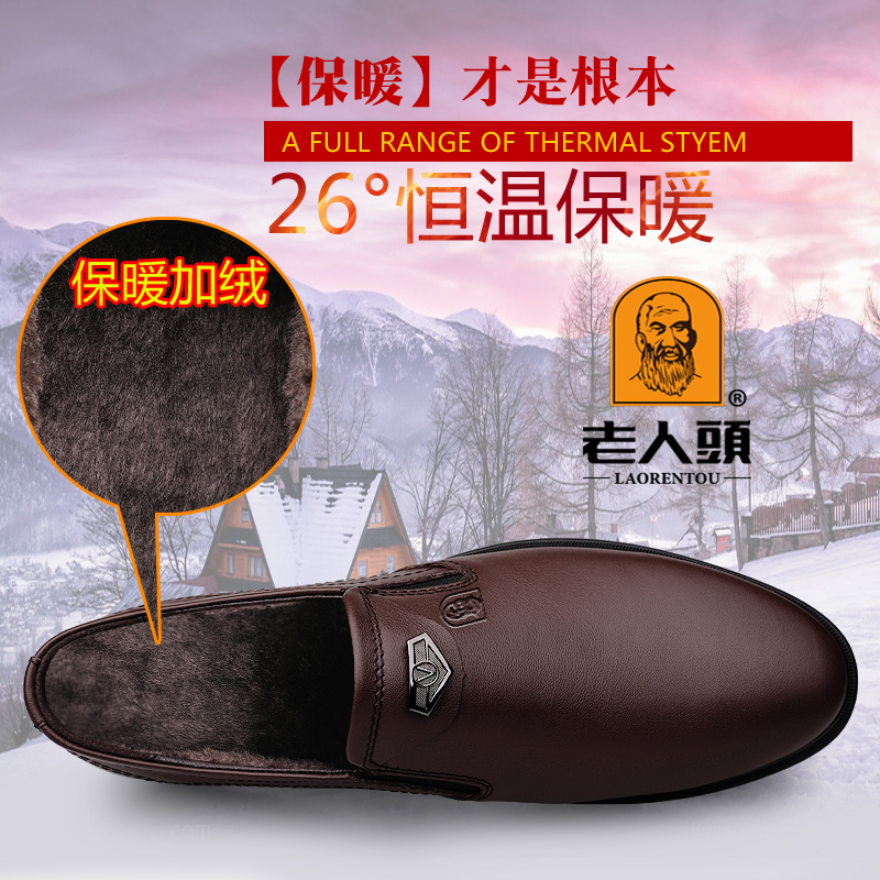 Old Man Head Genuine Leather Men's Shoes 2025 Autumn/Winter New Style Fleece-Lined Warm Business Formal Casual Slip-On Dad Shoes