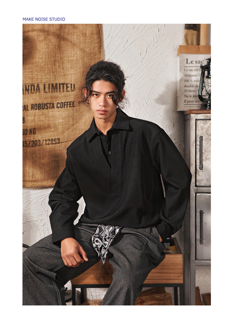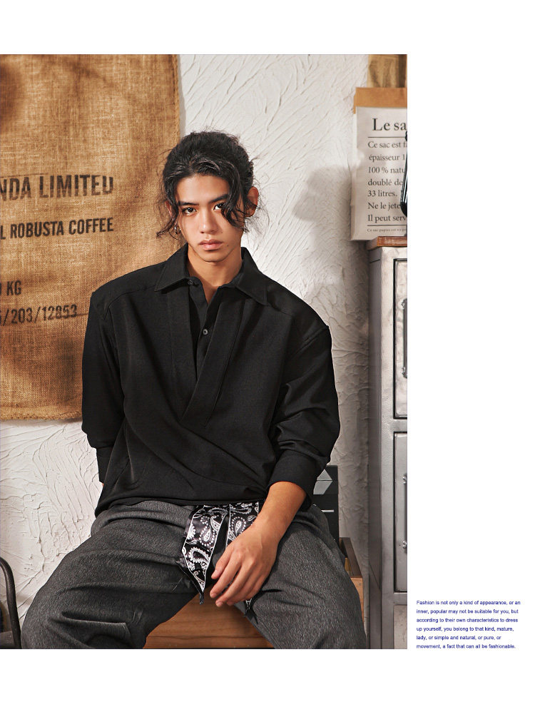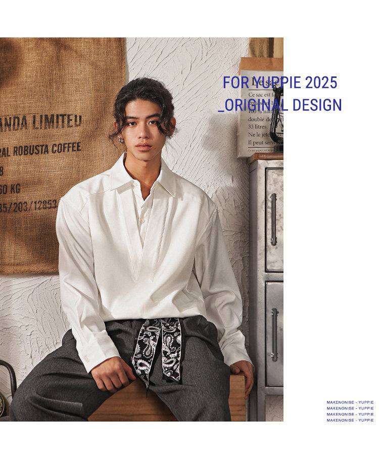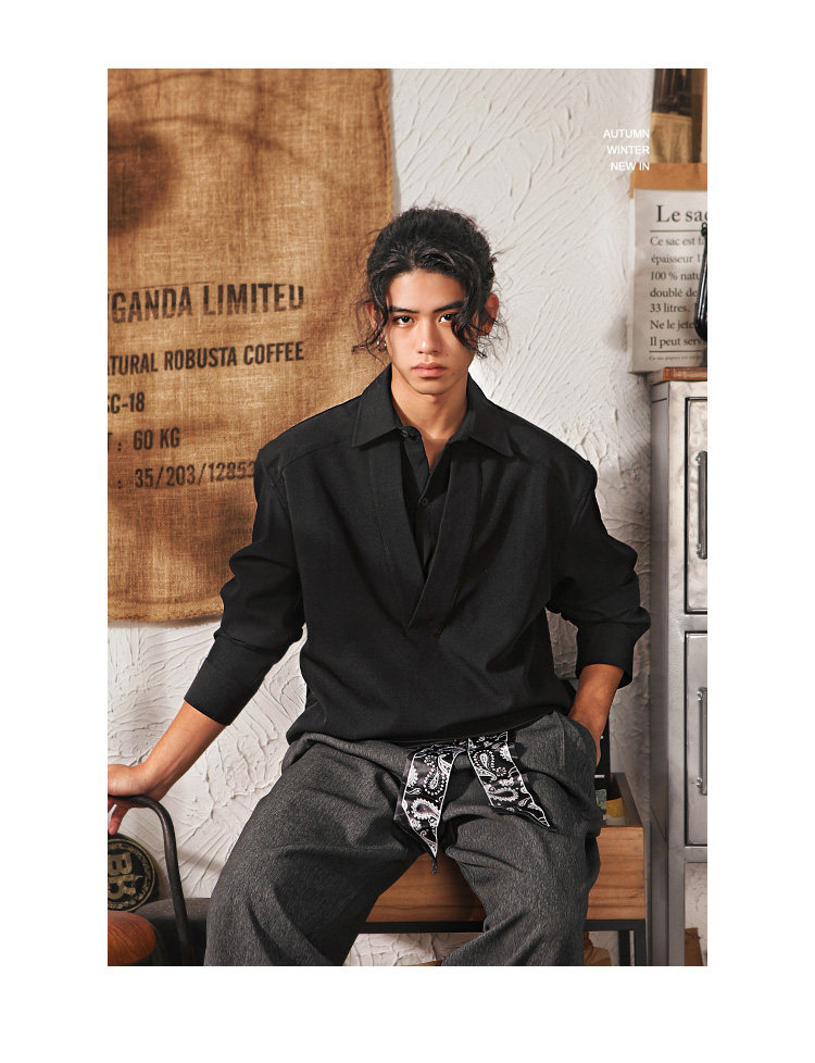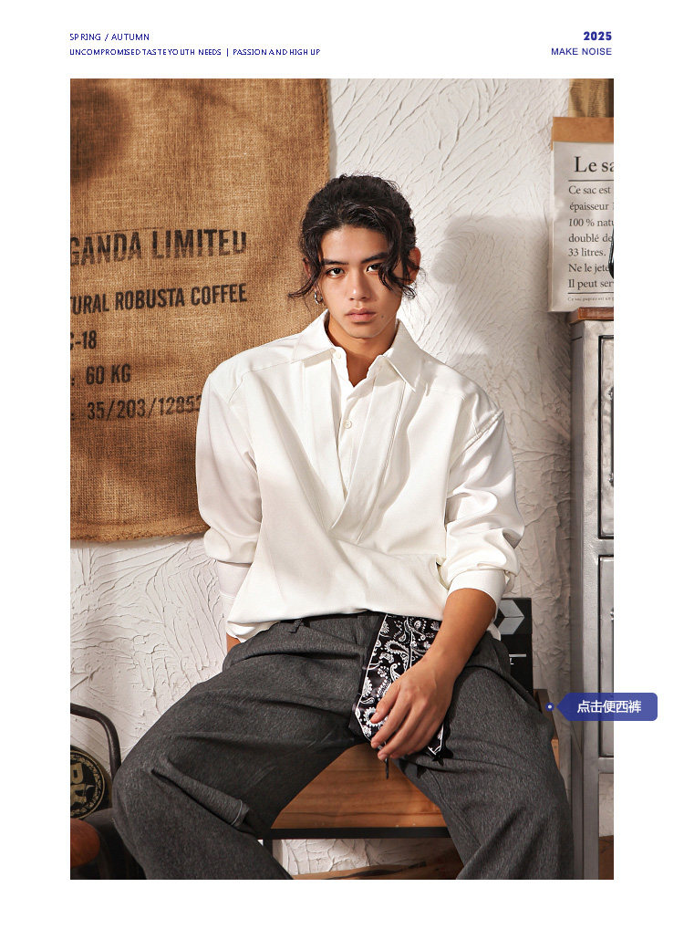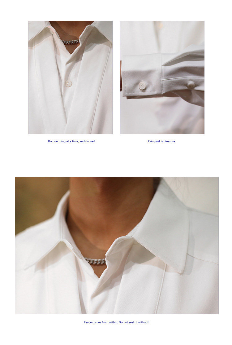 Japanese Retro Fake Two-Piece White Long-Sleeve Shirt for Men, Spring and Autumn Style, Trendy Brand, Loose Fit, High-End Design Shirt Jacket