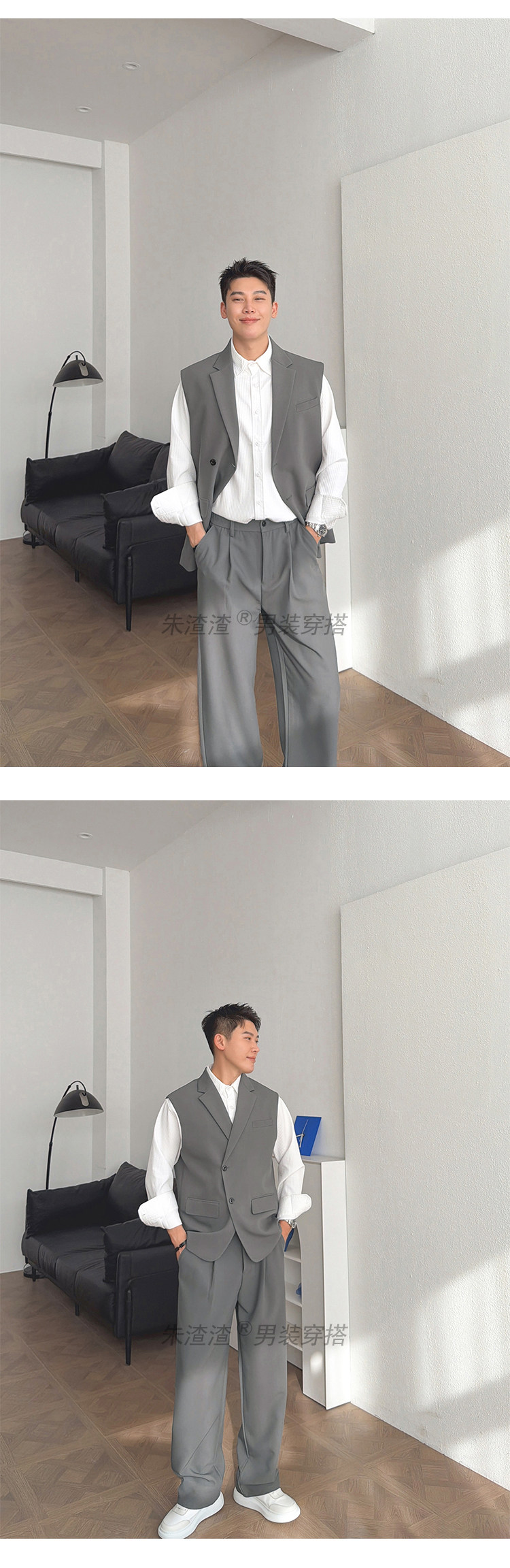 西装裤采用直筒微阔版型,裤长恰到好处,既能遮盖腿型短板,