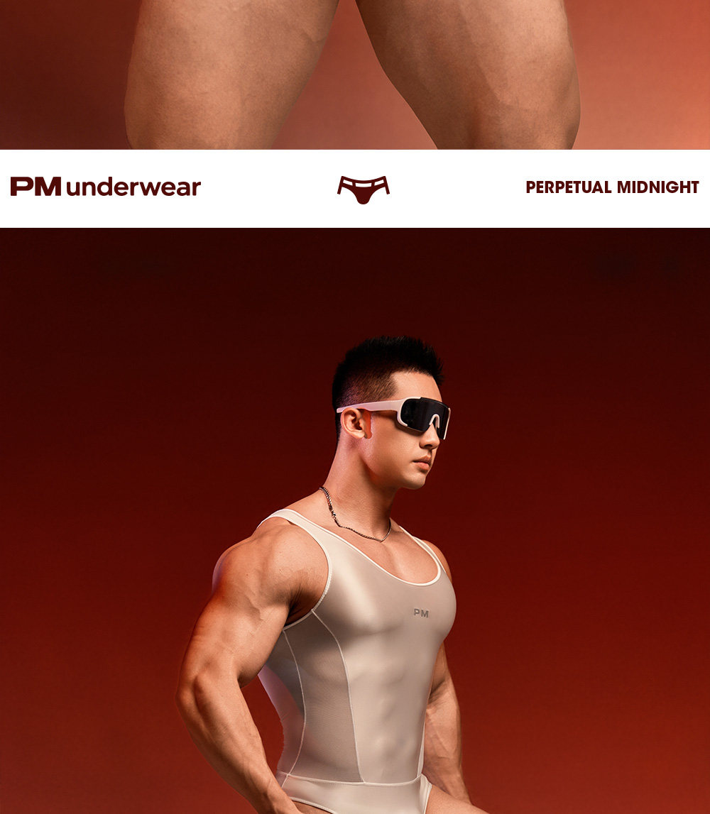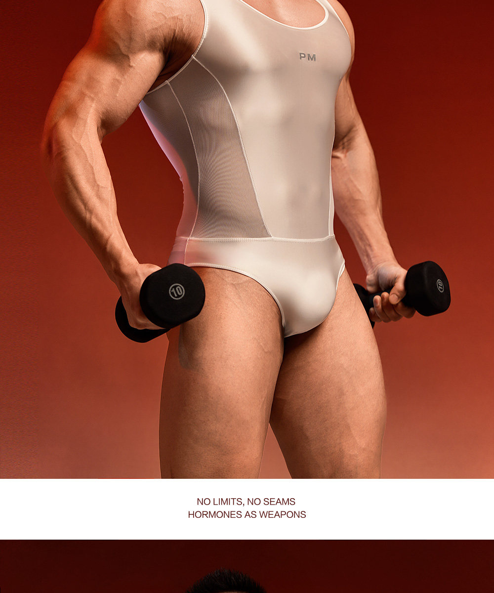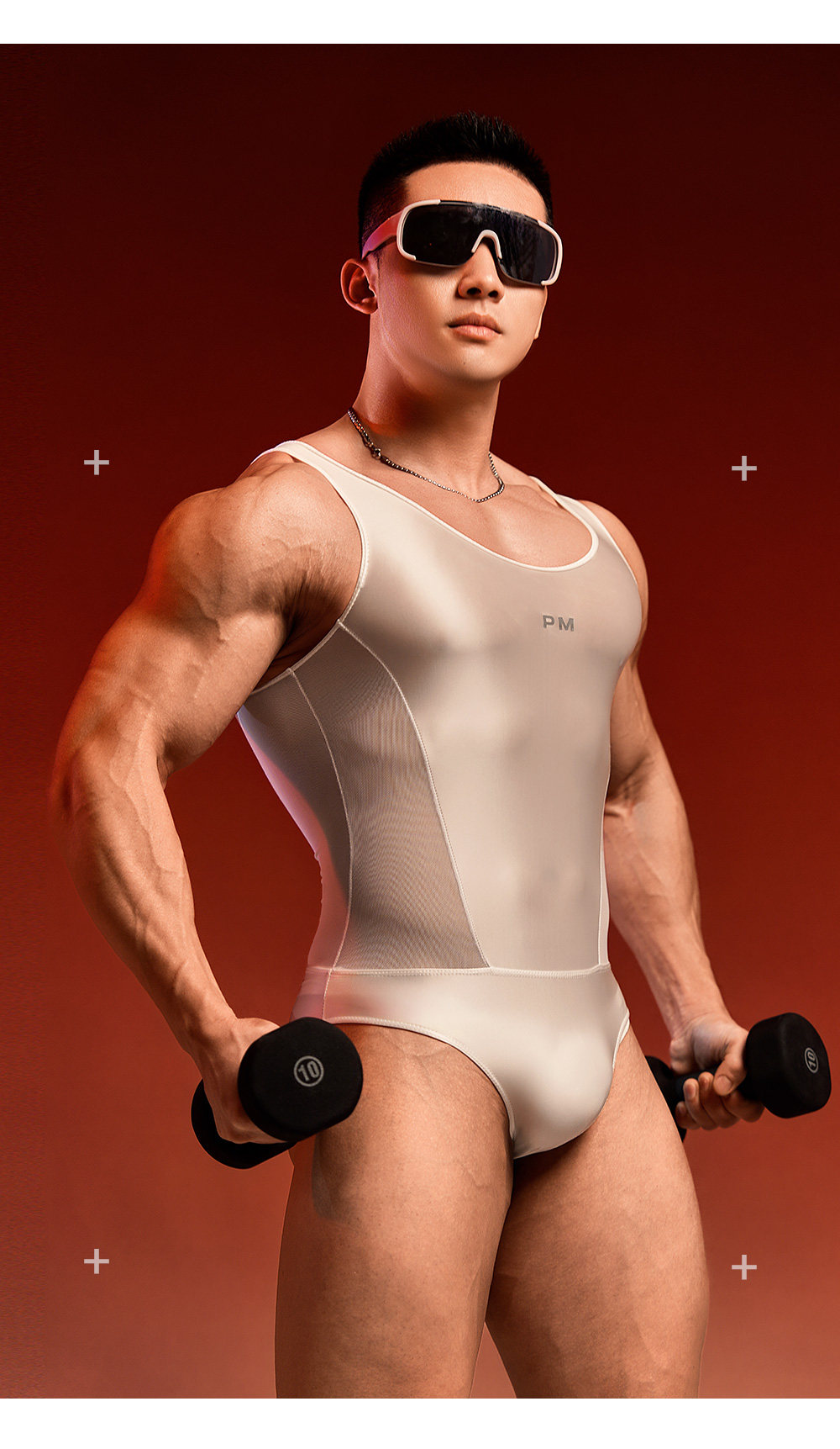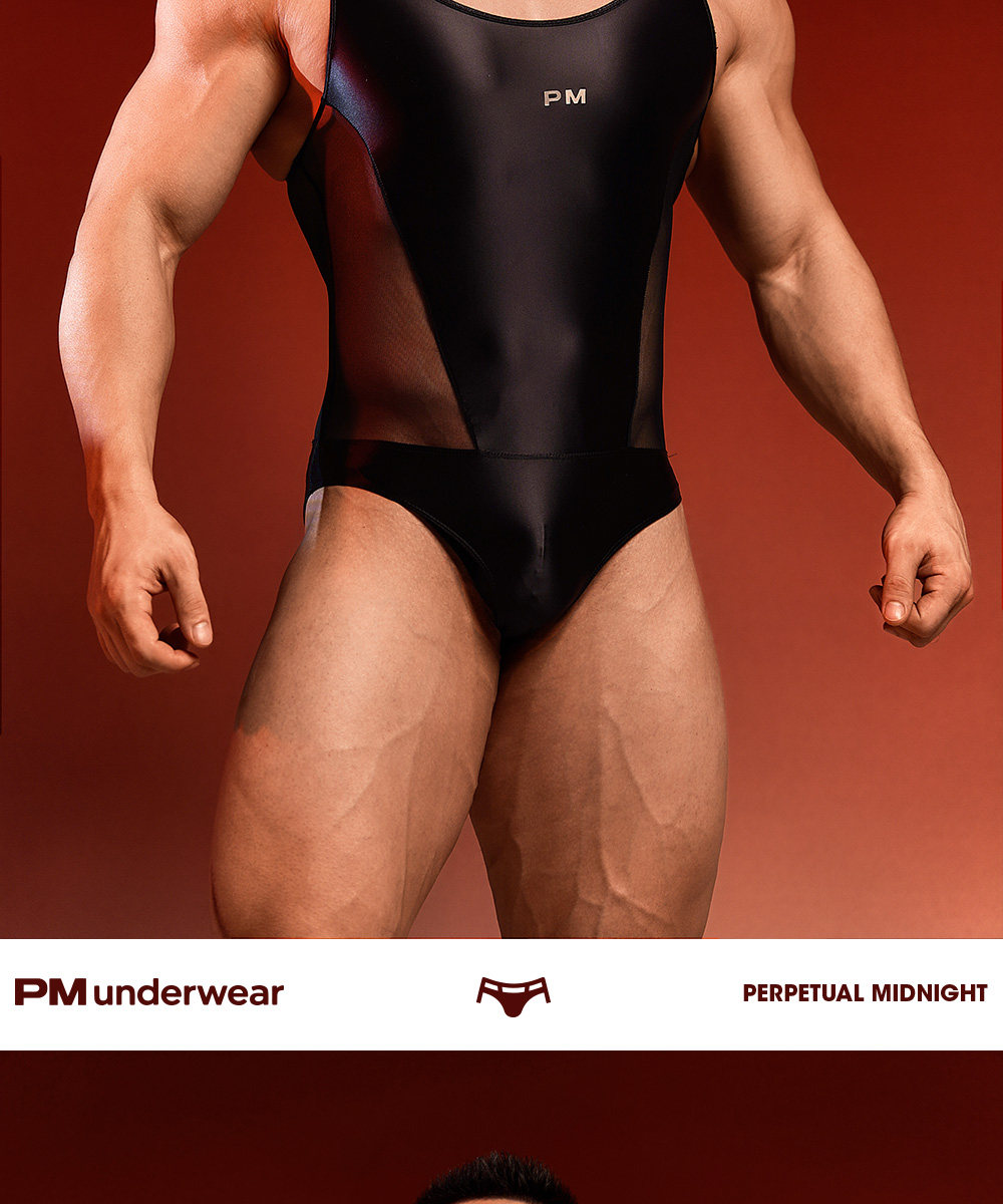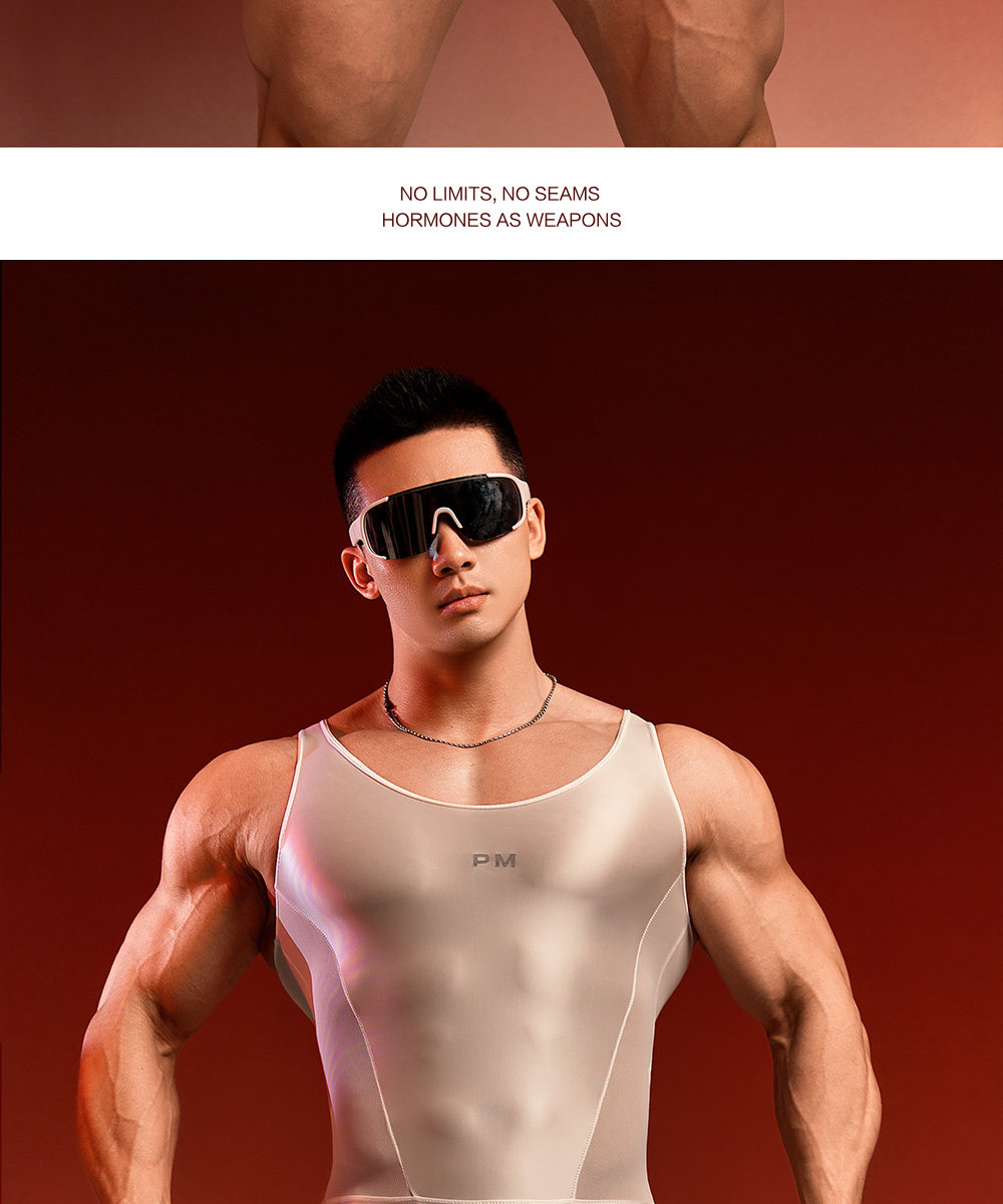 Pm Midnight Hour Sexy Sleeveless See-Through Bodysuit for Men, High Elasticity, Muscular, Macho, Body-Shaping, Tempting Tight-Fitting Top