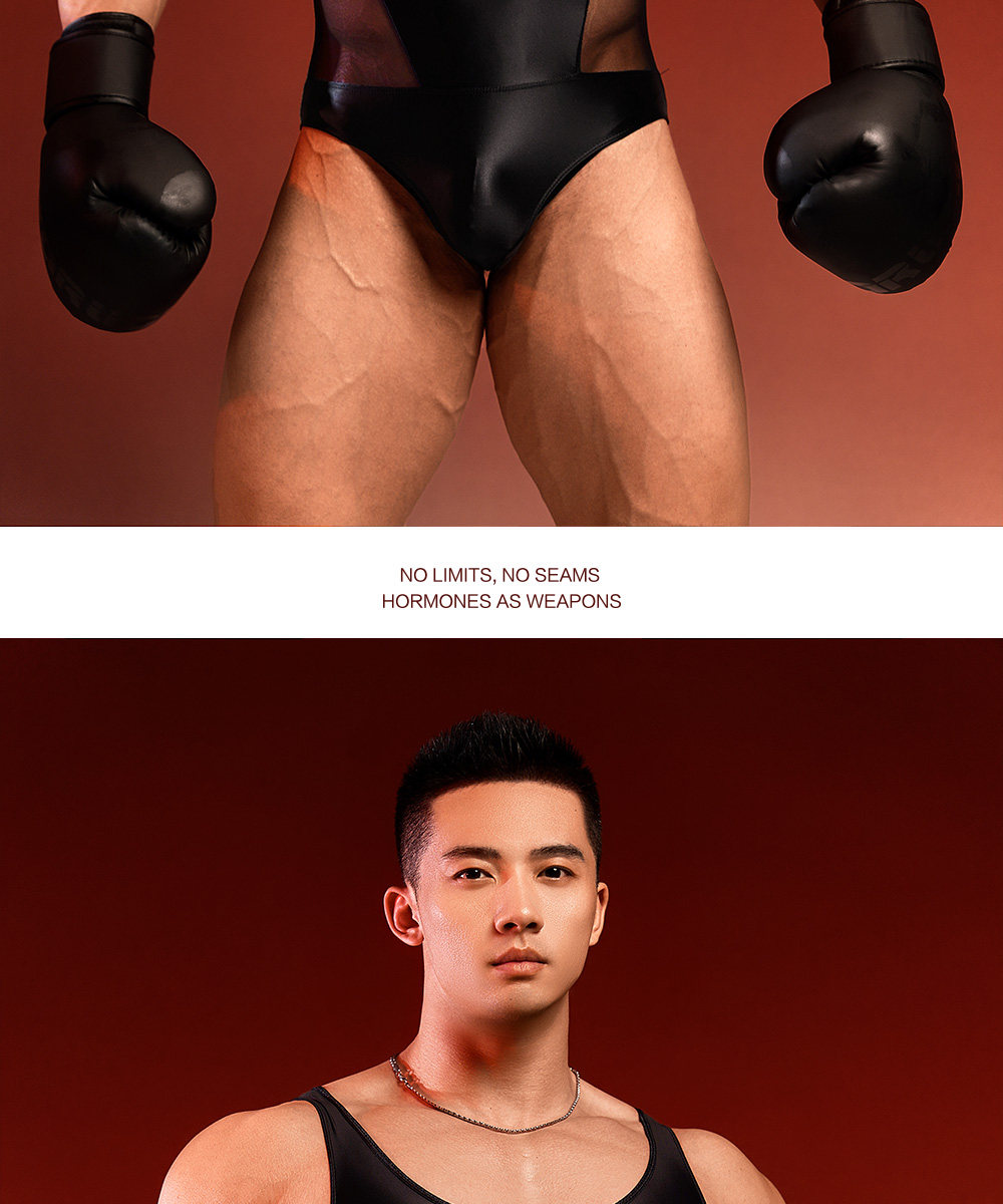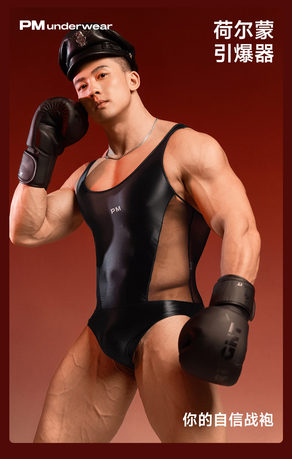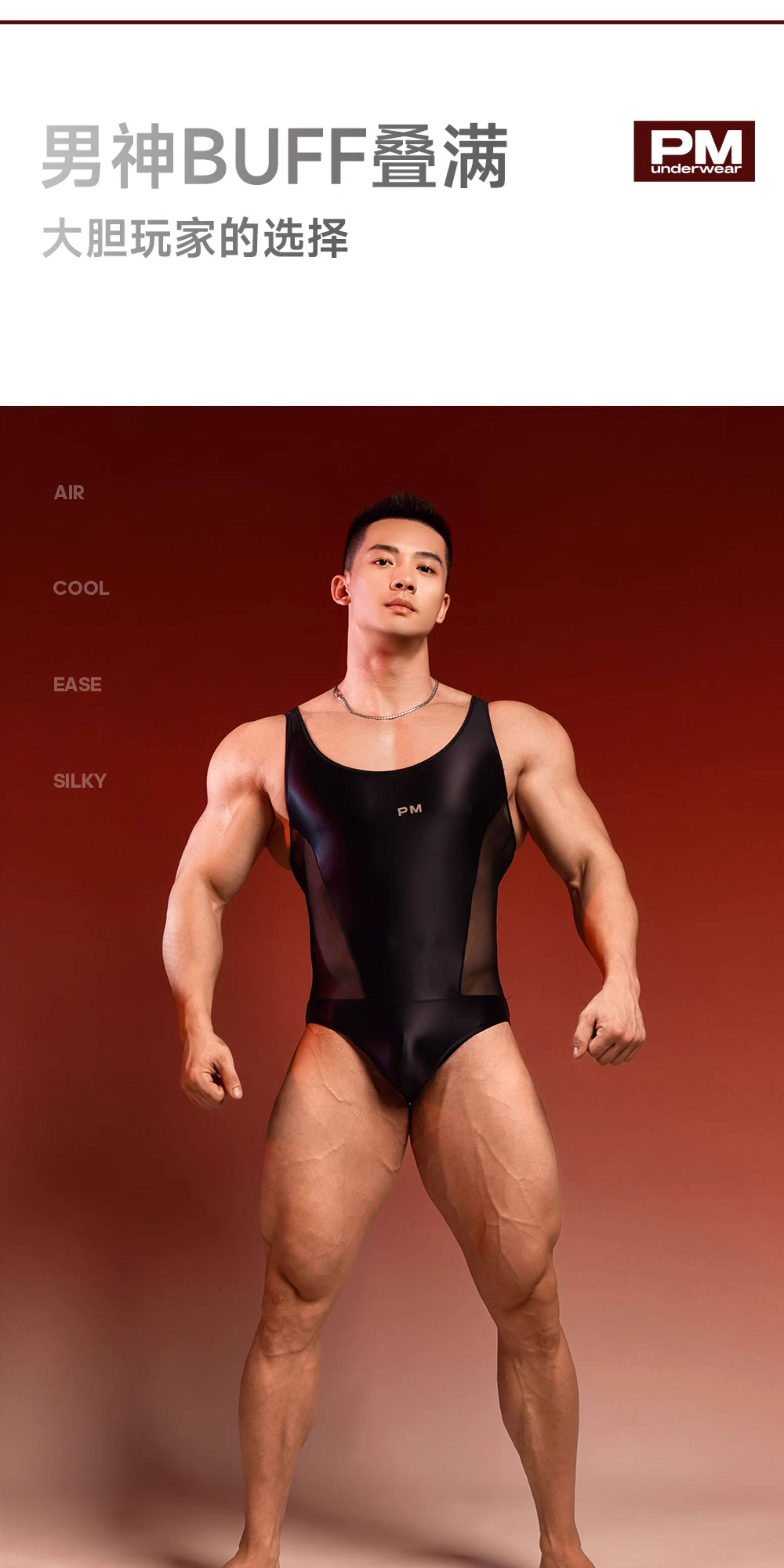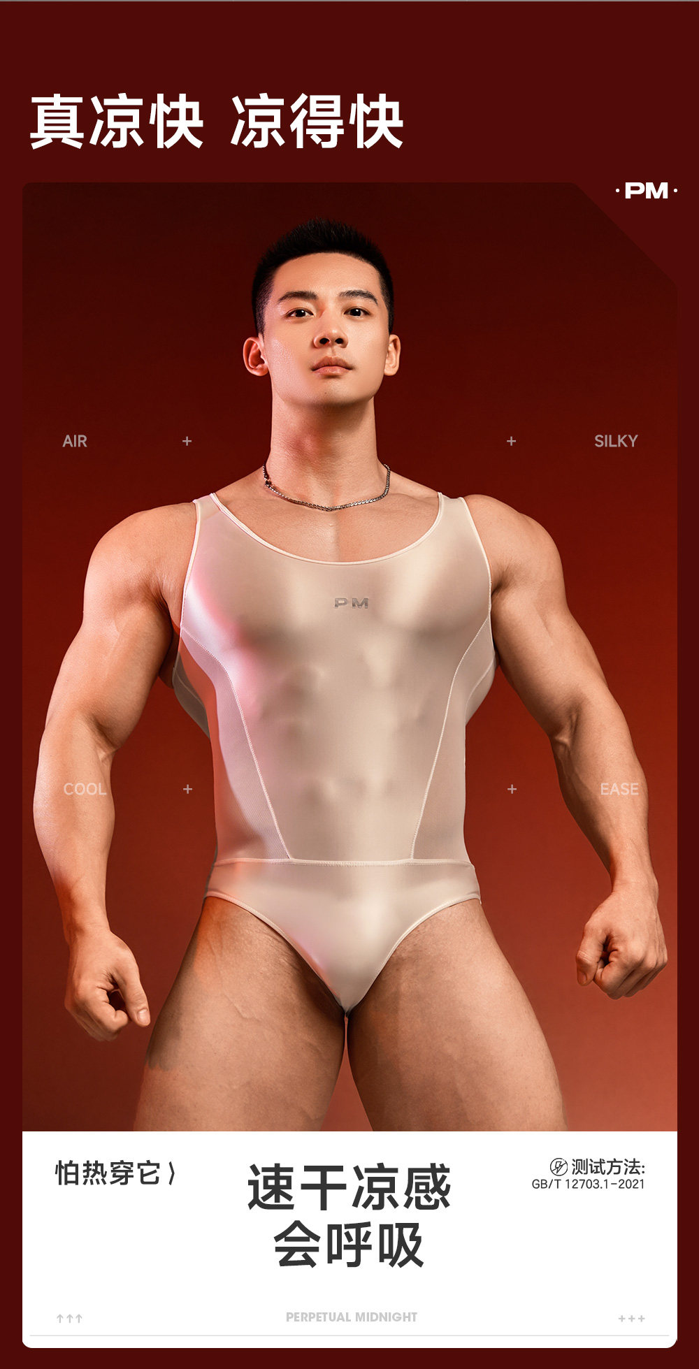 Pm Midnight Hour Sexy Sleeveless See-Through Bodysuit for Men, High Elasticity, Muscular, Macho, Body-Shaping, Tempting Tight-Fitting Top