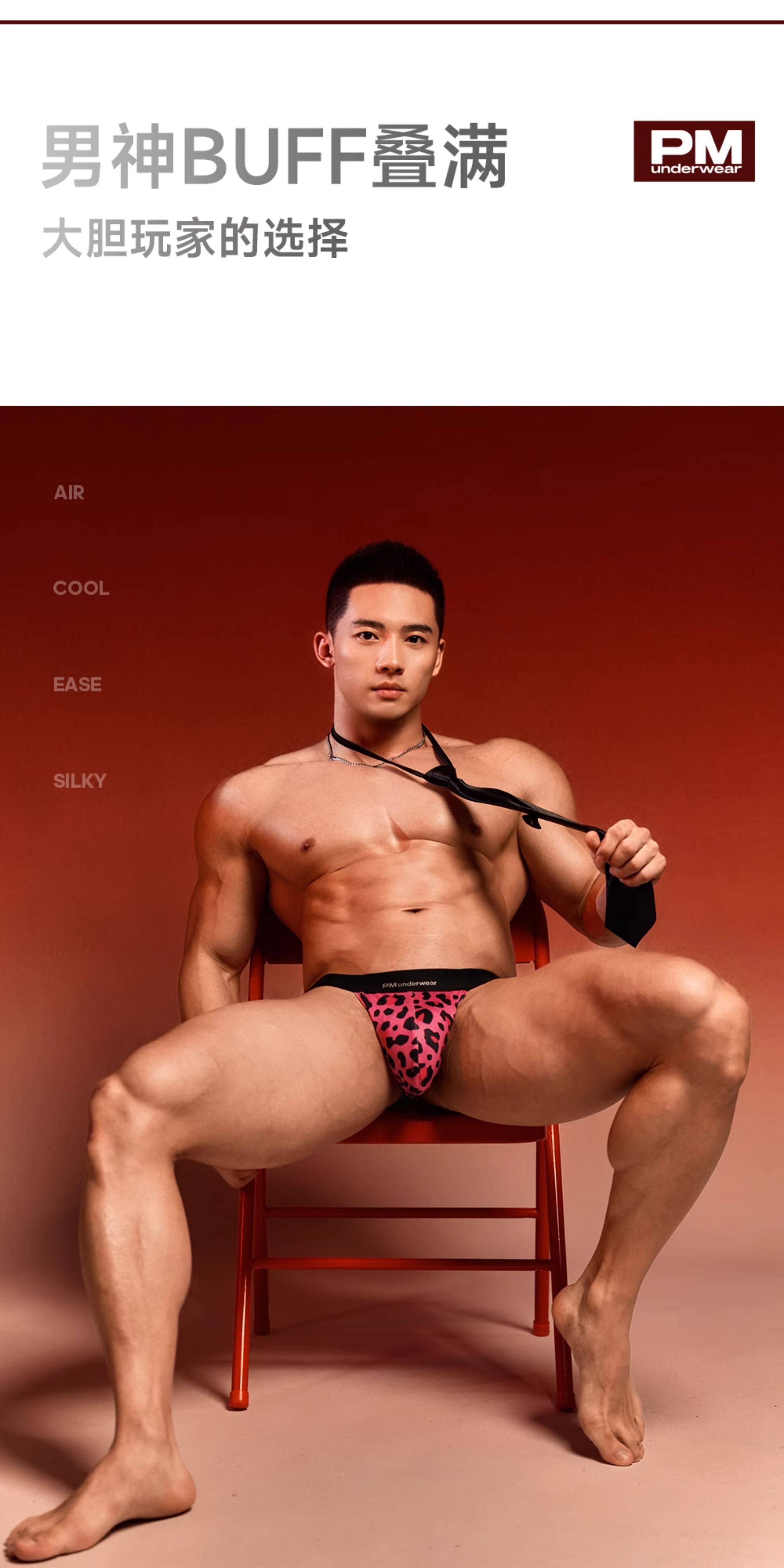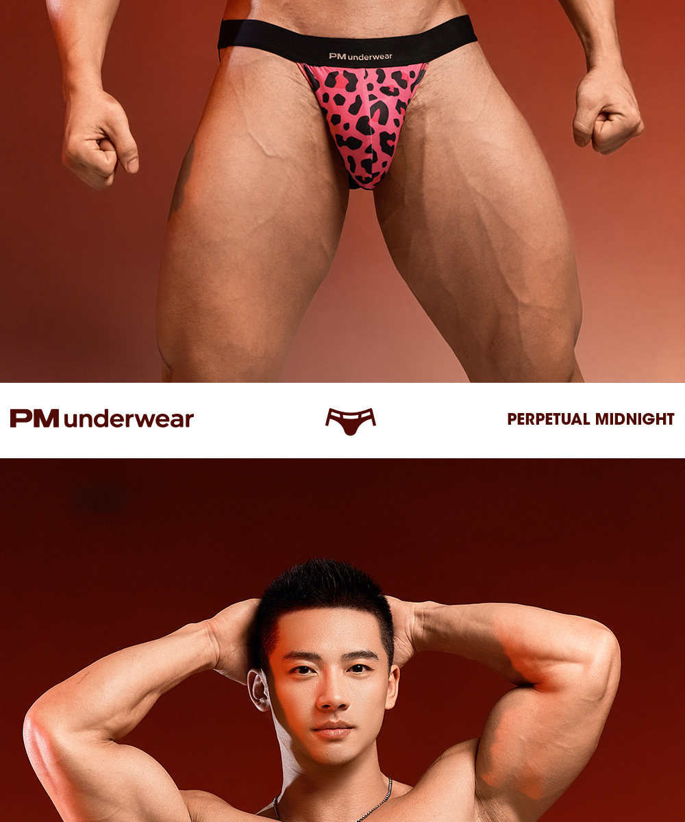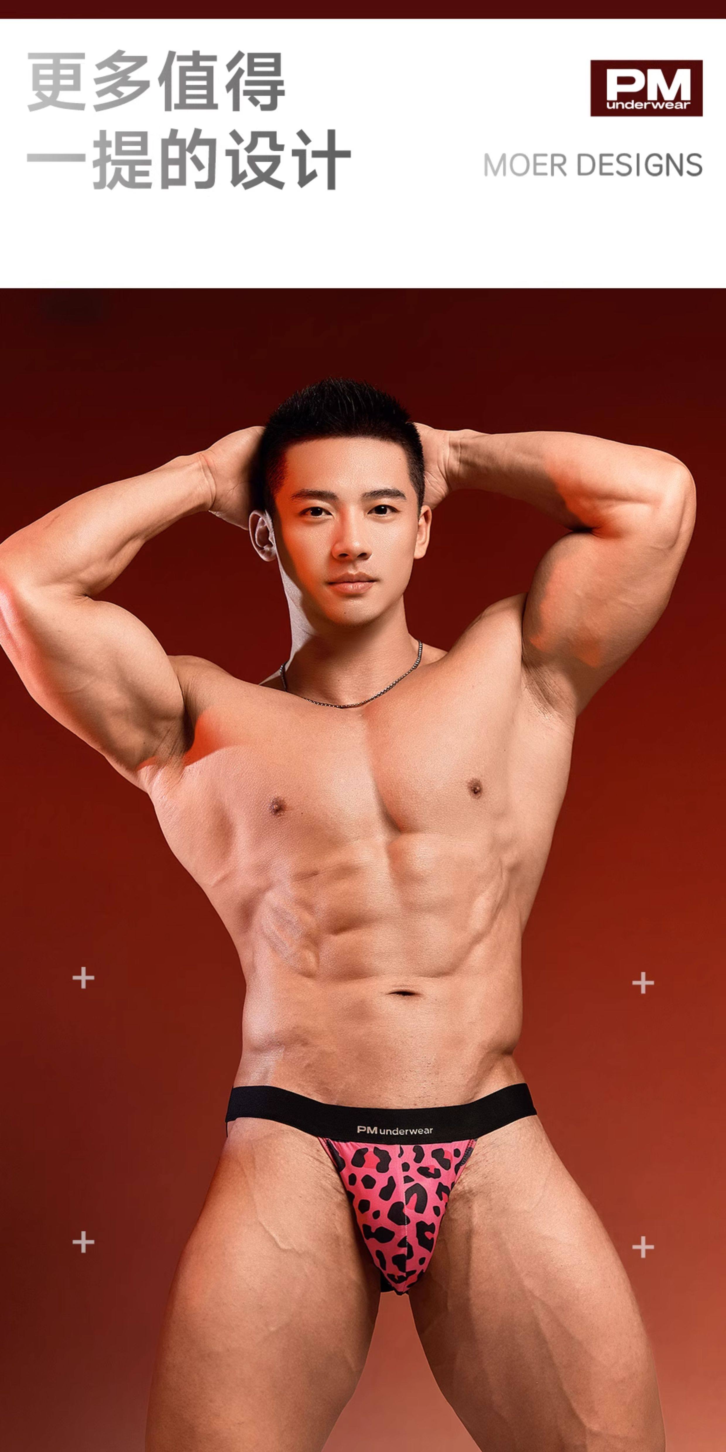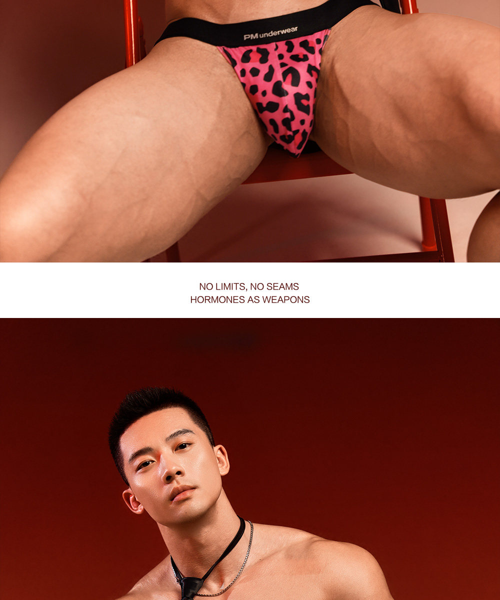 Pm Midnight Wild Leopard Print Double Thong Men's Light Luxury Sexy Underwear Elastic Nightclub Low Waist Briefs