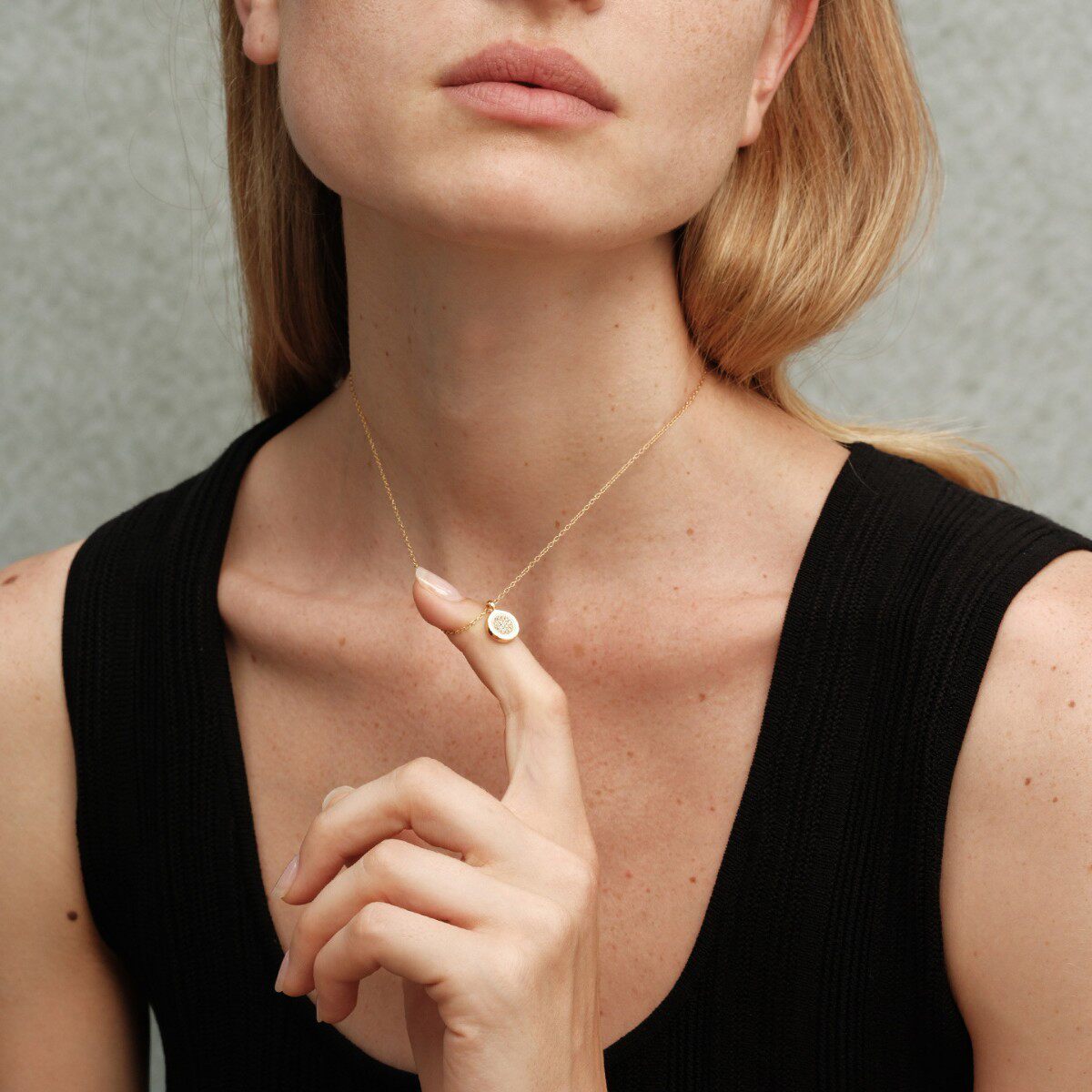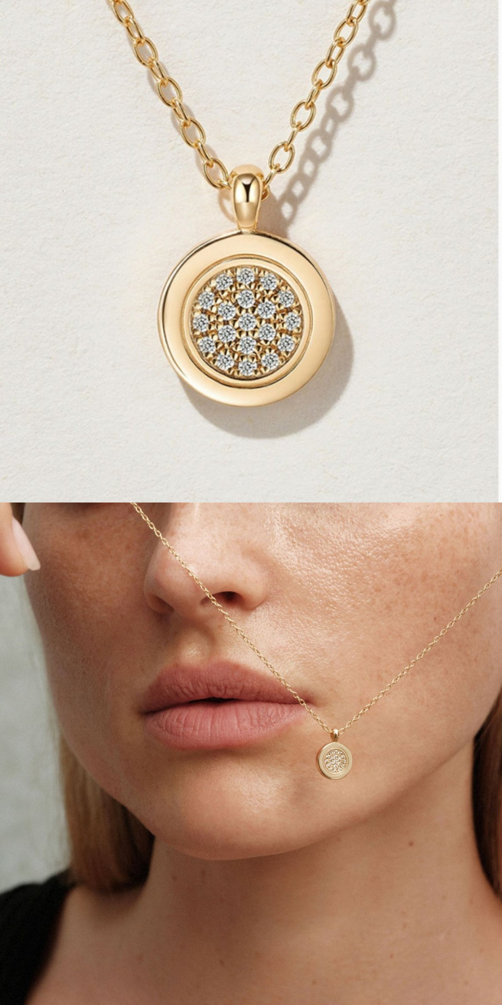 Romantic Little Happiness~ S925 Sterling Silver Plated with 18K Gold Round Zircon Pendant Necklace Clavicle Chain for Women Commuting
