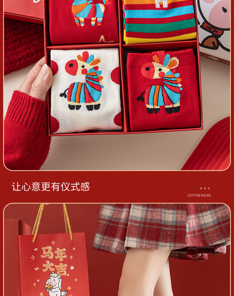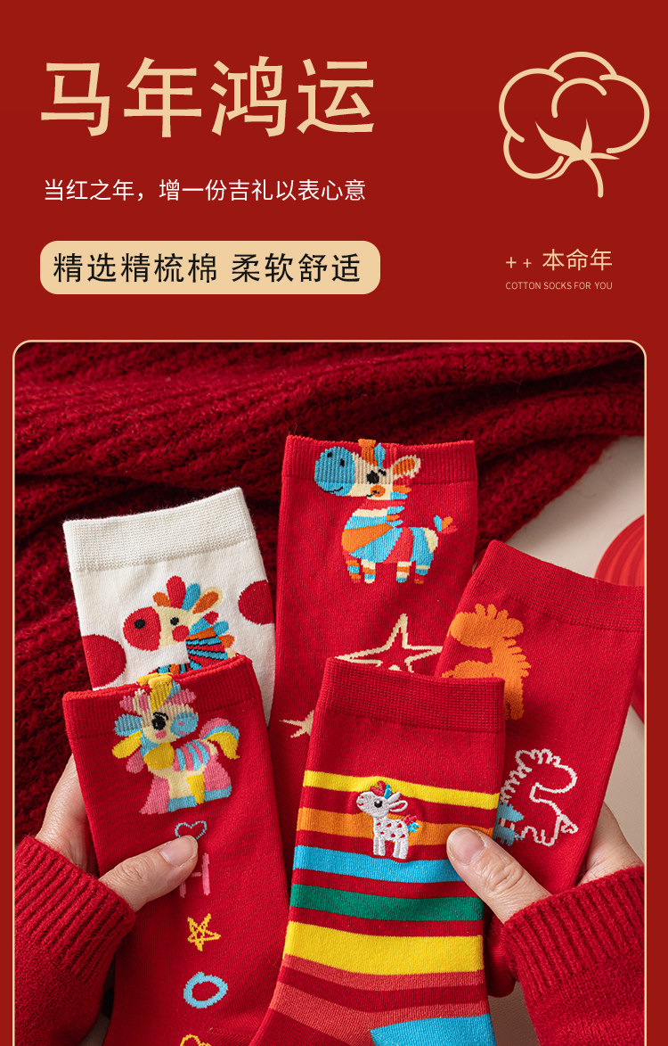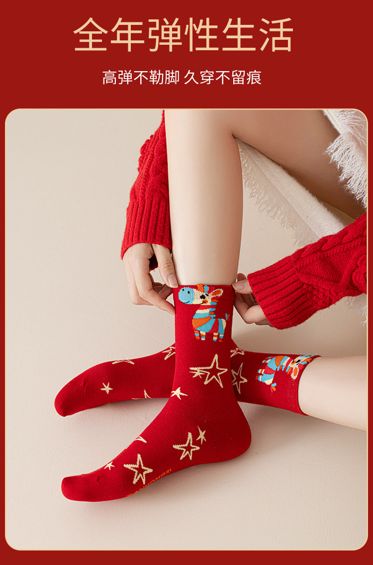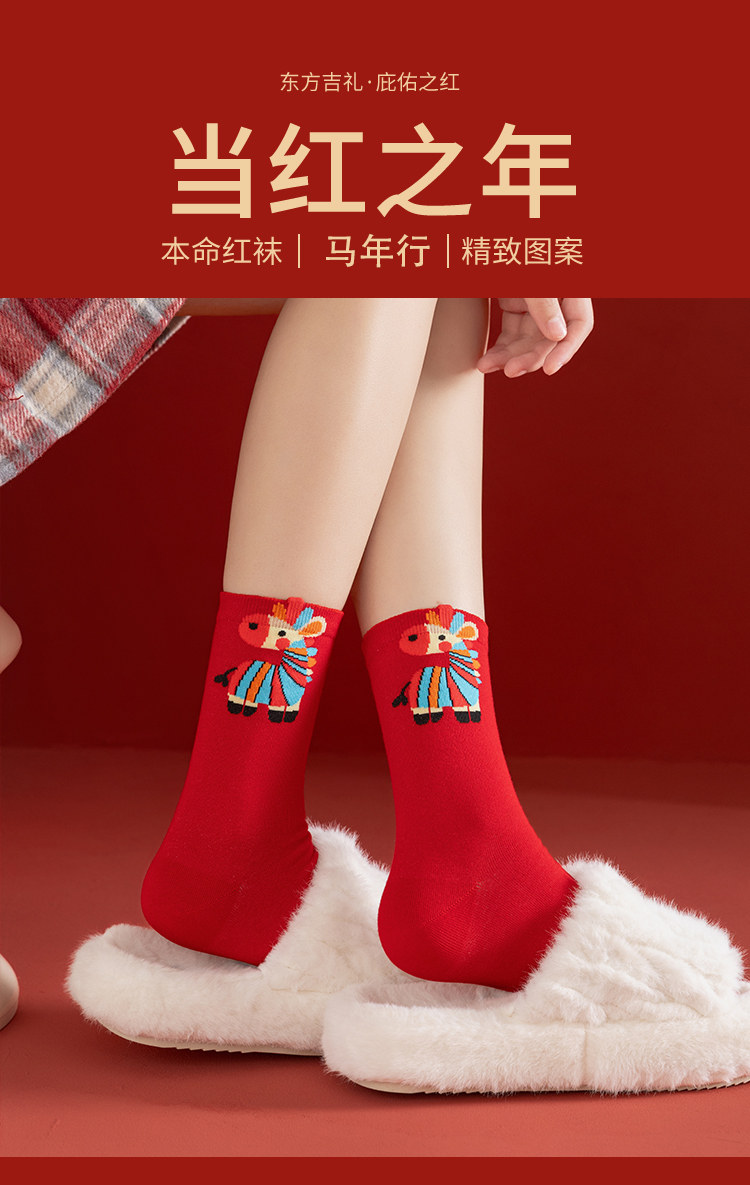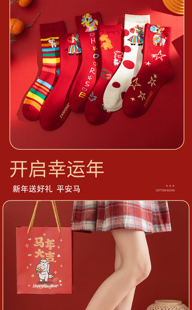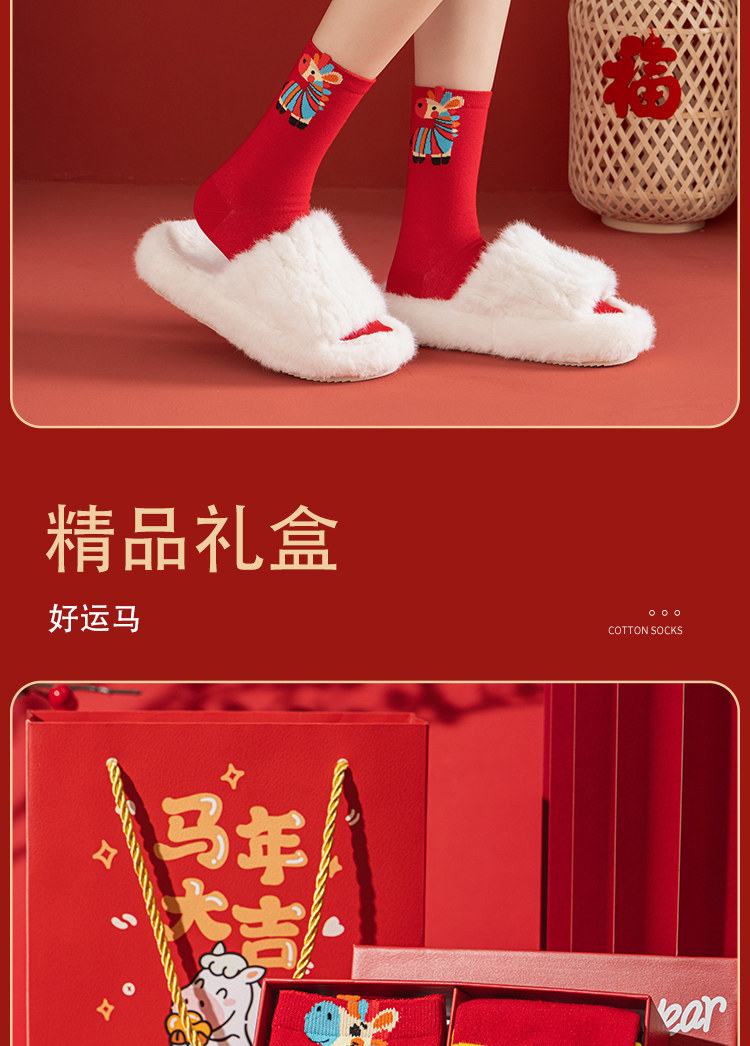 2026 Year of the Horse Red Socks Women's Mid-Calf Autumn and Winter New Year Horse-Themed Gift Big Red Cotton Socks Gift Box