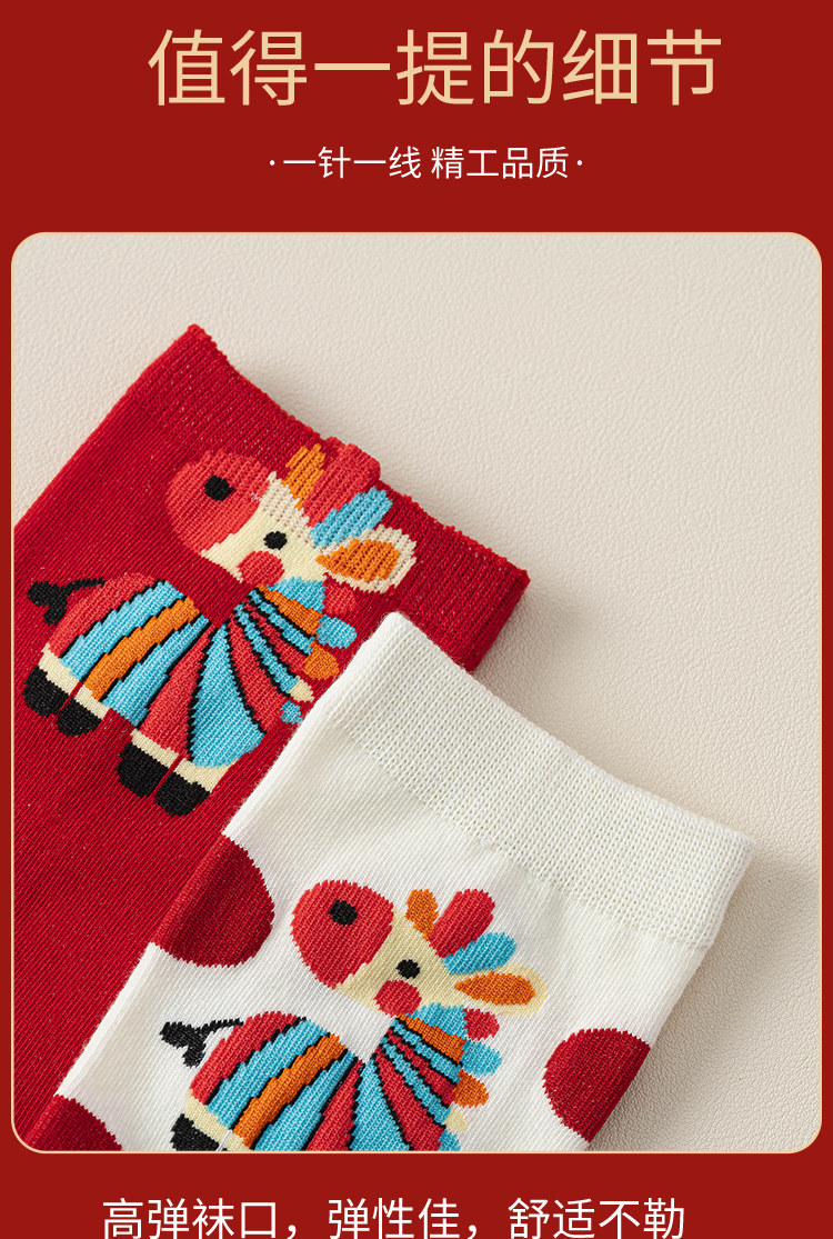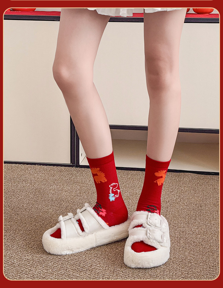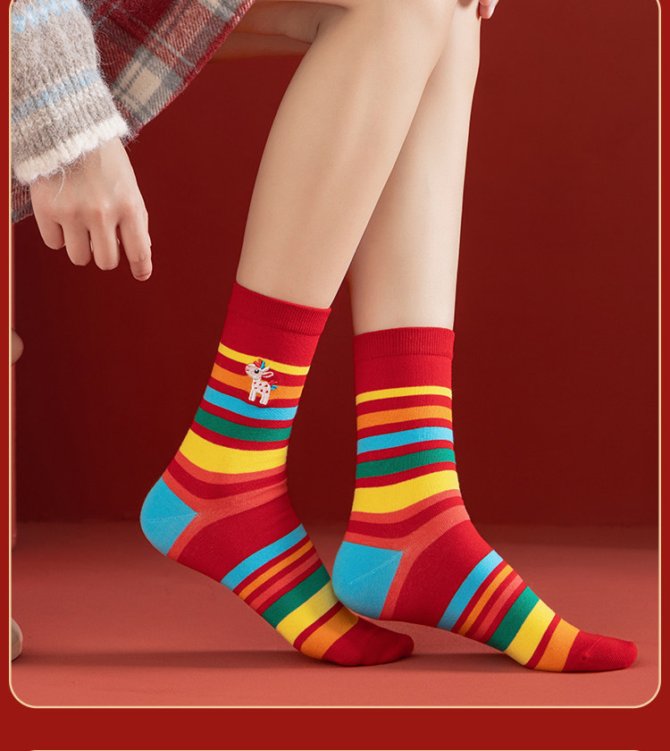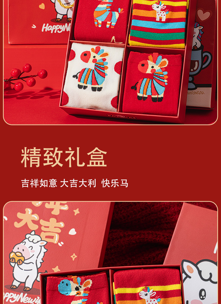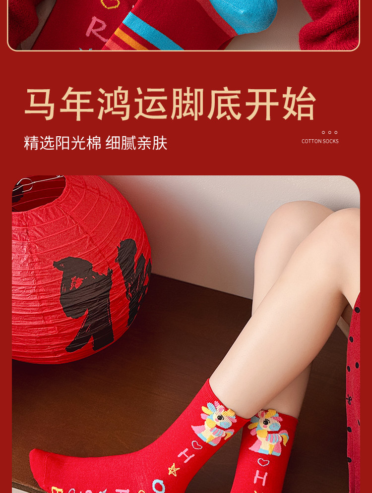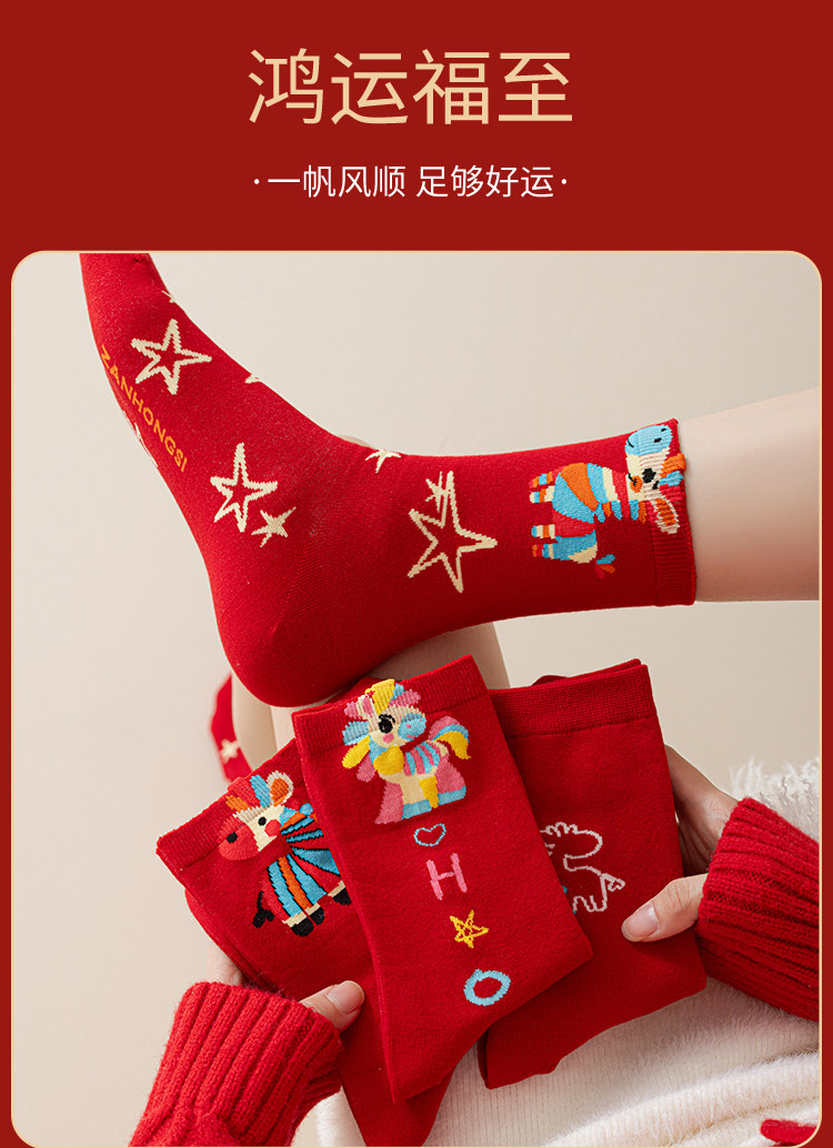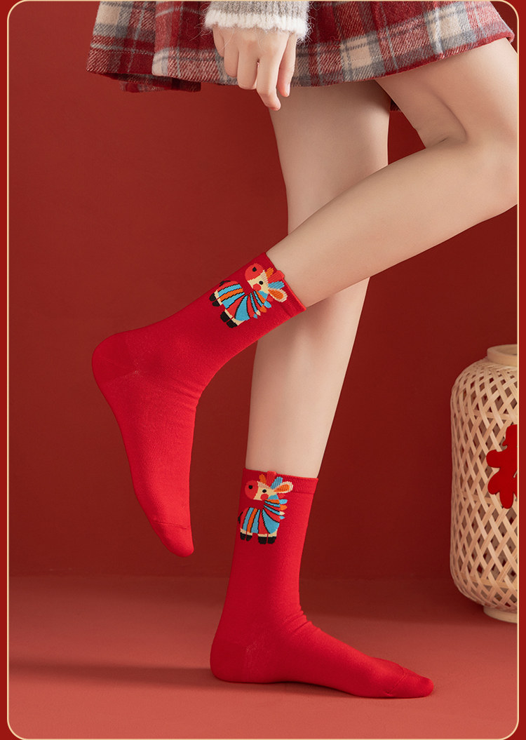 2026 Year of the Horse Red Socks Women's Mid-Calf Autumn and Winter New Year Horse-Themed Gift Big Red Cotton Socks Gift Box