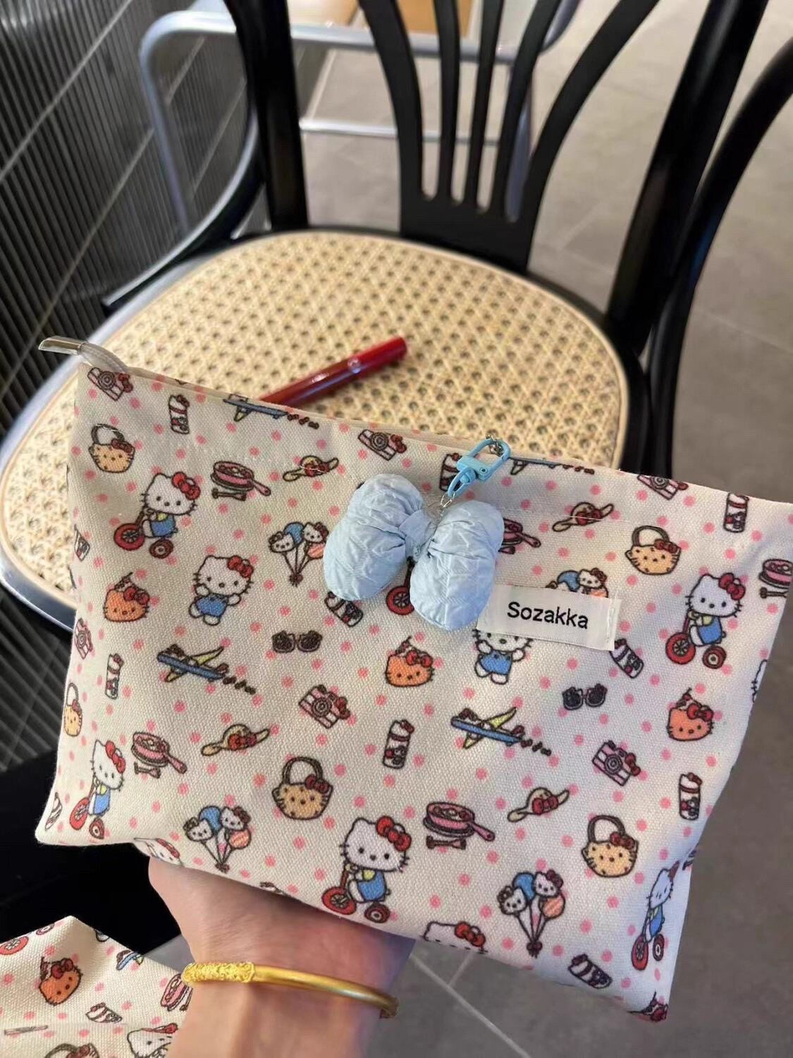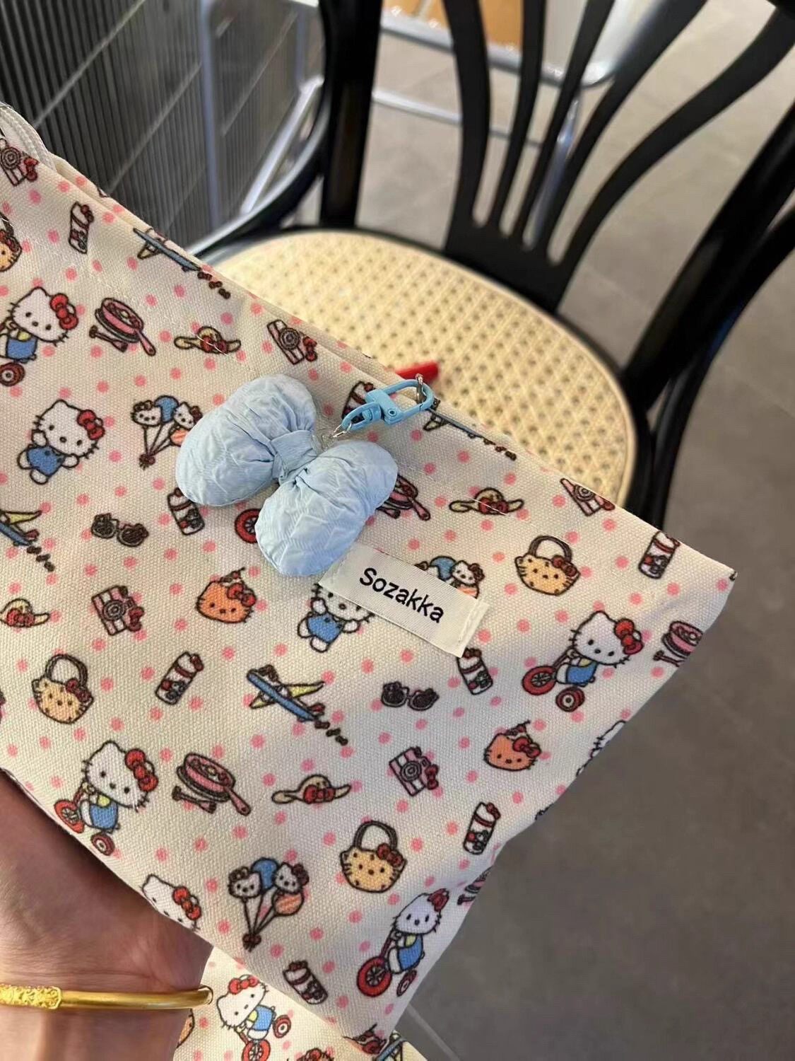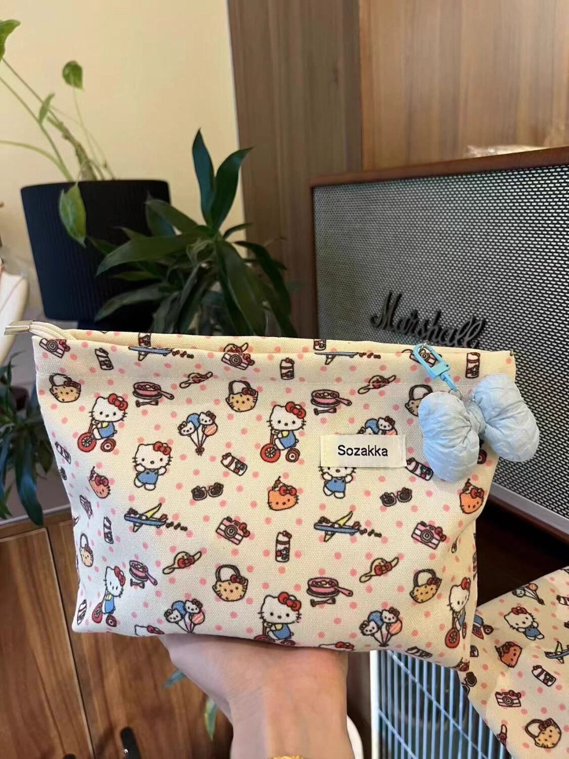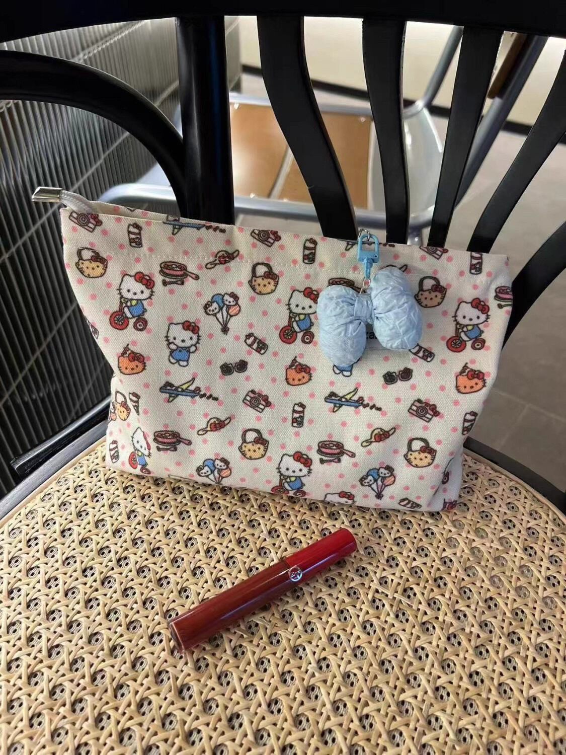 The New Hello Kitty Is a Cartoon Canvas Clutch Bag with 2024 New Design, Large Capacity, Versatile for Travel