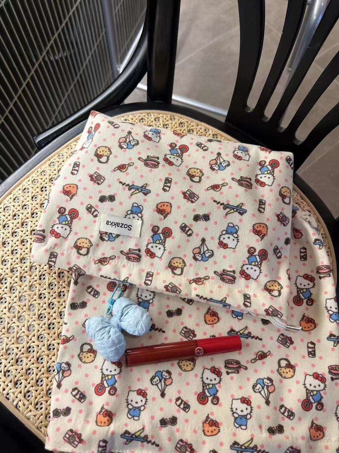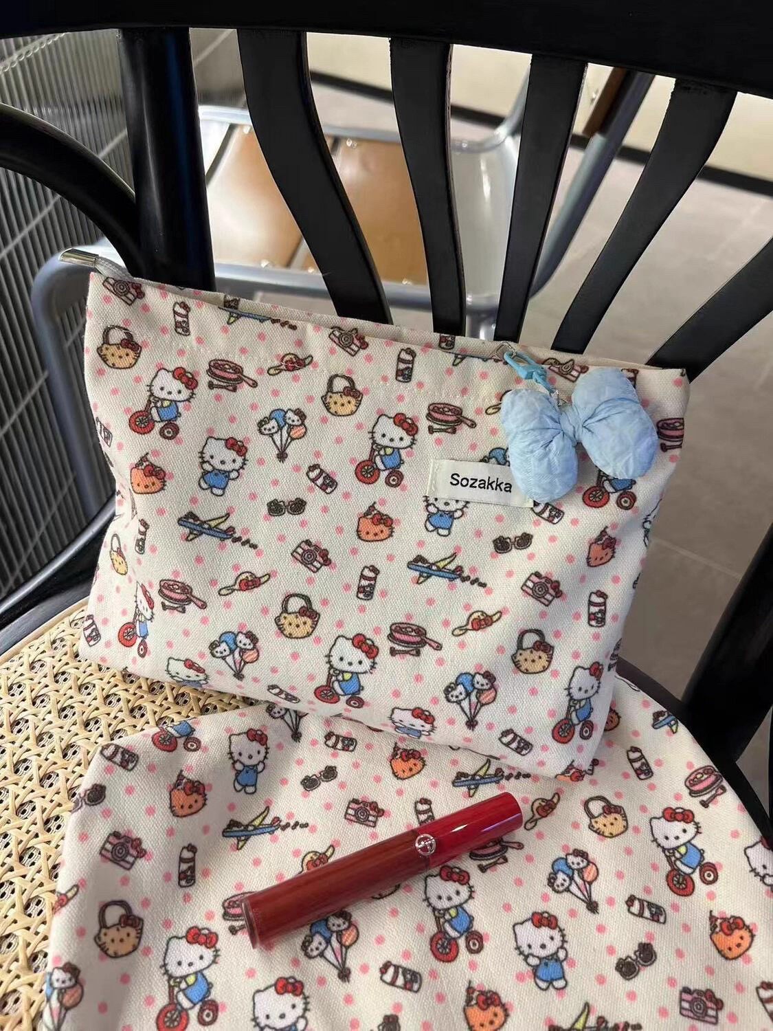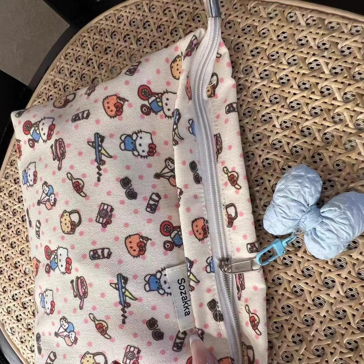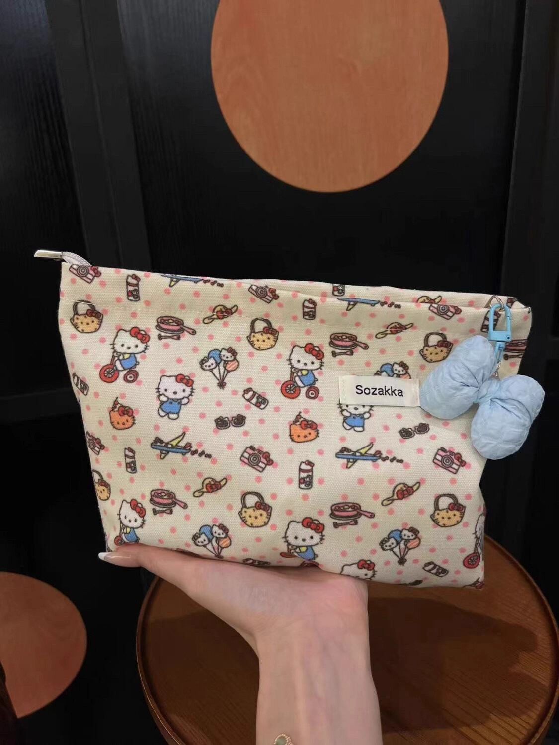 The New Hello Kitty Is a Cartoon Canvas Clutch Bag with 2024 New Design, Large Capacity, Versatile for Travel