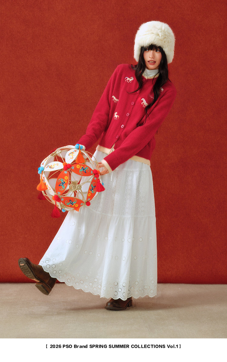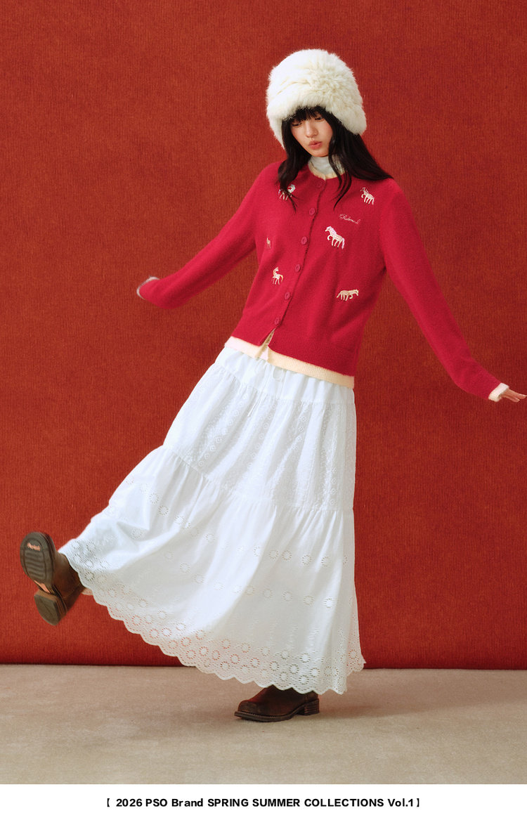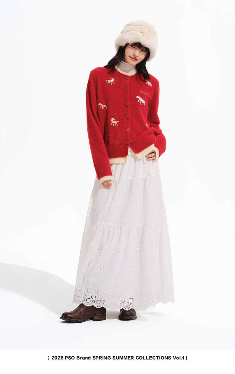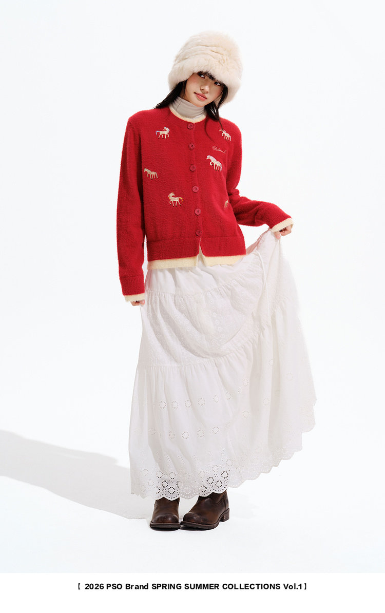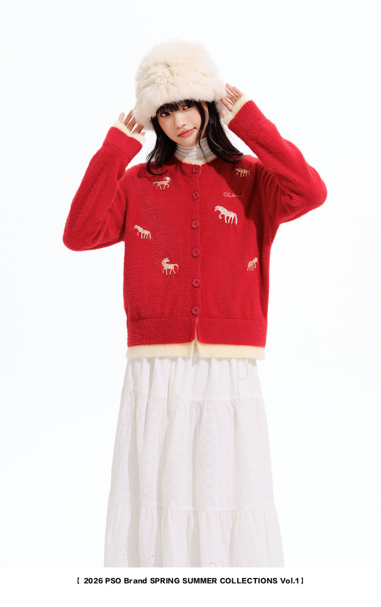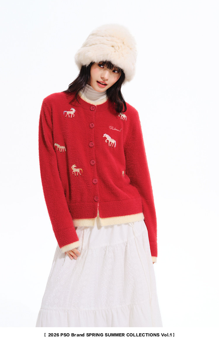 Pso Brand Women's Clothing [Year of the Horse Limited Edition] Fake Two-Piece Red Sweater Cardigan Jacket for Winter