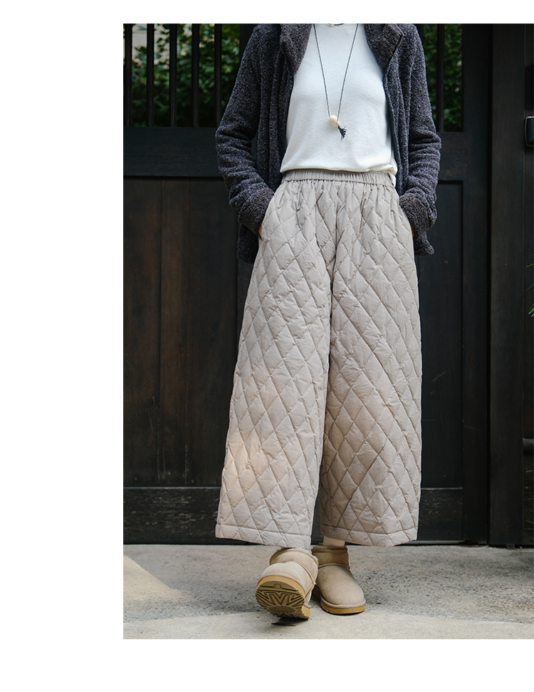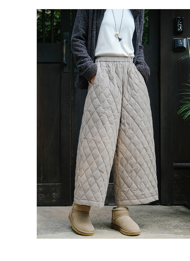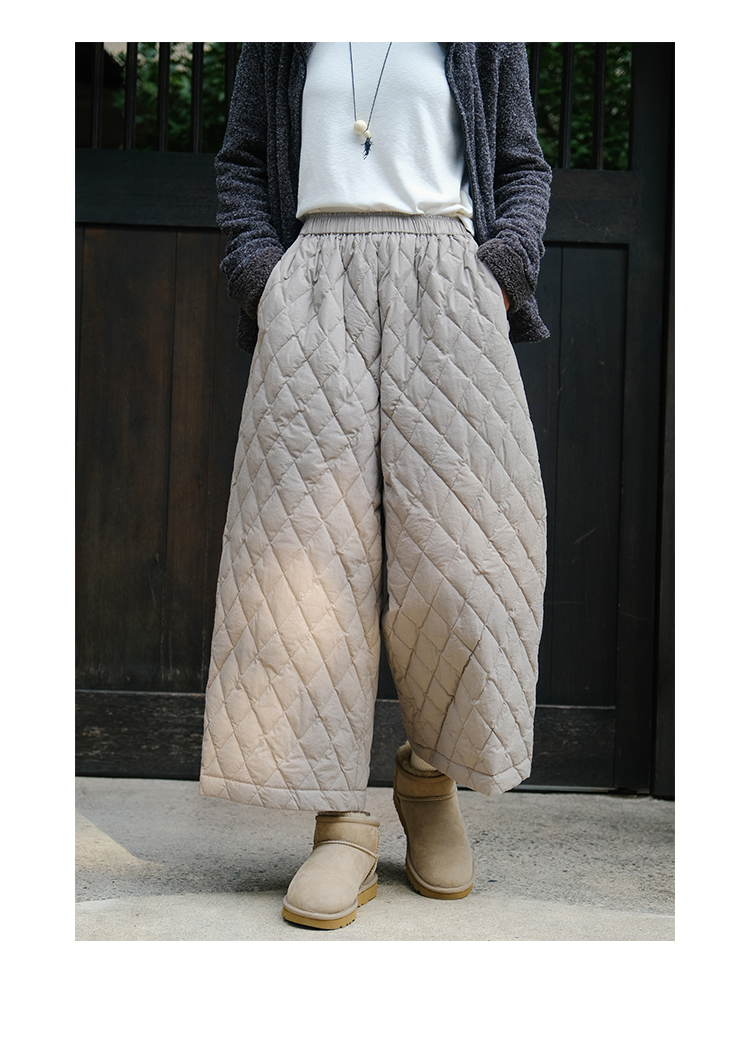 High-Density Mulberry Silk Cotton Lining with 90% White Goose Down, Thickened for Warmth, Casual Nine-Point down Pants