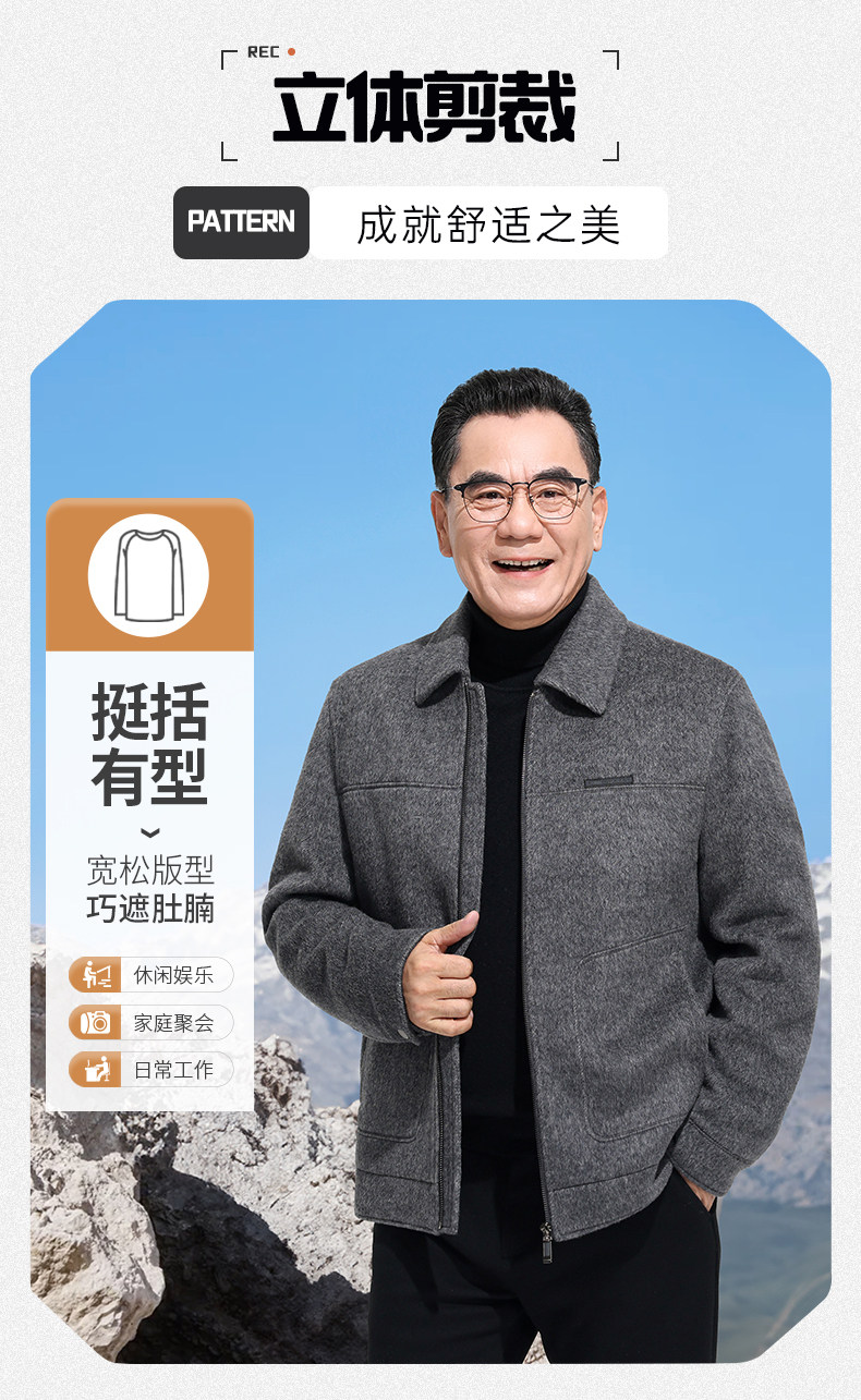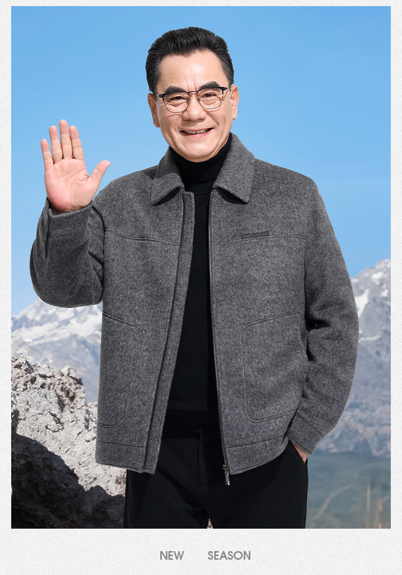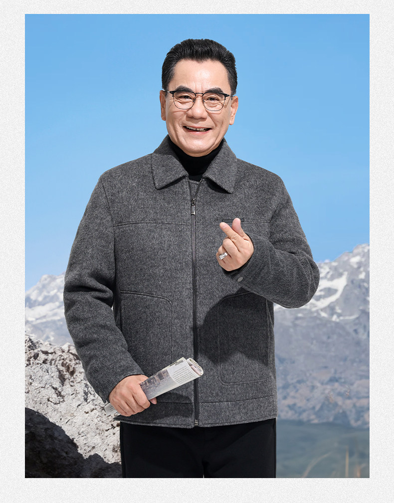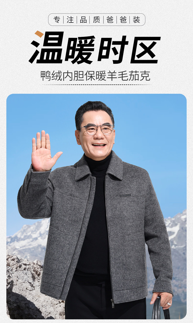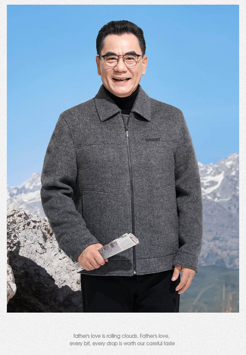 Vintage Woolen Jacket Double-Sided Coat Dad's Winter Coat Thickened down Lining Middle-Aged High-End Men's Clothing