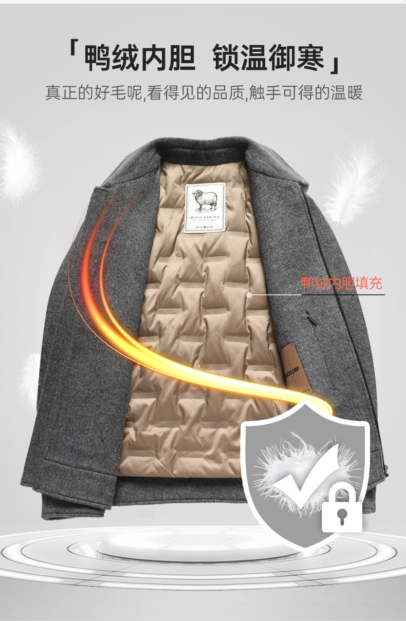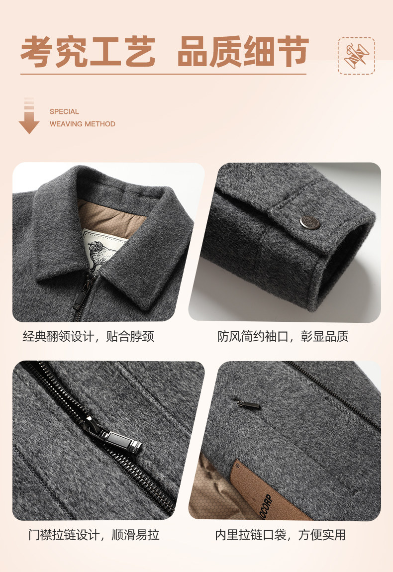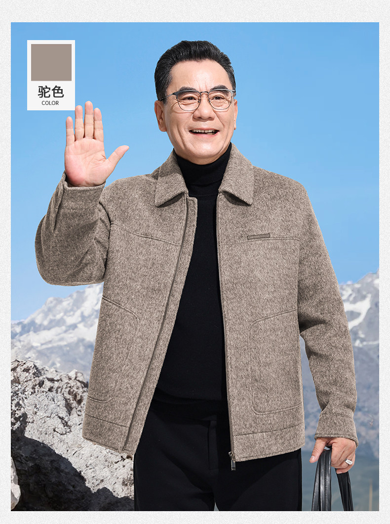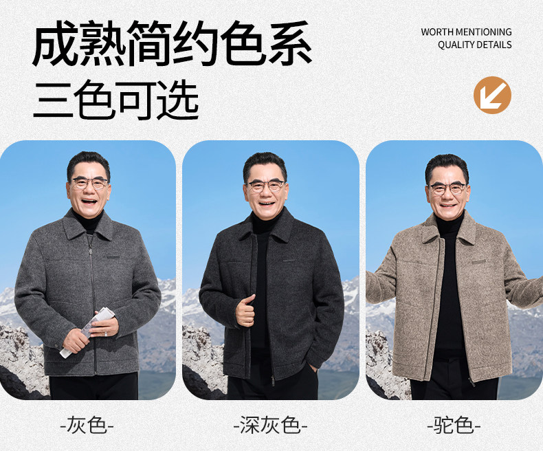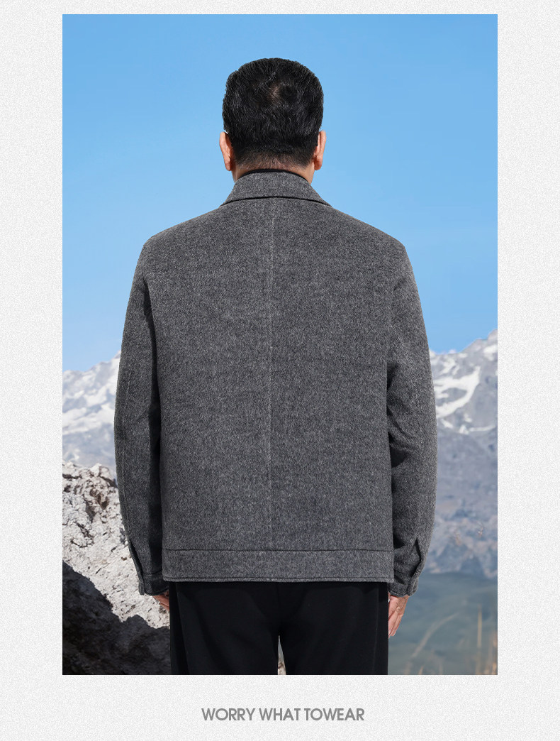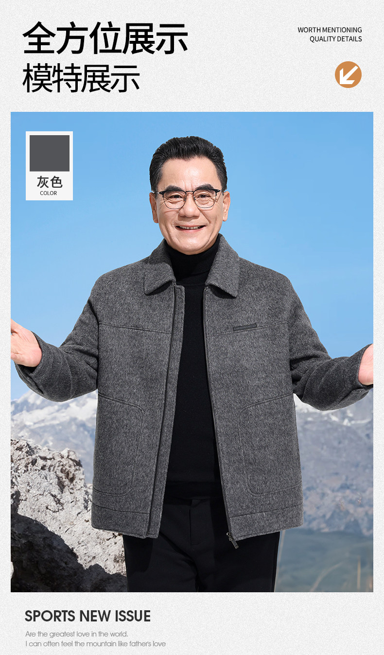Vintage Woolen Jacket Double-Sided Coat Dad's Winter Coat Thickened down Lining Middle-Aged High-End Men's Clothing