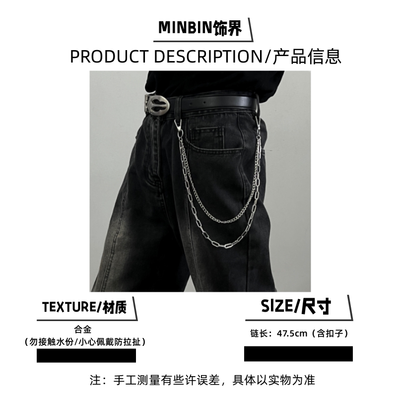 Double-Layer Metal Chain Pants Chain Trendy Hip-Hop Niche Design Pants Hanging Chain Punk Jeans Waist Chain Bag Accessory