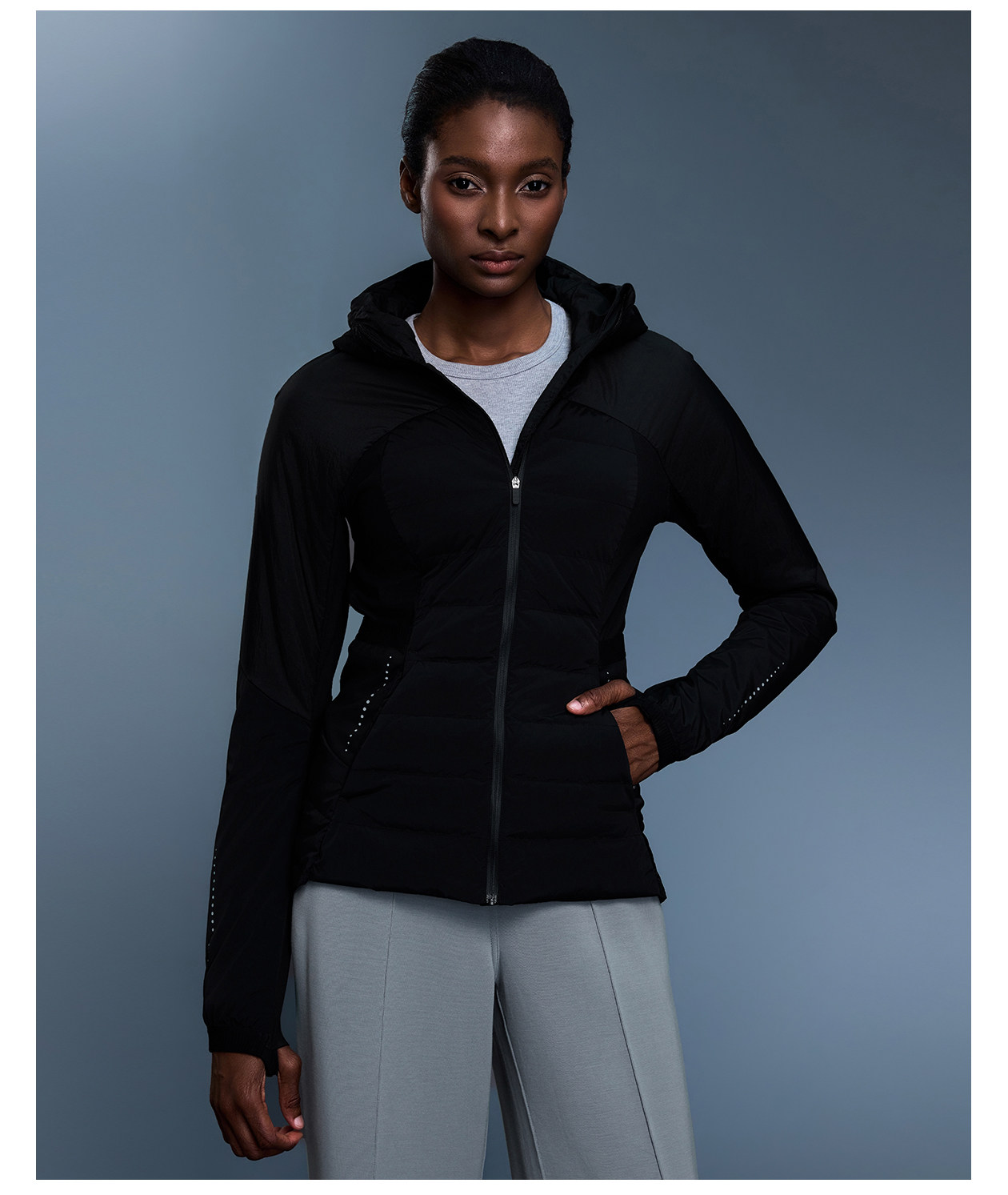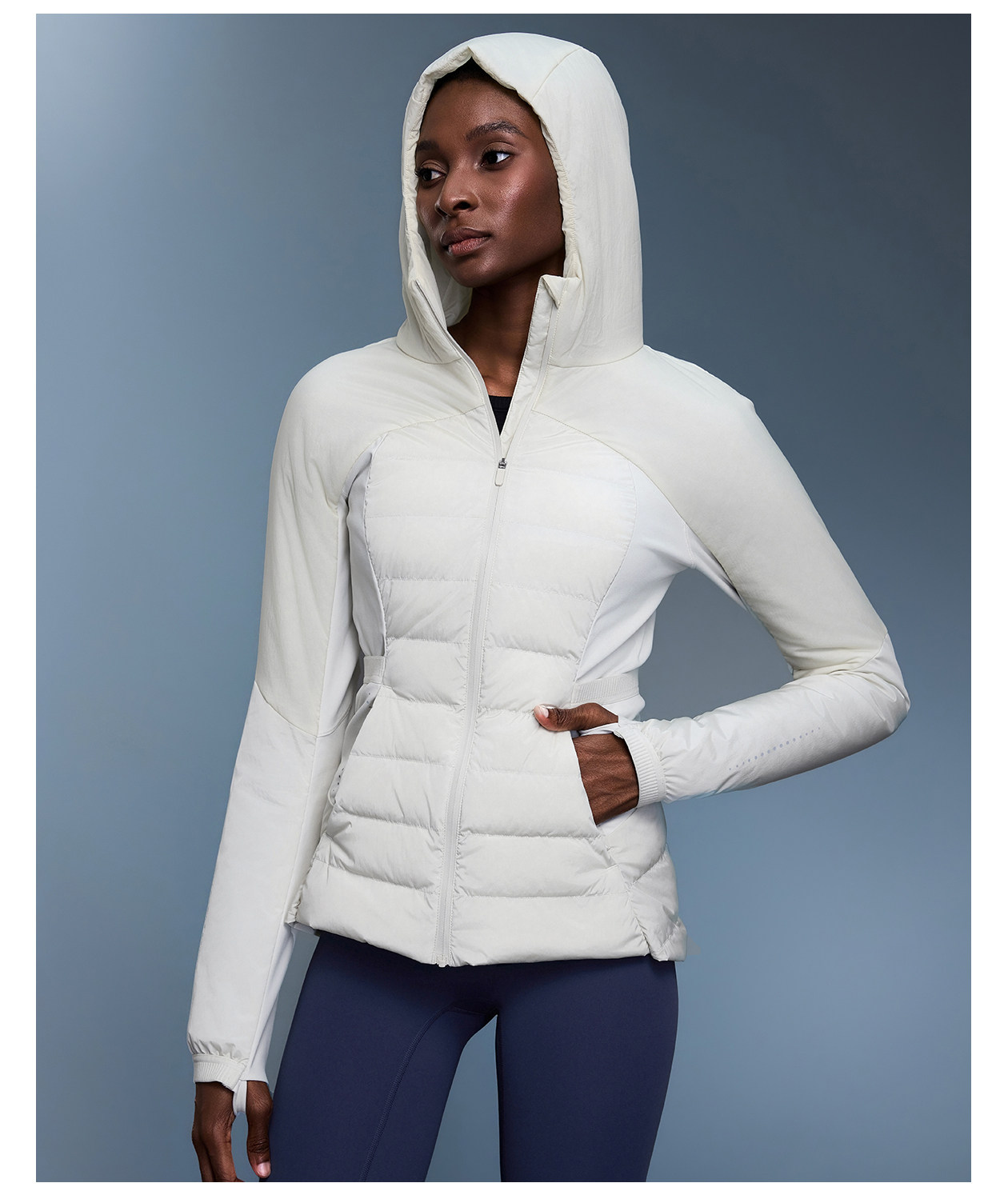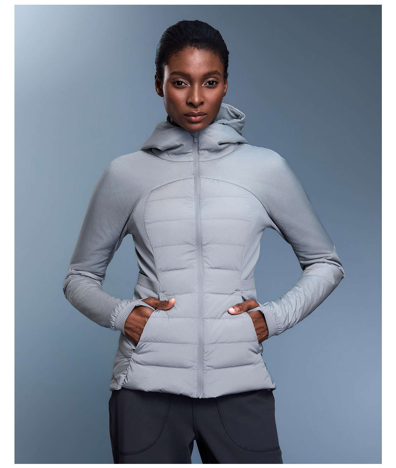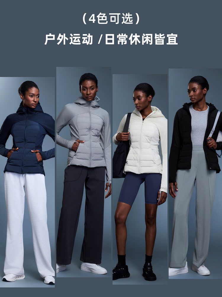 Lulu Style Women's Lightweight Hooded Outdoor Windproof and Waterproof Fitness Jacket, Slim Fit, Warm Duck down