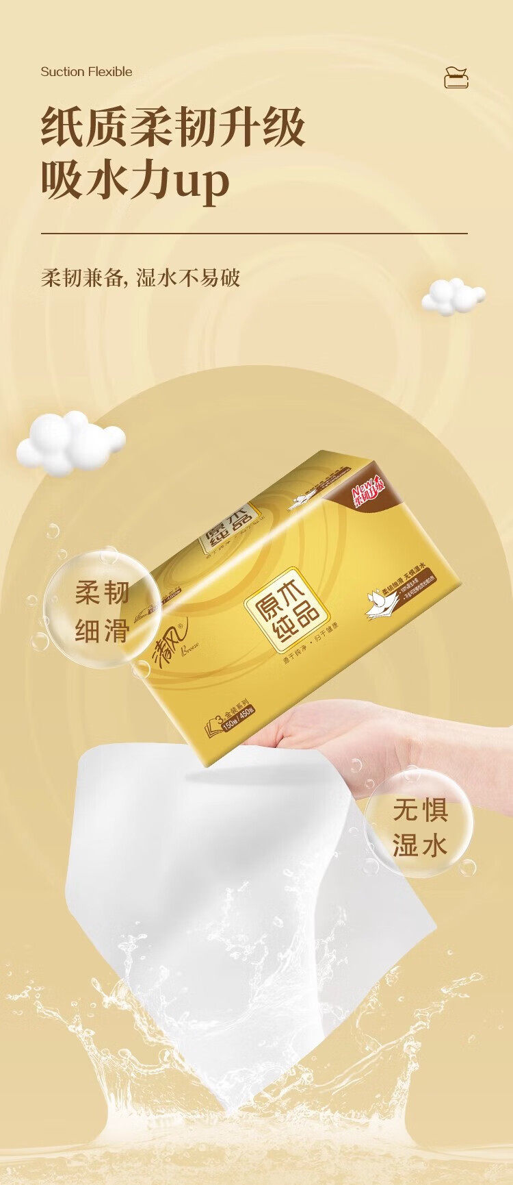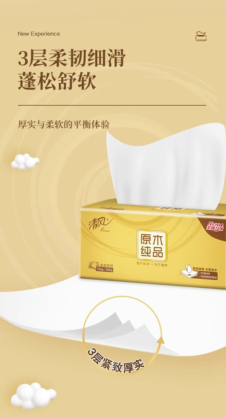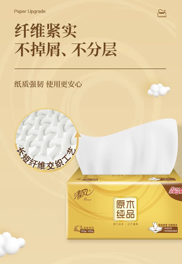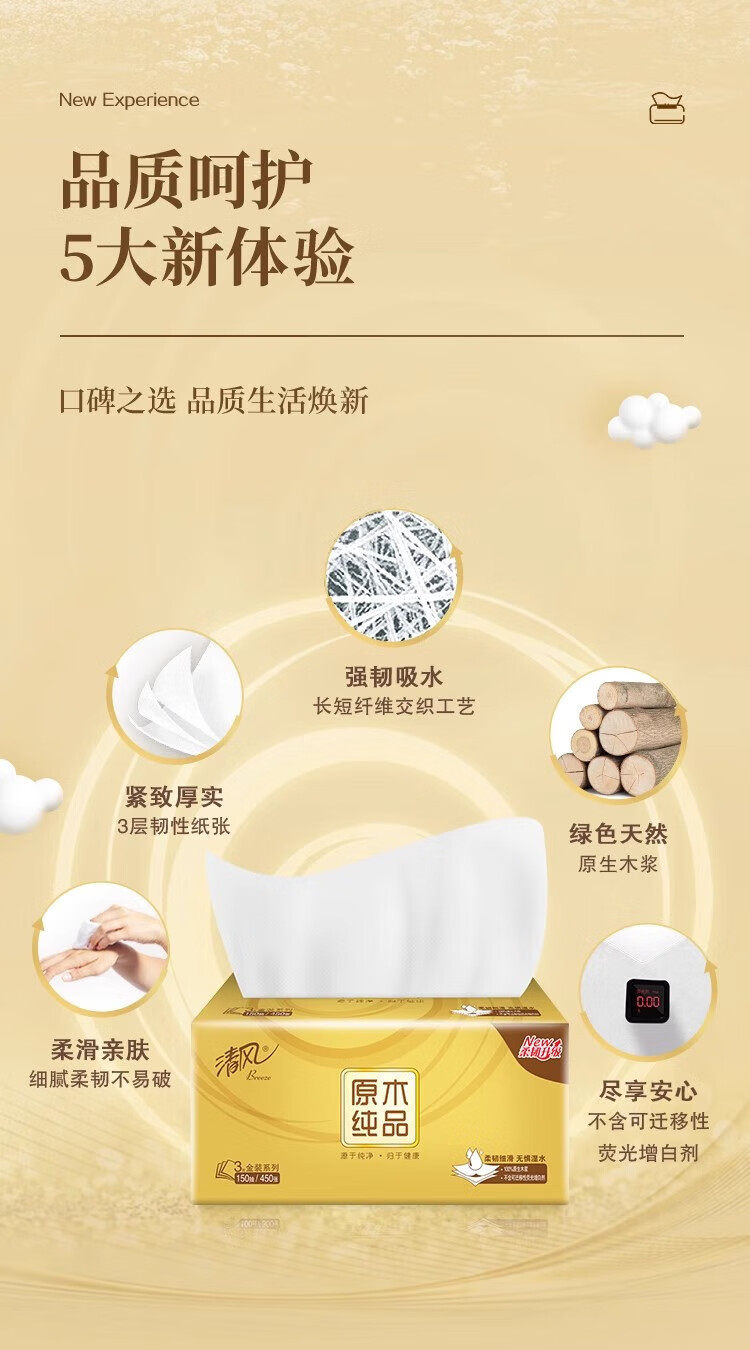 Qingfeng 150 Sheets Gold-Pack 3-Ply M-Size Household Economical Napkin Tissue Toilet Paper Whole Box Tissue Mother and Baby Large Pack
