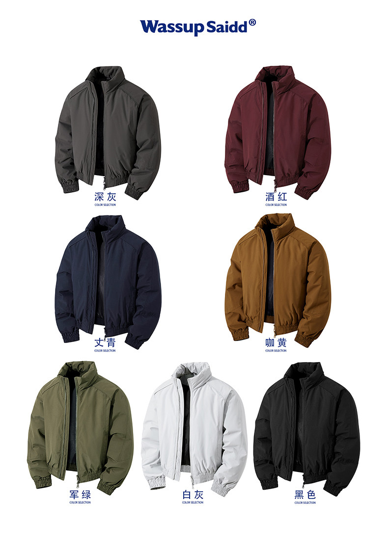 Wassup Saidd American-Style Stand-Up Collar Bomber Jacket for Men, Autumn and Winter Thickened Warm Motorcycle Jacket, down Cotton Coat