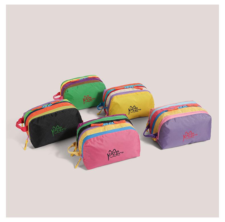 Dopamine Color-Blocking Cosmetic Bag with Three Compartments, New Portable Skincare and Toiletries Storage Korean-Style Clutch Bag