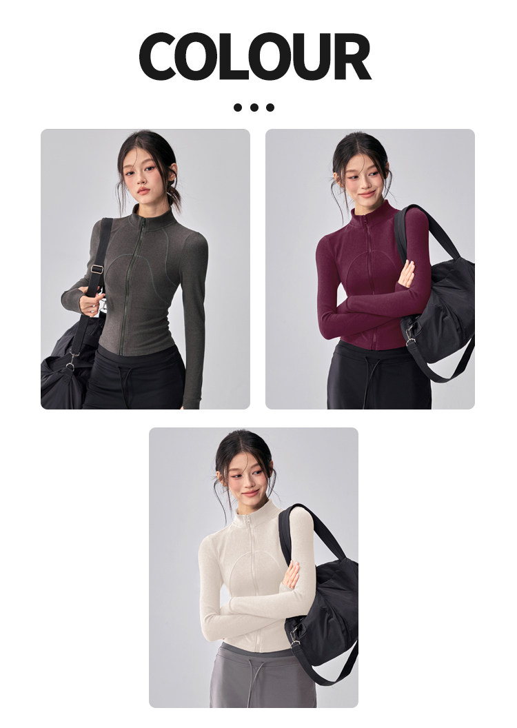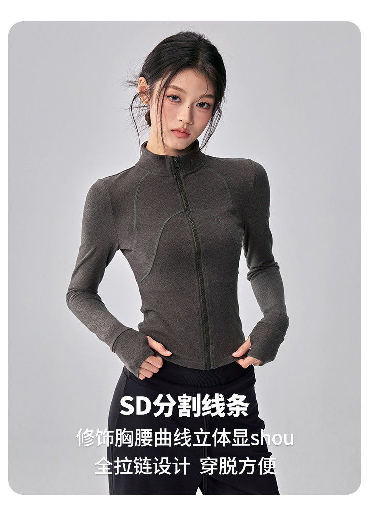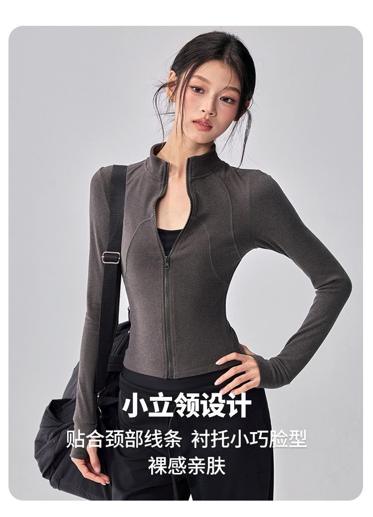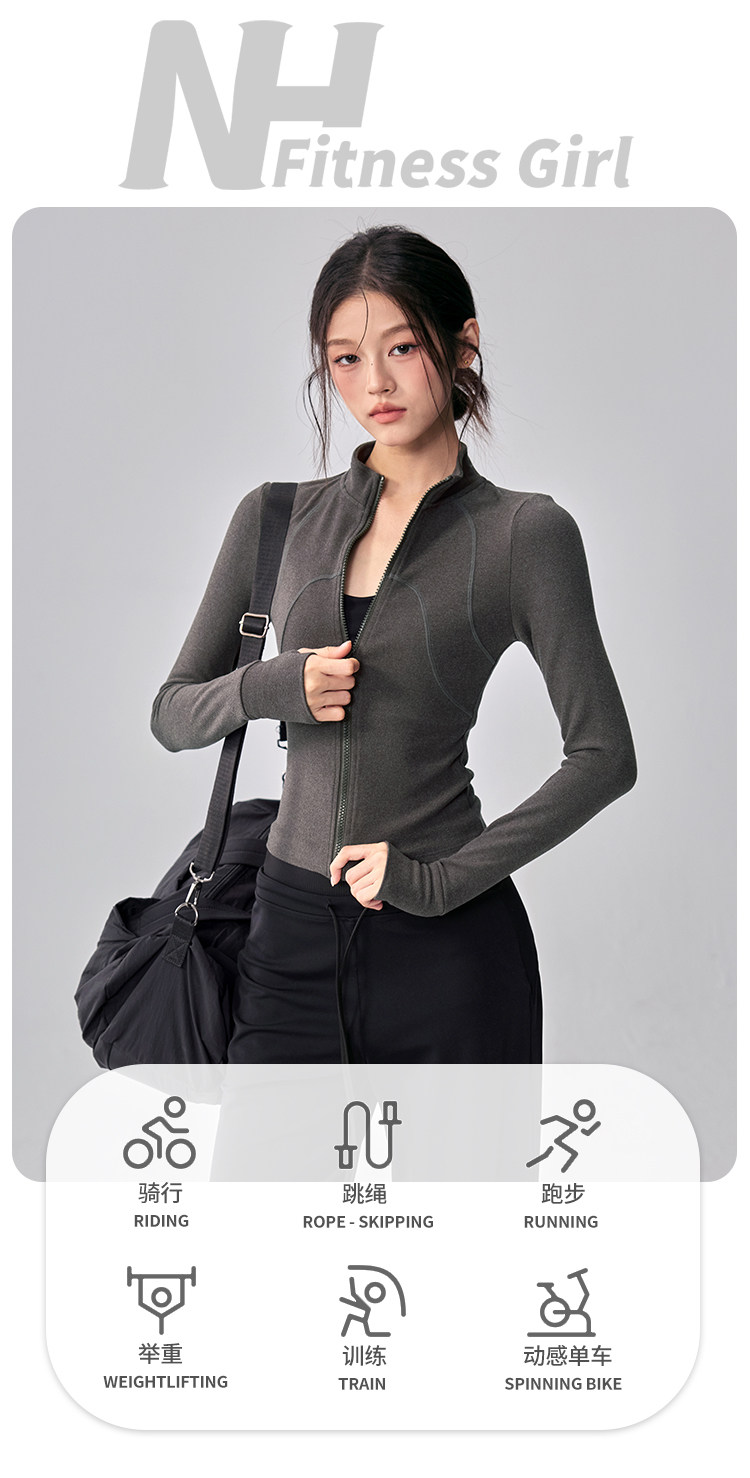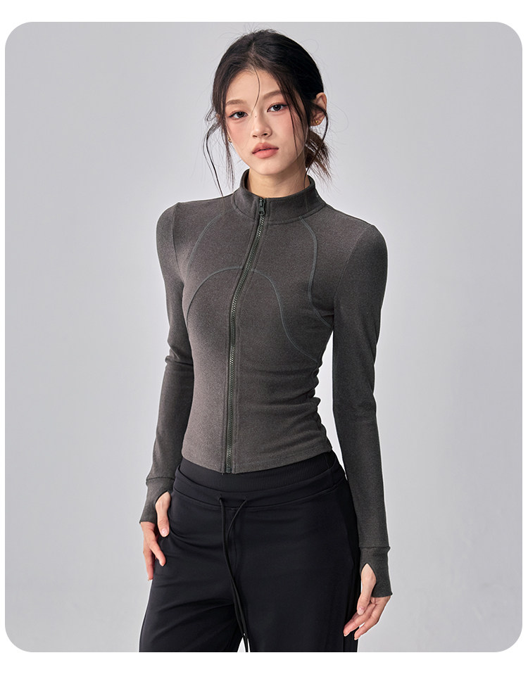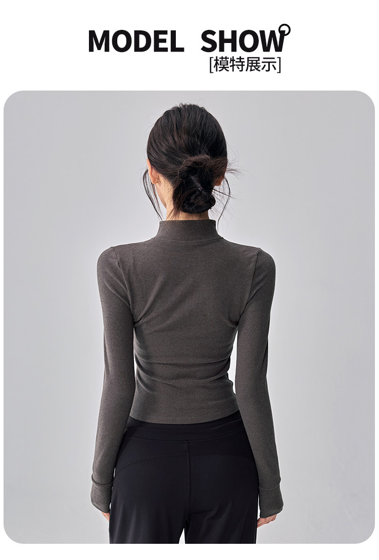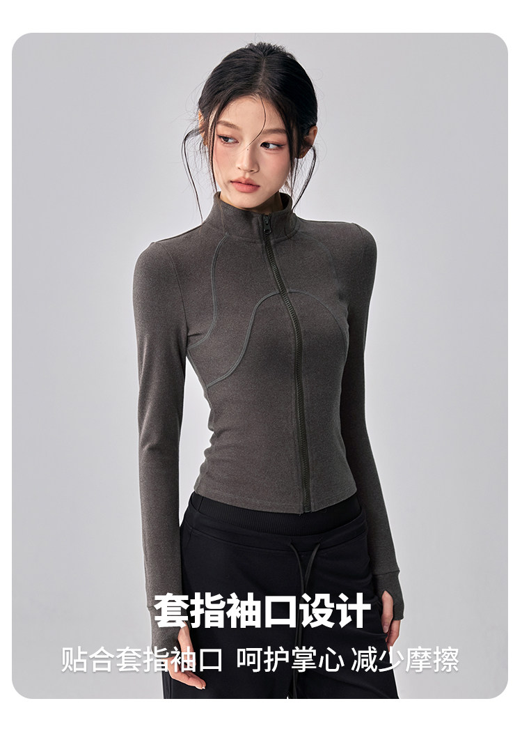 Fitness Girl's Velvet Stand-Up Collar Yoga Jacket, Autumn and Winter Slimming Pilates Running Long-Sleeved Slim-Fit Sports Top